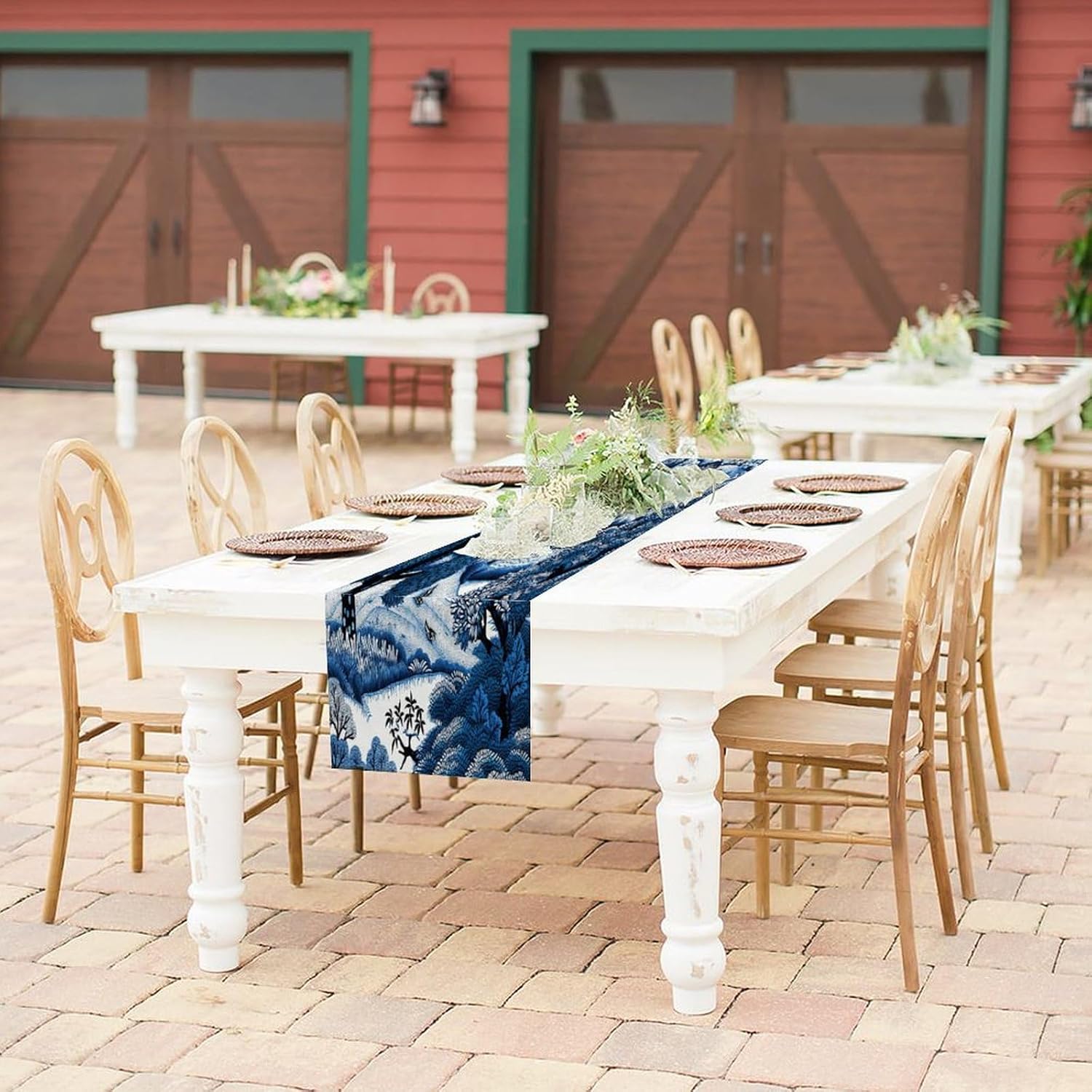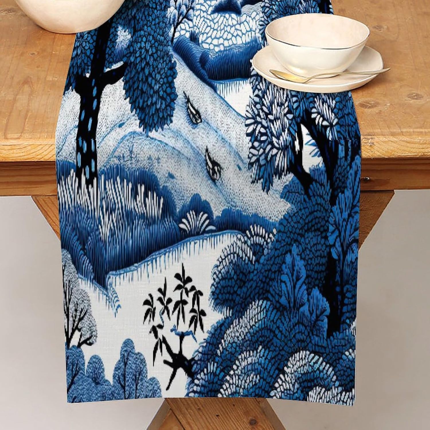 Divertente runner da cucina in cotone e lino indaco blu e bianco indaco, stile fattoria, decorazione da tavolo per cucina, tavolo da pranzo, eventi speciali, decorazione per feste