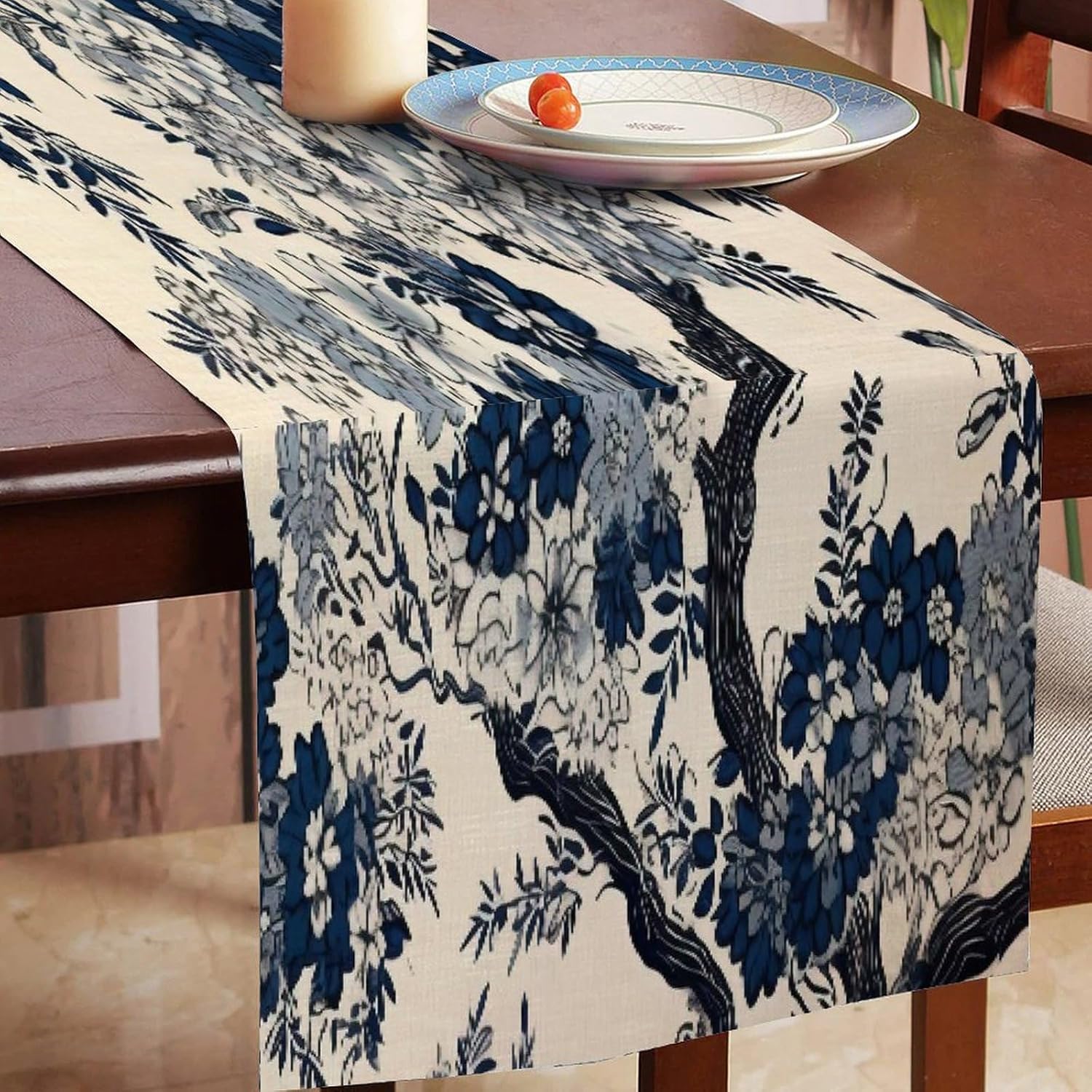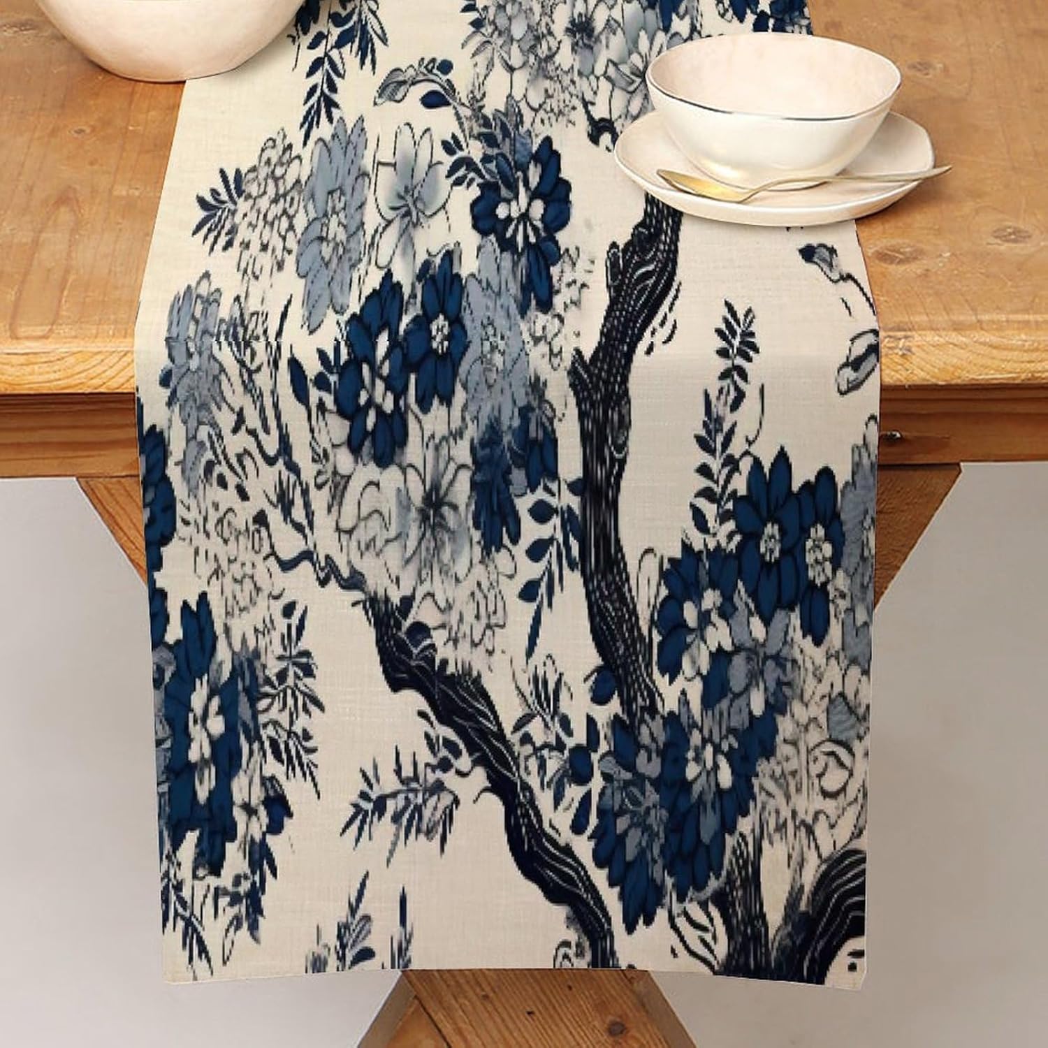 Divertente runner da cucina in cotone e lino, motivo ortensia con ibisco, iris, decorazione per cucina, tavolo da pranzo, eventi speciali, feste