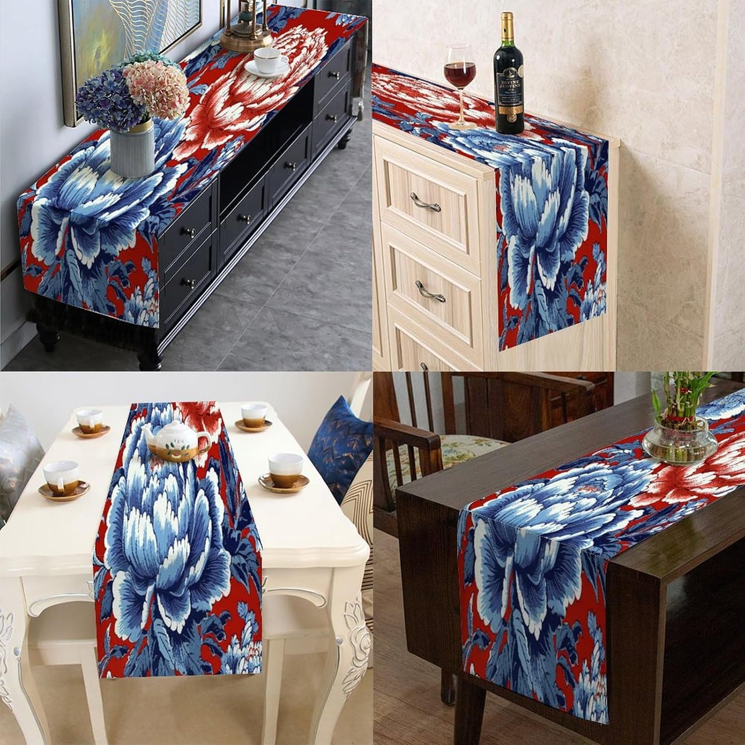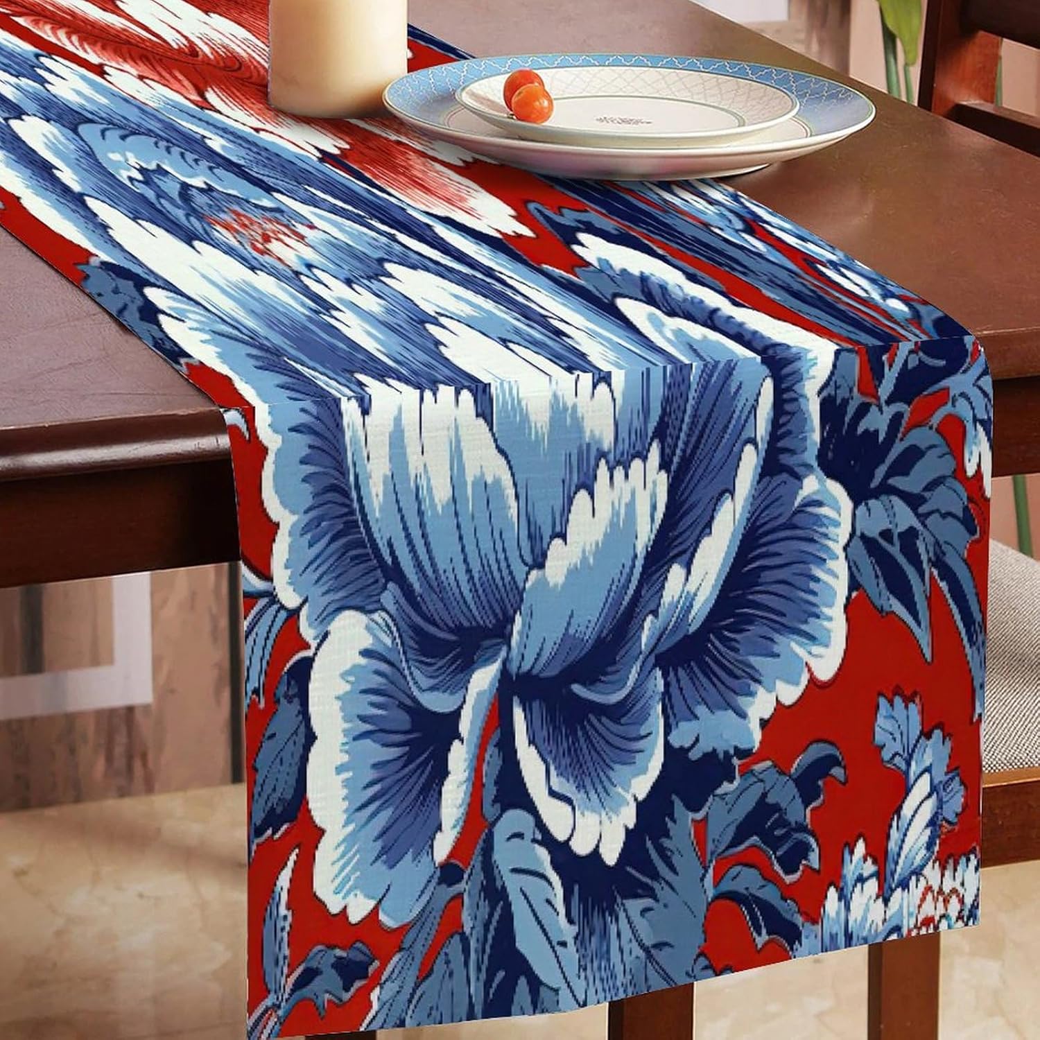 Divertente runner da cucina in stile rustico in cineserie floreale in cotone e lino, decorazione da tavolo per cucina, tavolo da pranzo, eventi speciali, decorazione per feste