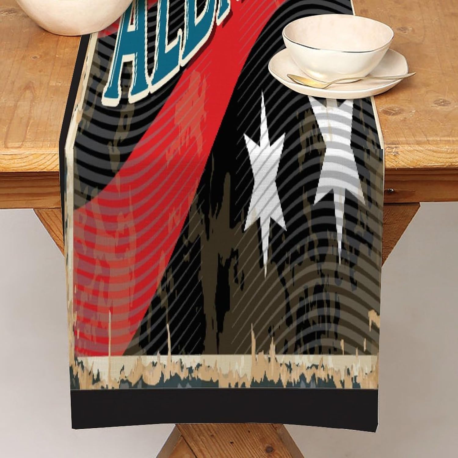 Divertente runner da tavola con bandiera dell'Albania, 33 x 178 cm, runner da tavola in iuta dell'Albania, moderno per comò e runner per la casa