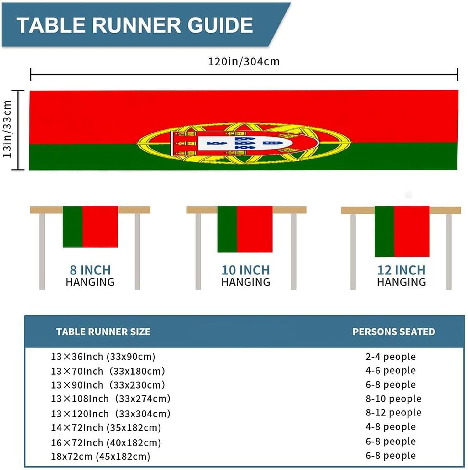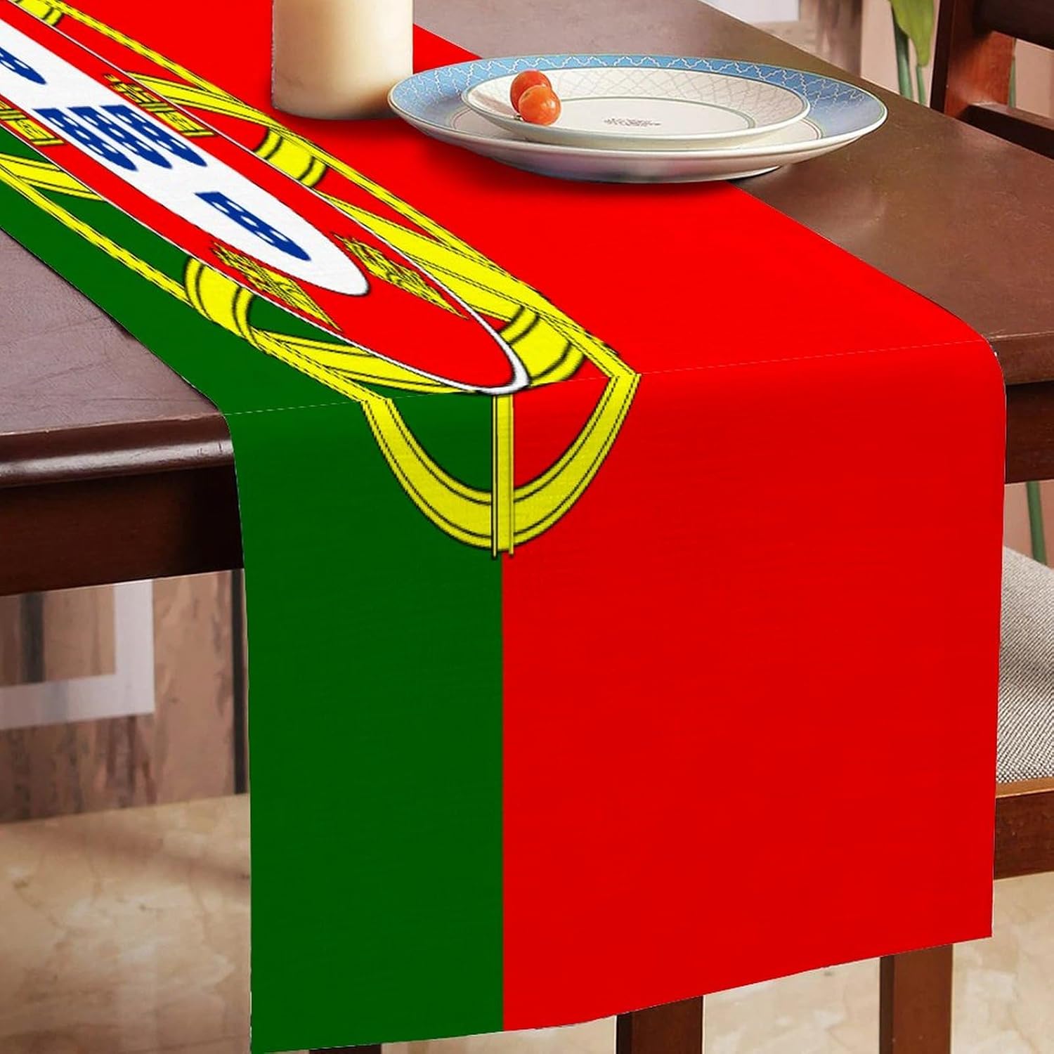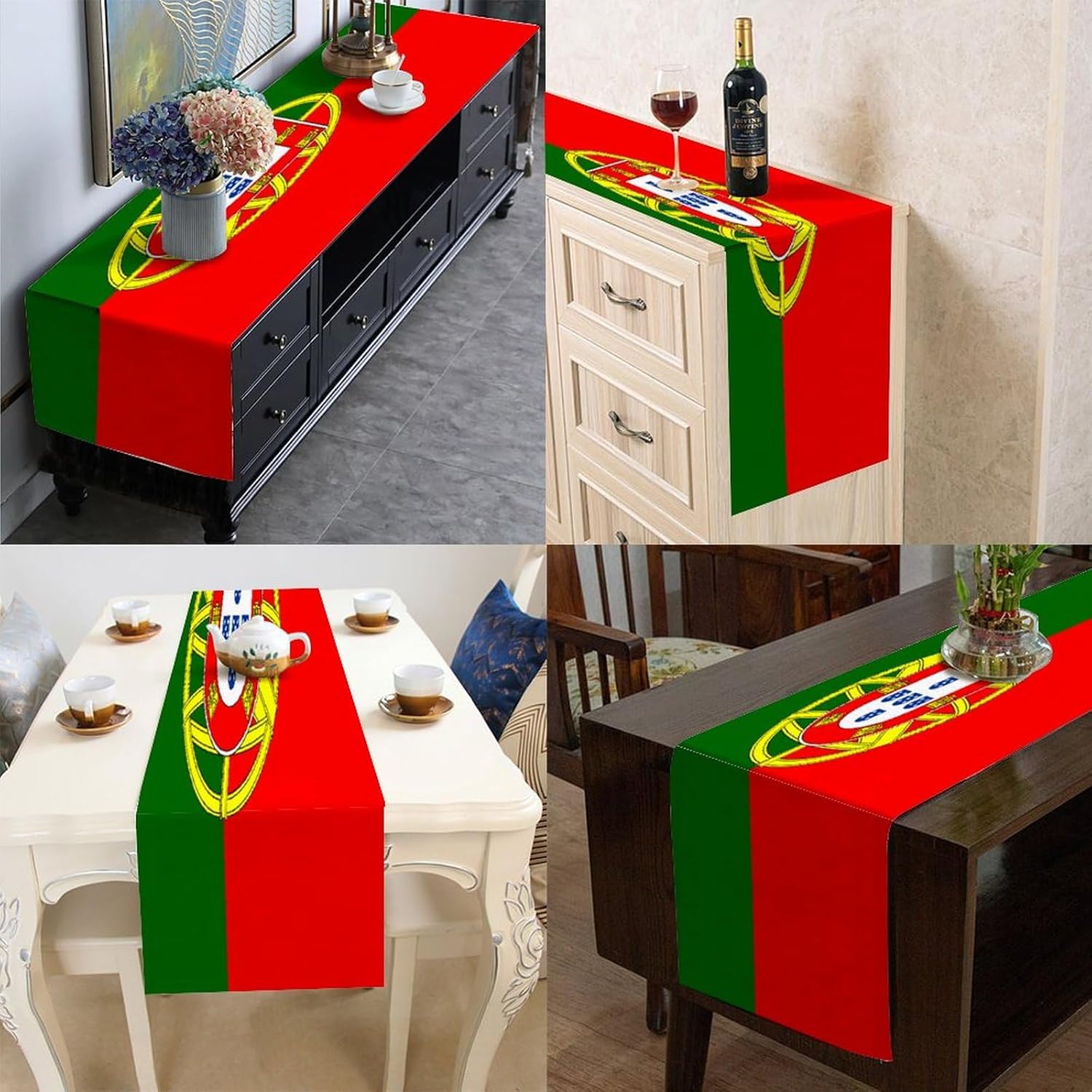Divertente runner da tavola con bandiera nazionale del Portogallo, 33 x 300 cm, runner da tavola in iuta del Portogallo, moderno per comò, sciarpe e runner per la casa