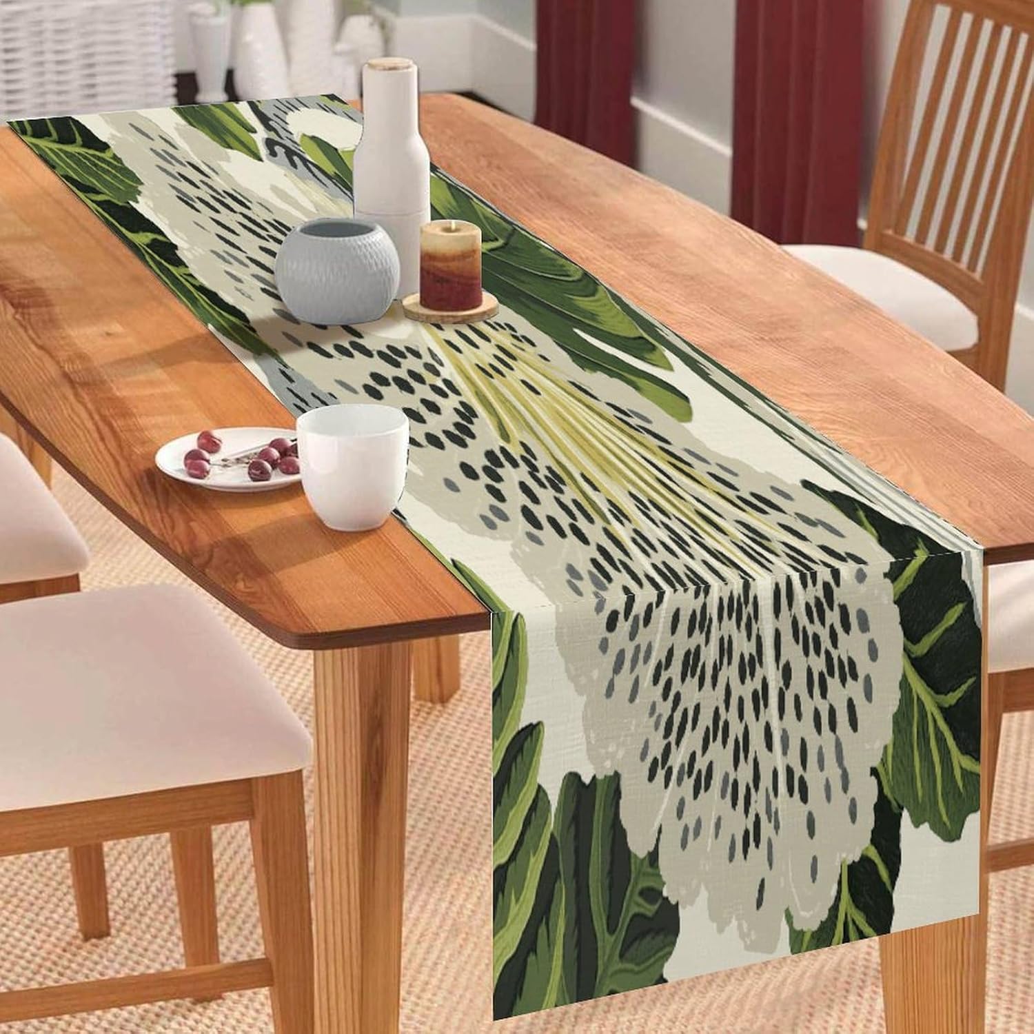 Dimensioni: 304 x 33 cm. Materiale: realizzato in morbido lino di cotone, comodo e durevole, resistente all'usura. Protegge la superficie del tavolo per la decorazione quotidiana della tavola, proteggendo la superficie del tavolo da pentole calde, graffi, danni causati dal calore. [Grande decorazione]: i runner da tavola sono un modo veloce, facile ed economico per aggiornare il tavolo della sala da pranzo, la camera da letto, il comò. Sarà il tuo compagno perfetto per colazione, pranzo e cena. Questa tovaglia dal design elegante aumenterà il fascino del tavolo da pranzo. [Uso multiuso]: alla ricerca di un runner da tavola per più occasioni? Non cercare più! Questo runner da tavola può andare dal ringraziamento alla festa di Natale ed è ottimo anche per una serata estiva informale. Sarà anche un regalo perfetto per i tuoi cari per l'inaugurazione della casa, il Ringraziamento o Natale. Ampia applicazione: caratterizzato da un motivo elegante con un bel bordo con nappe, sembra bello e vintage. Adatto per l'uso quotidiano, balli, matrimoni, feste o qualsiasi vacanza speciale. Ideale per uso interno ed esterno, come cucina, giardino, tè pomeridiano, caffè, cene, balcone, potlucks.