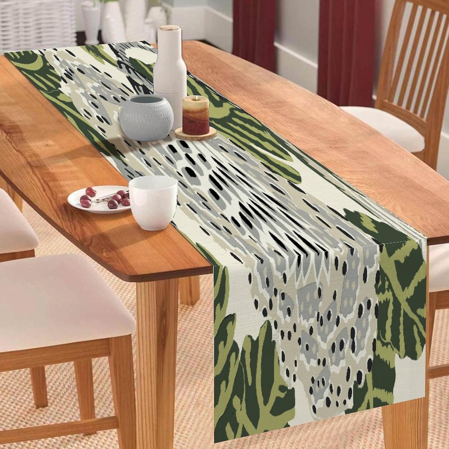 Dimensioni: 180 x 33 cm. Materiale: realizzato in morbido lino di cotone, comodo e durevole, resistente all'usura. Protegge la superficie del tavolo per la decorazione quotidiana della tavola, proteggendo la superficie del tavolo da pentole calde, graffi, danni causati dal calore. [Grande decorazione]: i runner da tavola sono un modo veloce, facile ed economico per aggiornare il tavolo della sala da pranzo, la camera da letto, il comò. Sarà il tuo compagno perfetto per colazione, pranzo e cena. Questa tovaglia dal design elegante aumenterà il fascino del tavolo da pranzo. [Uso multiuso]: alla ricerca di un runner da tavola per più occasioni? Non cercare più! Questo runner da tavola può andare dal ringraziamento alla festa di Natale ed è ottimo anche per una serata estiva informale. Sarà anche un regalo perfetto per i tuoi cari per l'inaugurazione della casa, il Ringraziamento o Natale. Ampia applicazione: caratterizzato da un motivo elegante con un bel bordo con nappe, sembra bello e vintage. Adatto per l'uso quotidiano, balli, matrimoni, feste o qualsiasi vacanza speciale. Ideale per uso interno ed esterno, come cucina, giardino, tè pomeridiano, caffè, cene, balcone, potlucks.