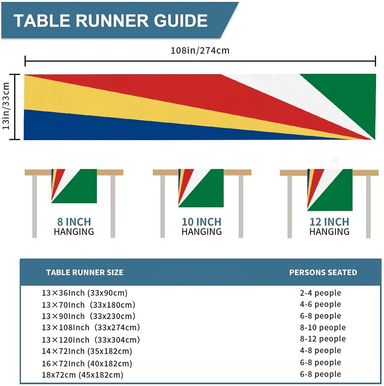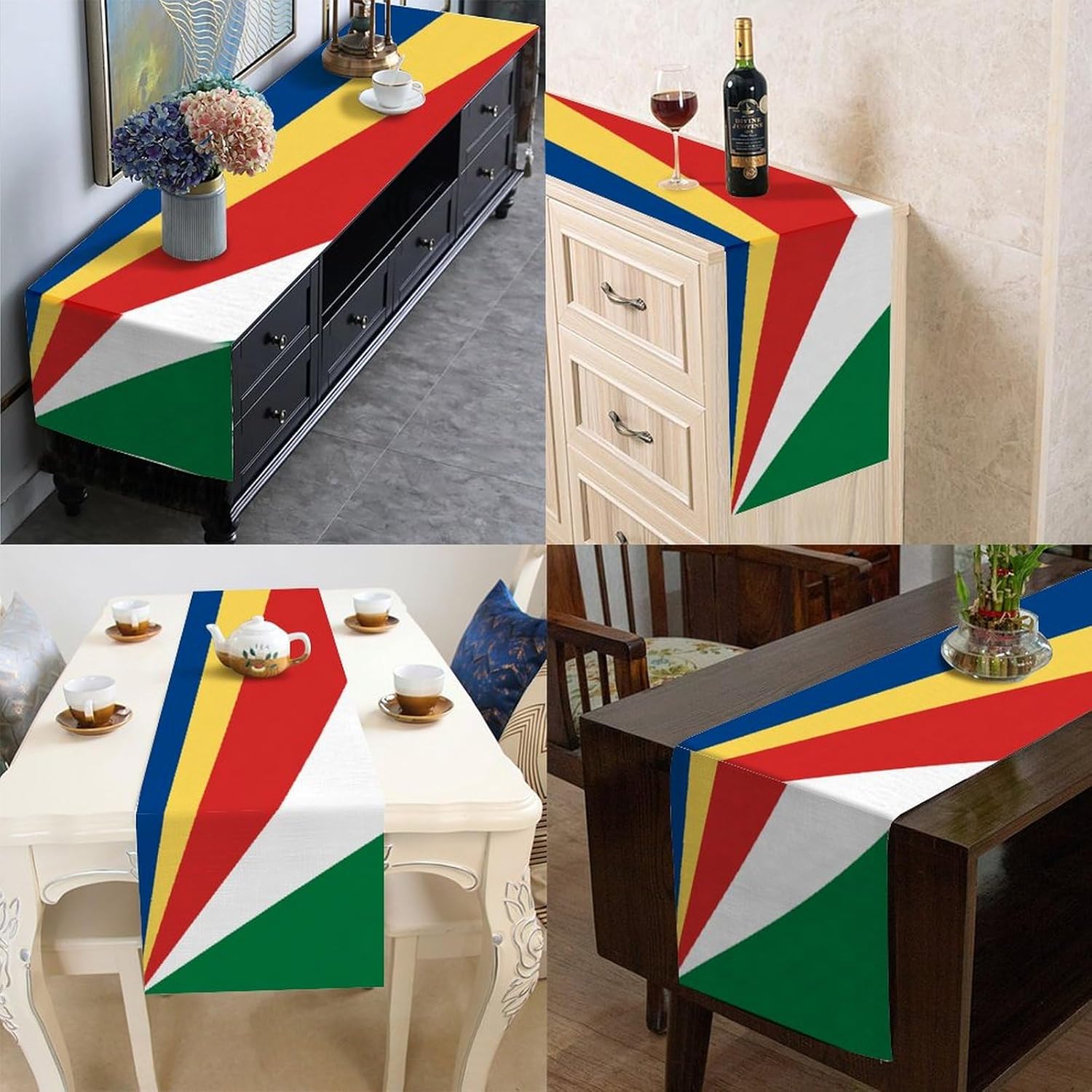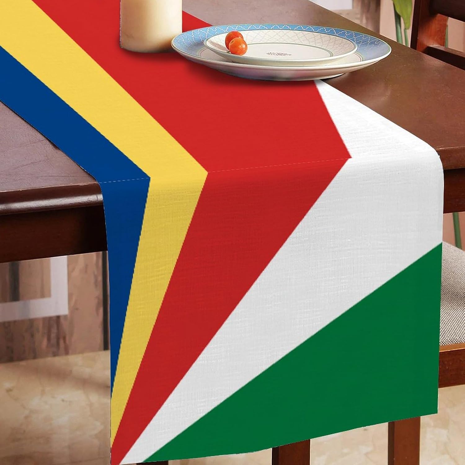 Divertente runner da tavola con bandiera nazionale delle Seychelles, 33 x 274 cm, runner da tavola in iuta delle Seychelles, moderno comò sciarpe e runner per la casa