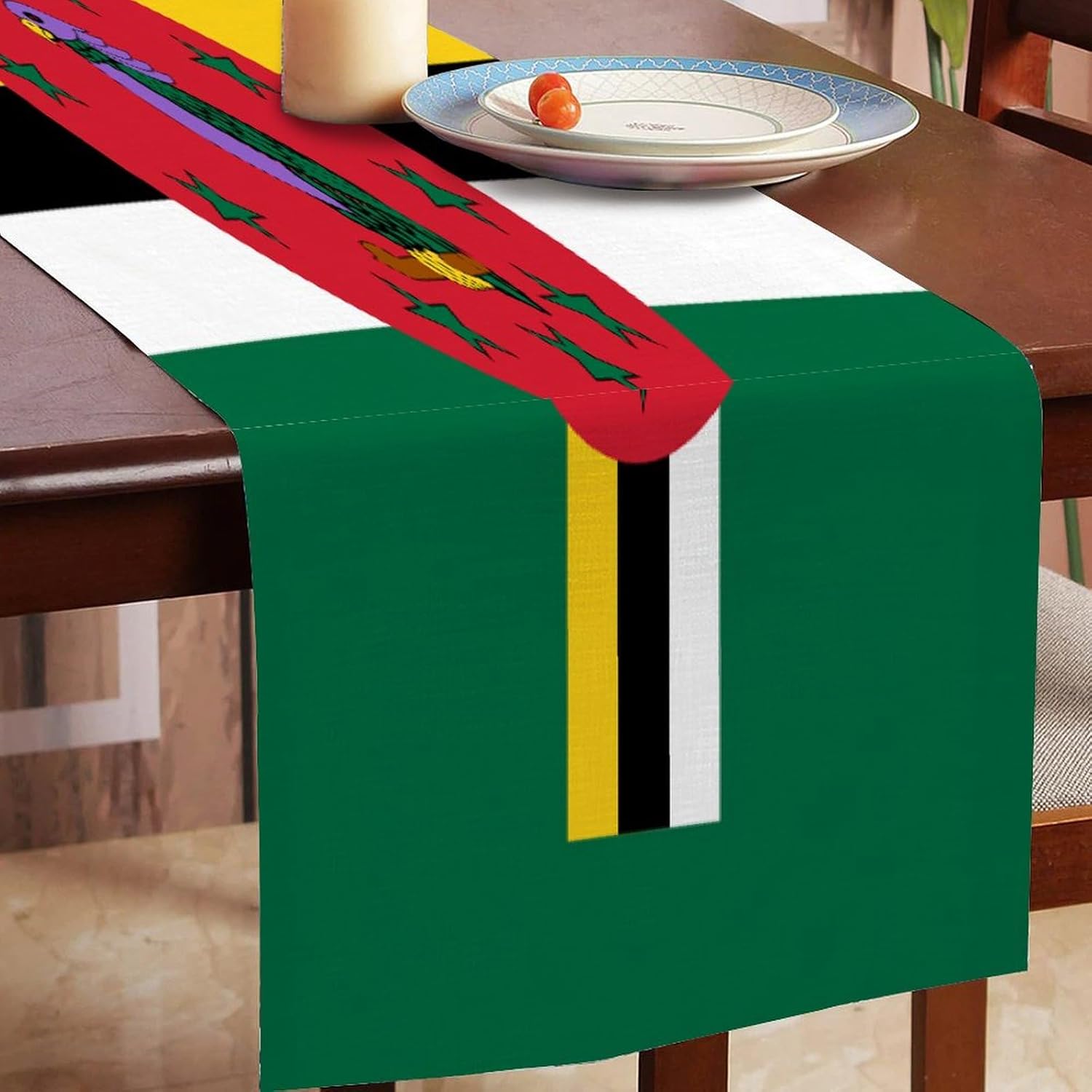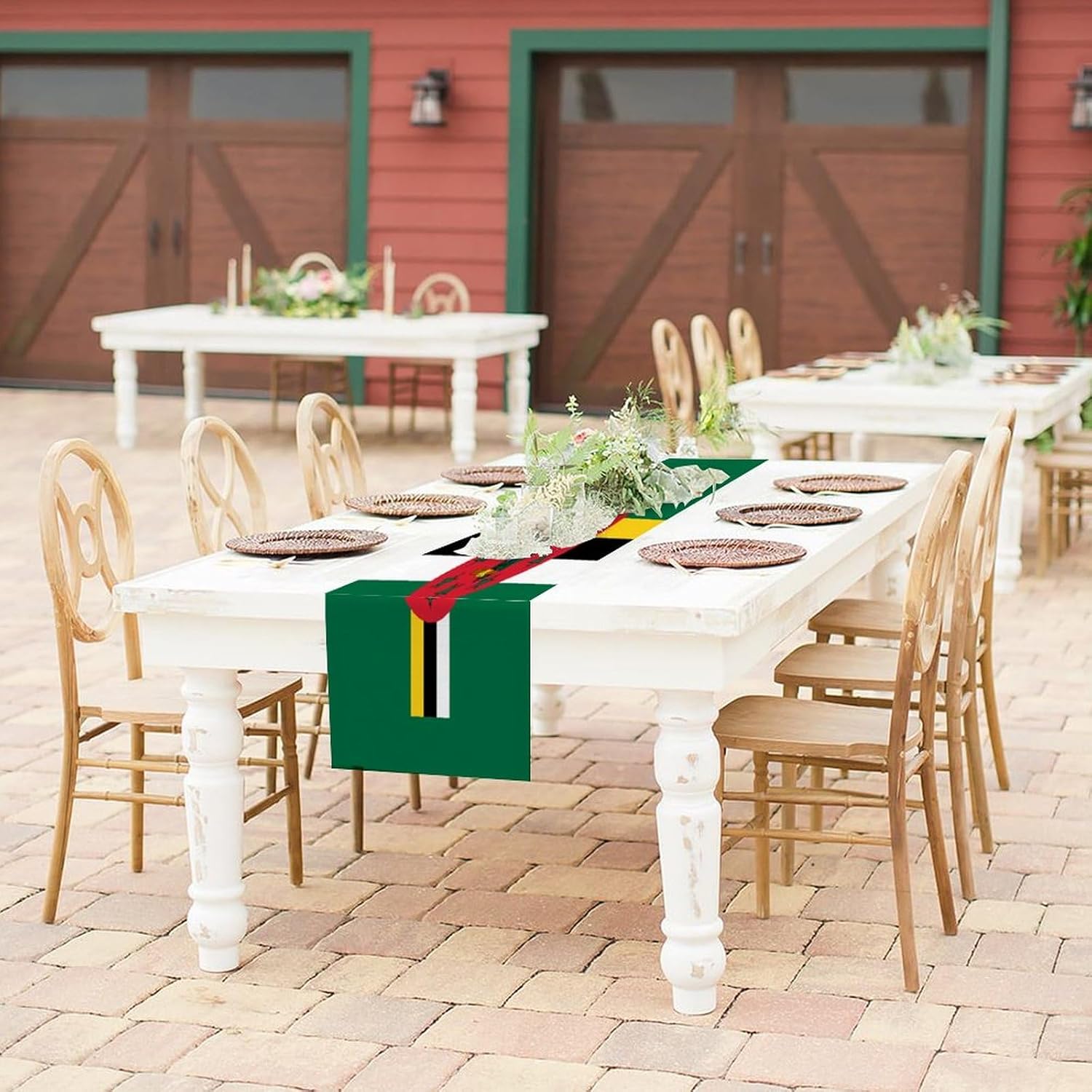 Divertente runner da tavola con bandiera nazionale Dominica, 35 x 182 cm, runner da tavola in iuta Dominica, moderno per comò, sciarpe e runner per la casa