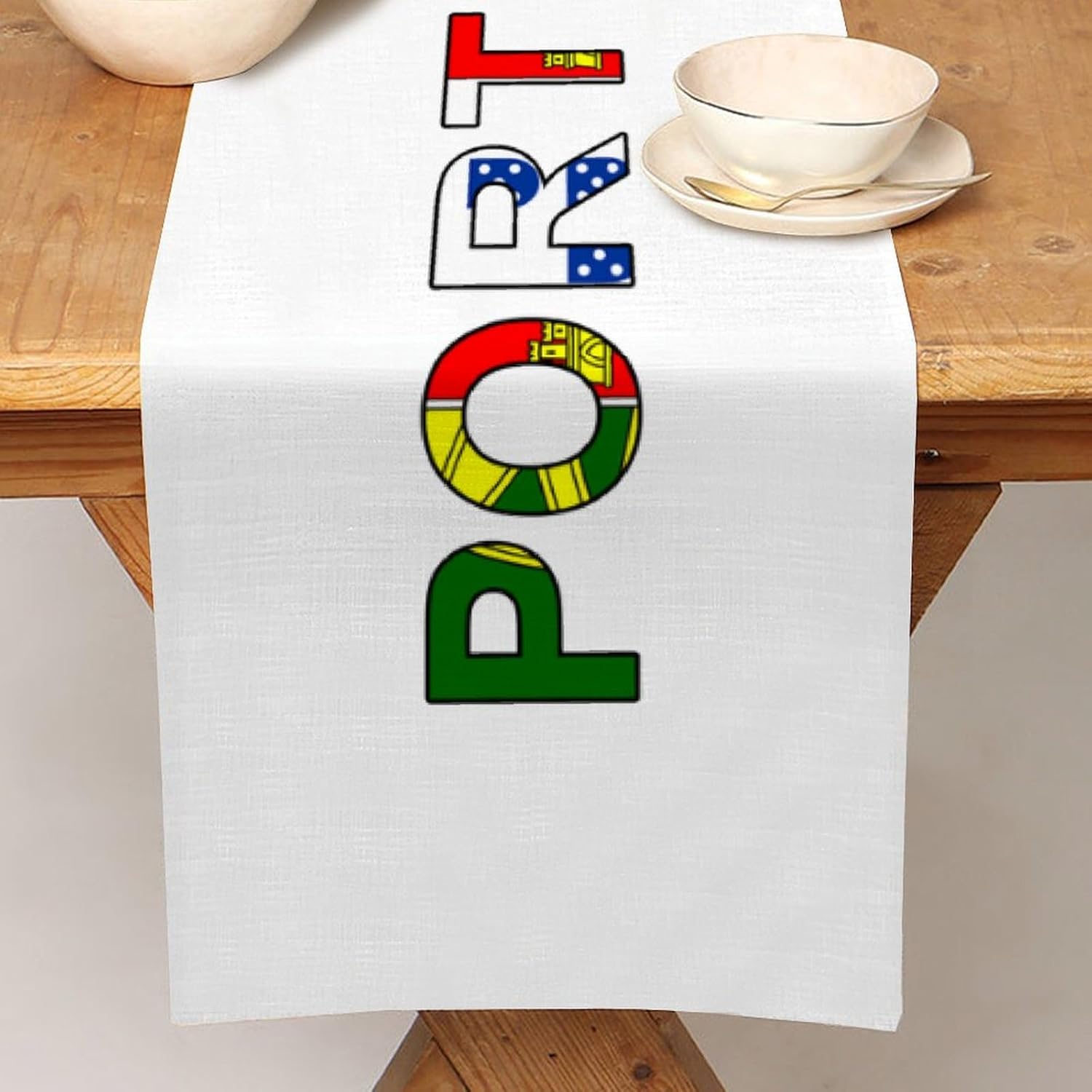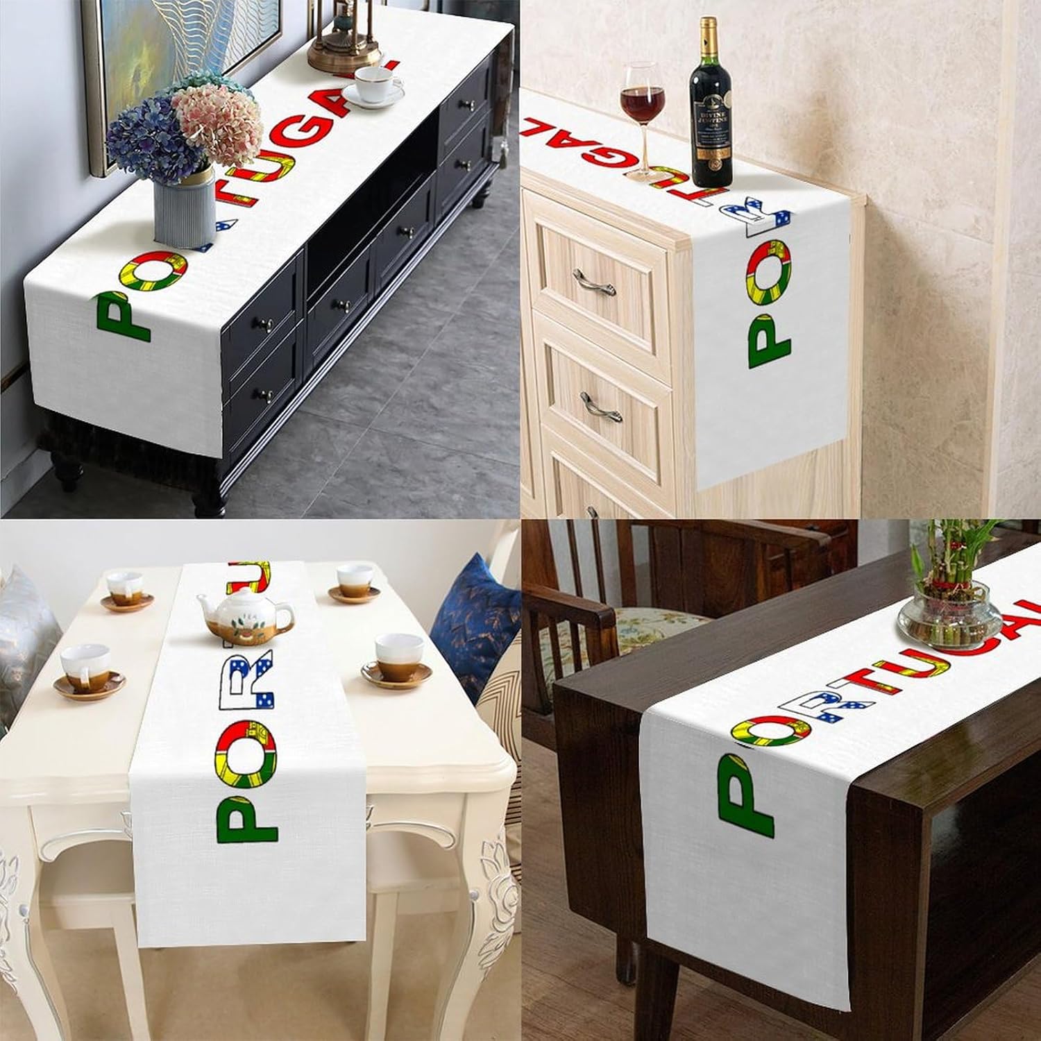Divertente runner da tavola da cucina con bandiera del Portogallo, stile fattoria, 33 x 274 cm, runner da tavola in iuta del Portogallo, moderno per comò, sciarpe e runner per la casa