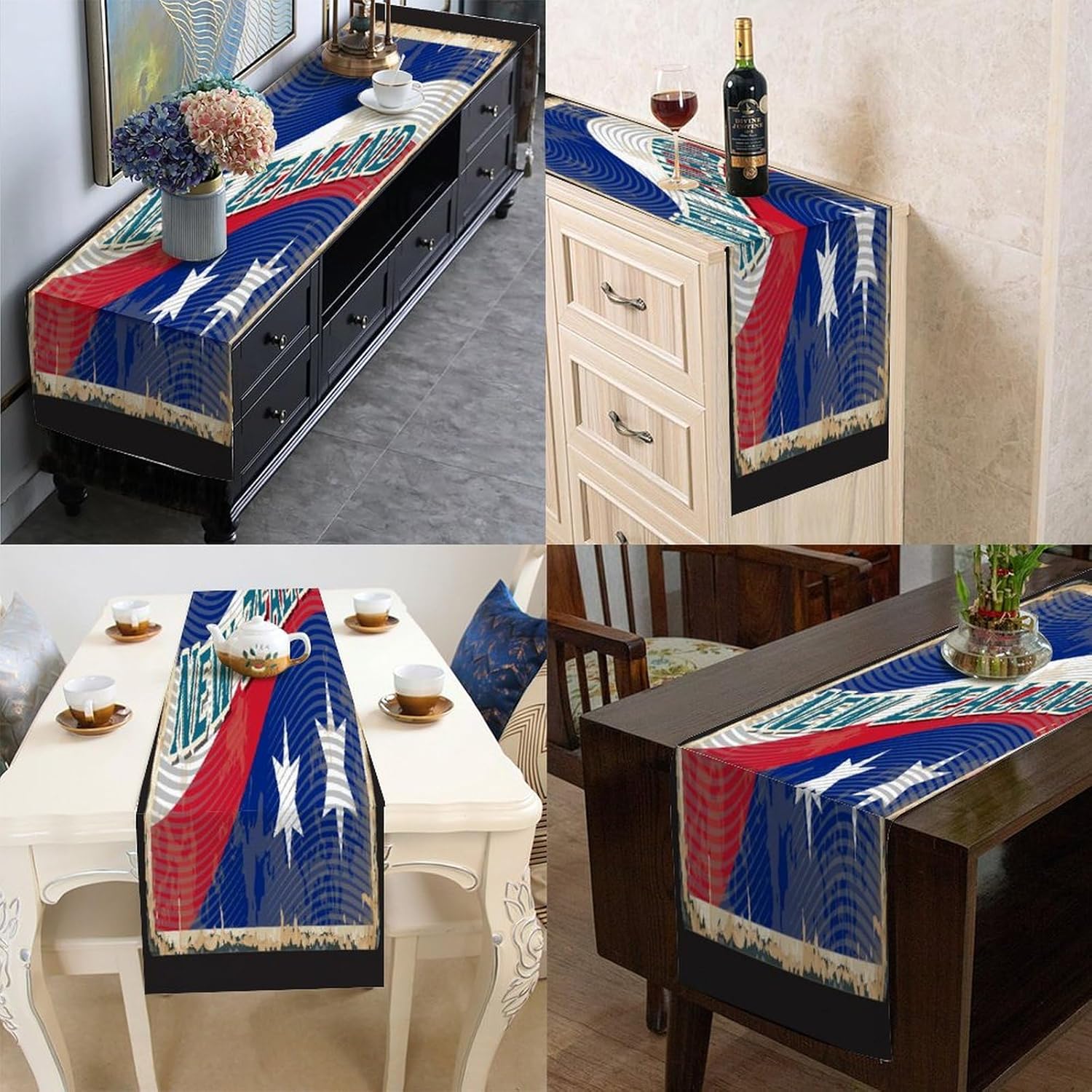 Divertente runner da tavola da cucina con bandiera della Nuova Zelanda, stile fattoria, 33 x 274 cm, runner da tavola in iuta della Nuova Zelanda, moderno per comò e runner per la casa