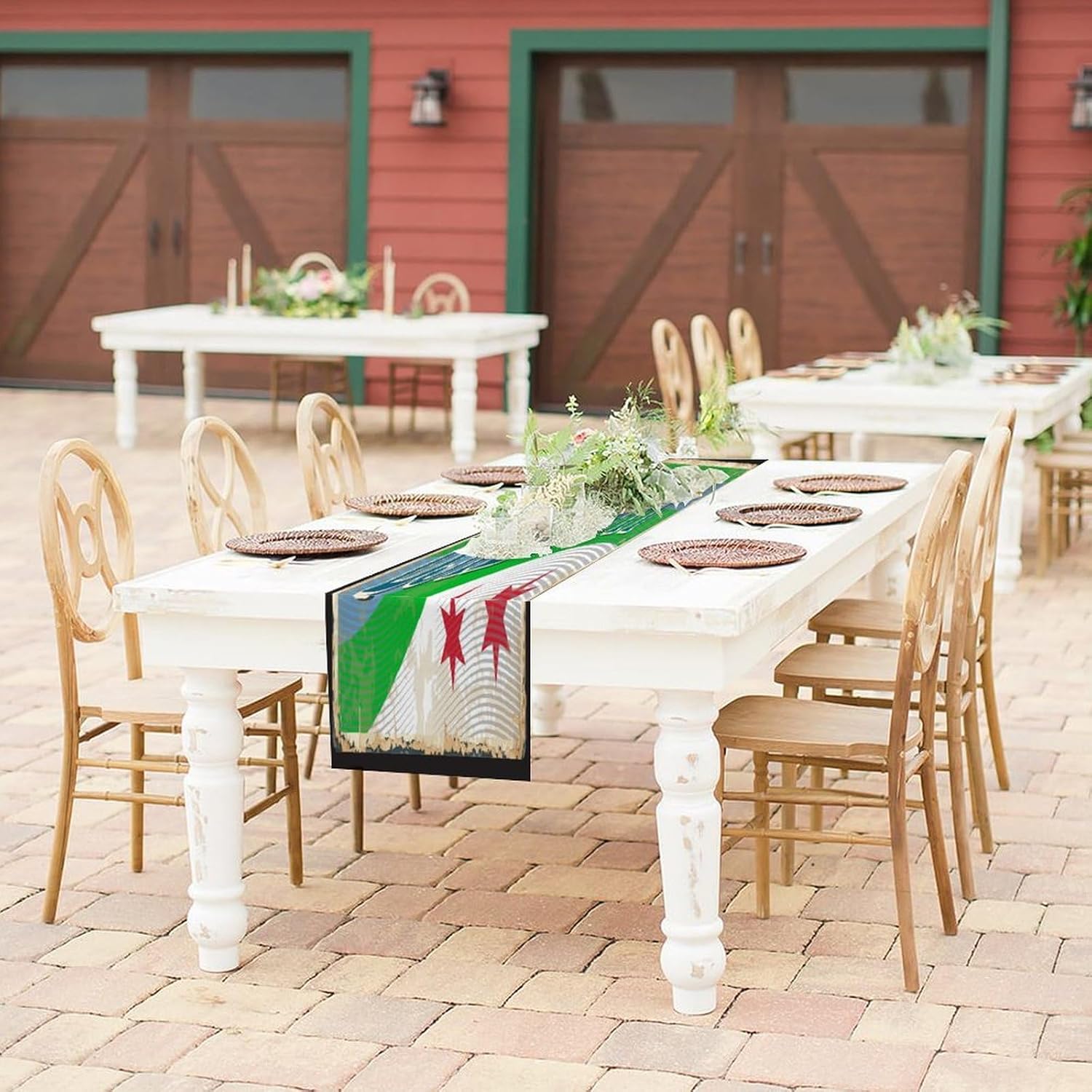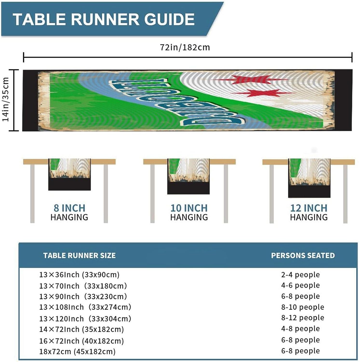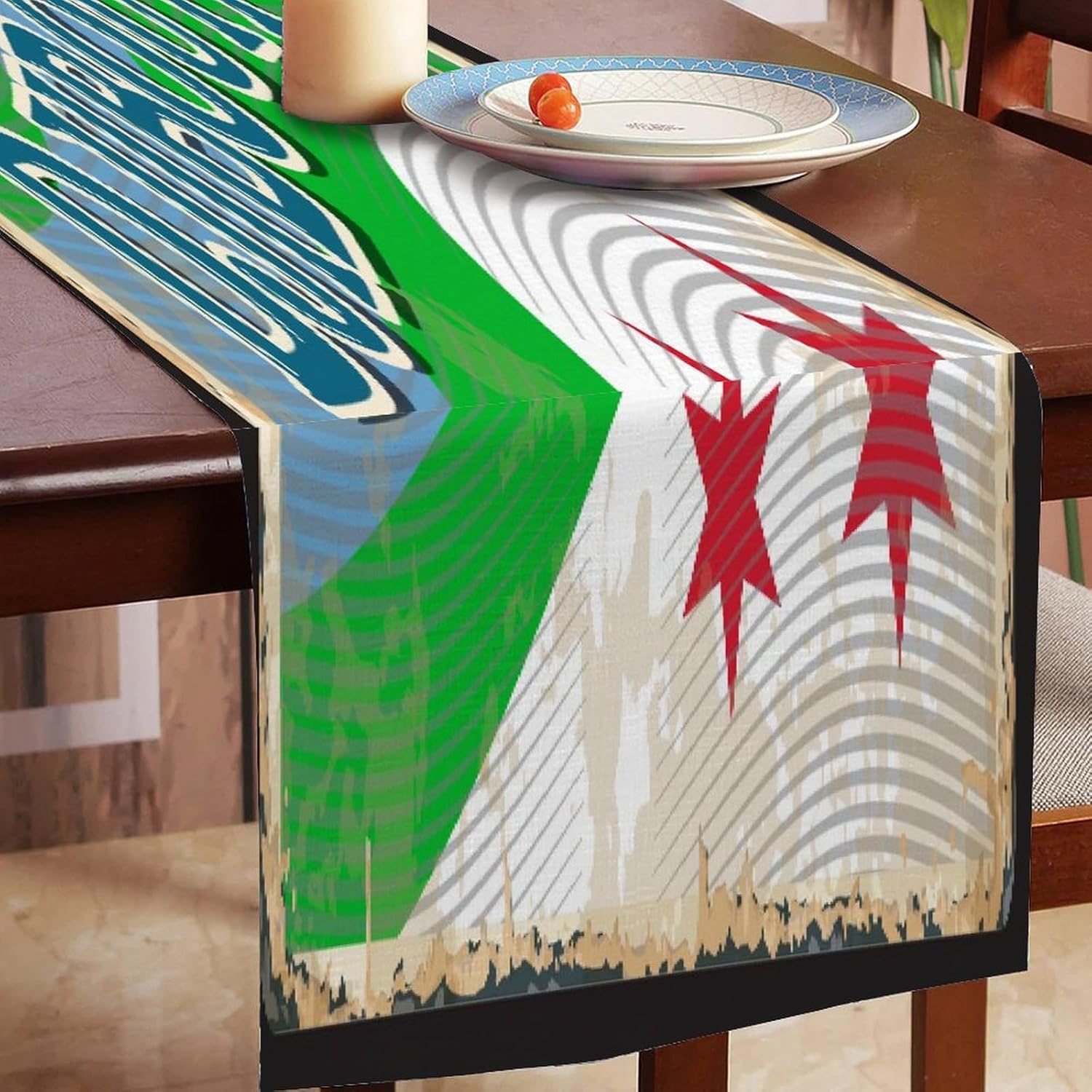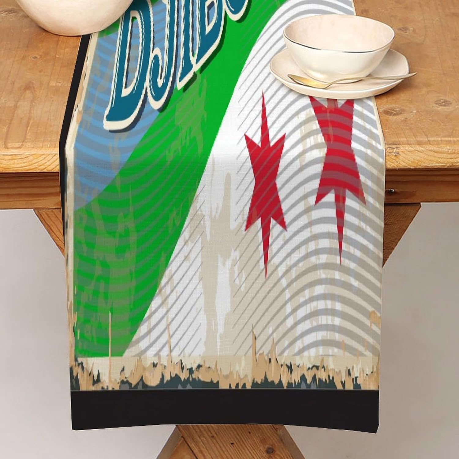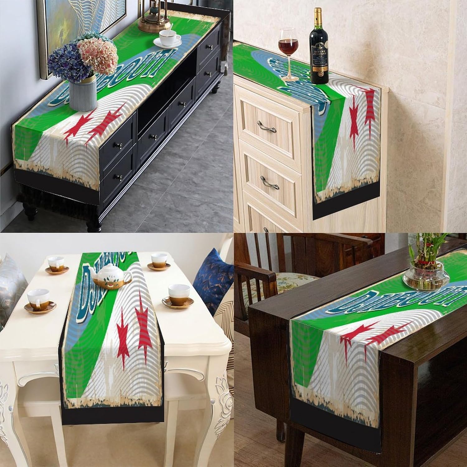 Divertente runner da tavola da cucina con bandiera di Gibuti in stile fattoria, 35,6 x 182,8 cm, runner da tavola in iuta gibuti, moderno per comò sciarpe e runner per la casa