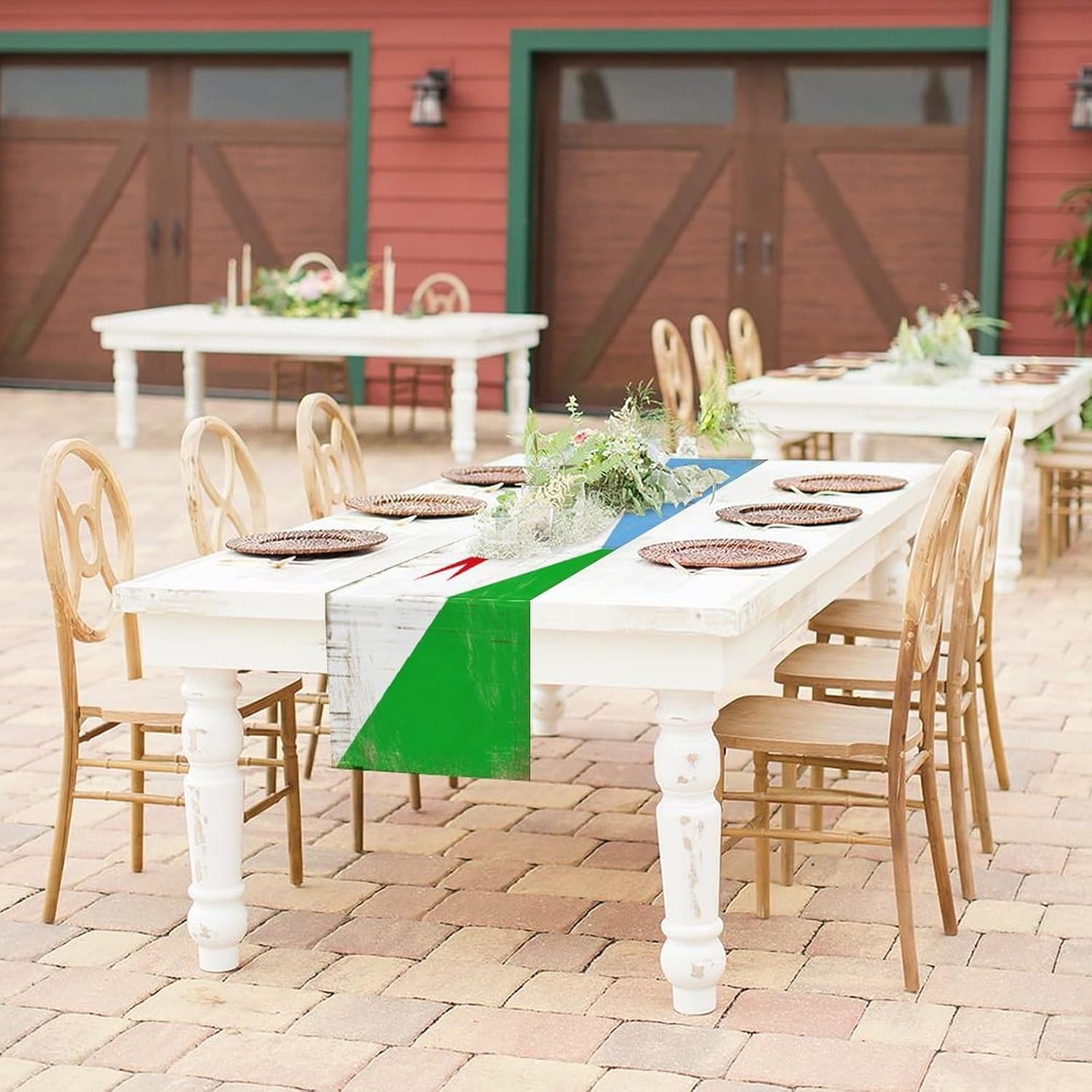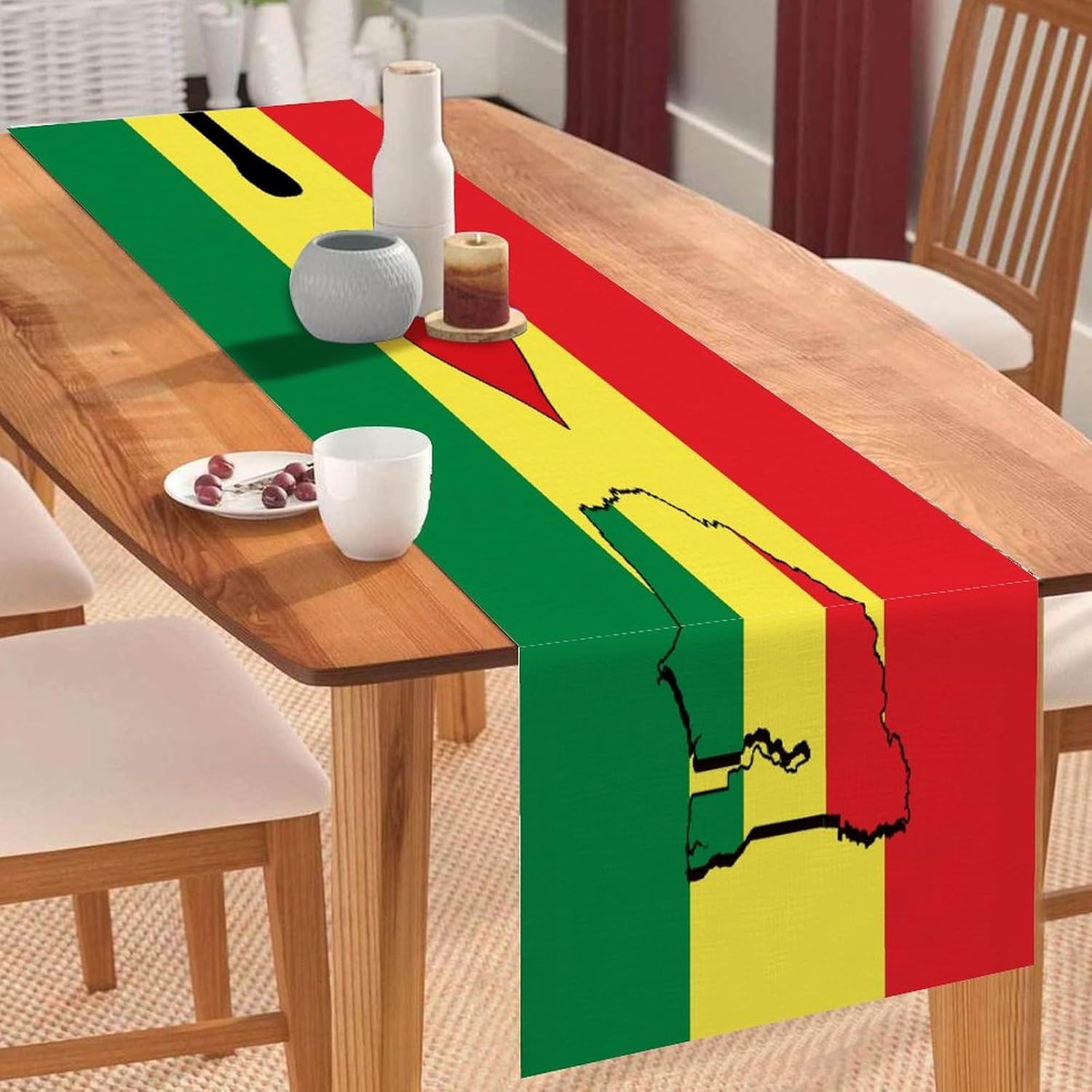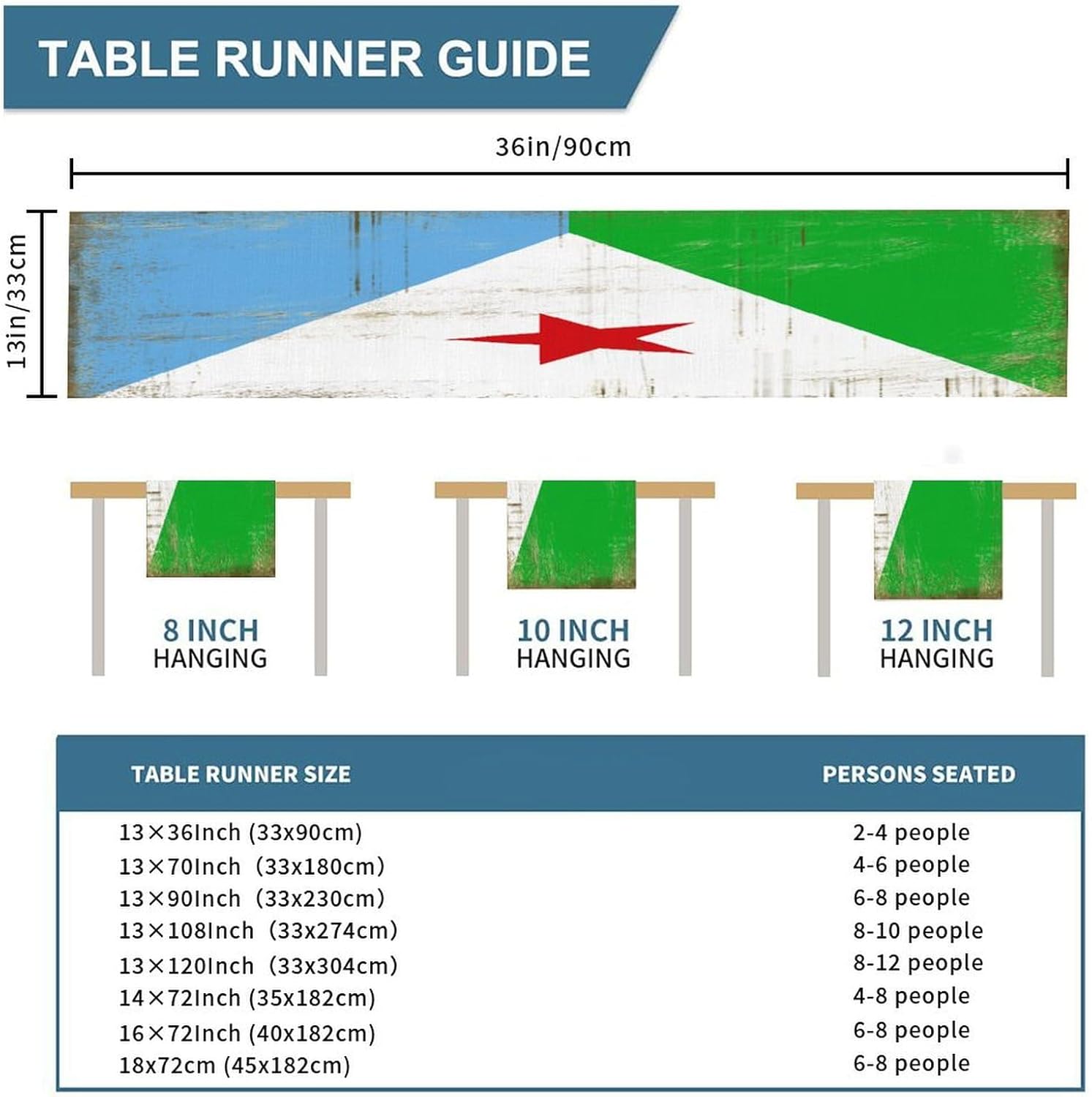 Divertente runner da tavola da cucina con bandiera nazionale di Gibuti, stile rustico, 33 x 91 cm, runner da tavola in iuta di Gibuti, moderno comò sciarpe e runner per la casa