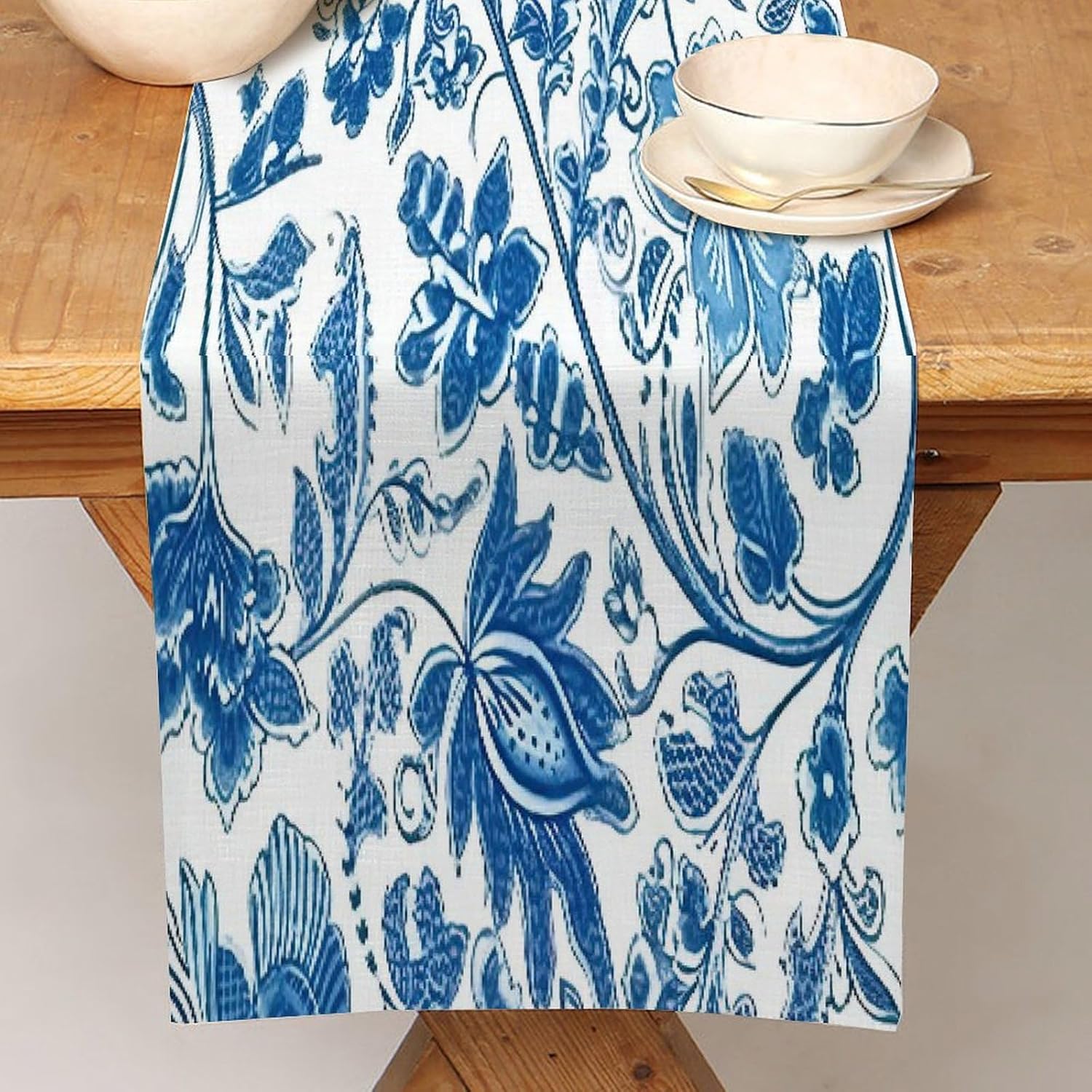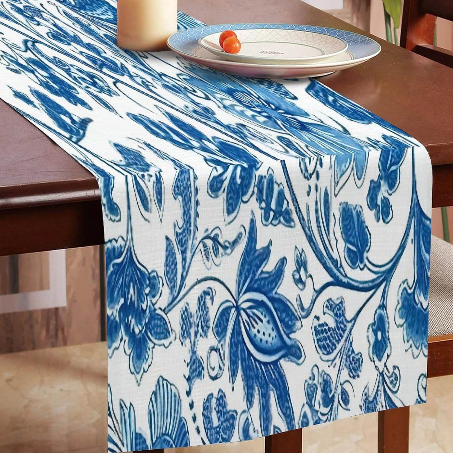 Divertente runner da tavola in cotone e lino con motivo floreale, stile rustico, decorazione per cucina, tavolo da pranzo, eventi speciali, decorazione per feste