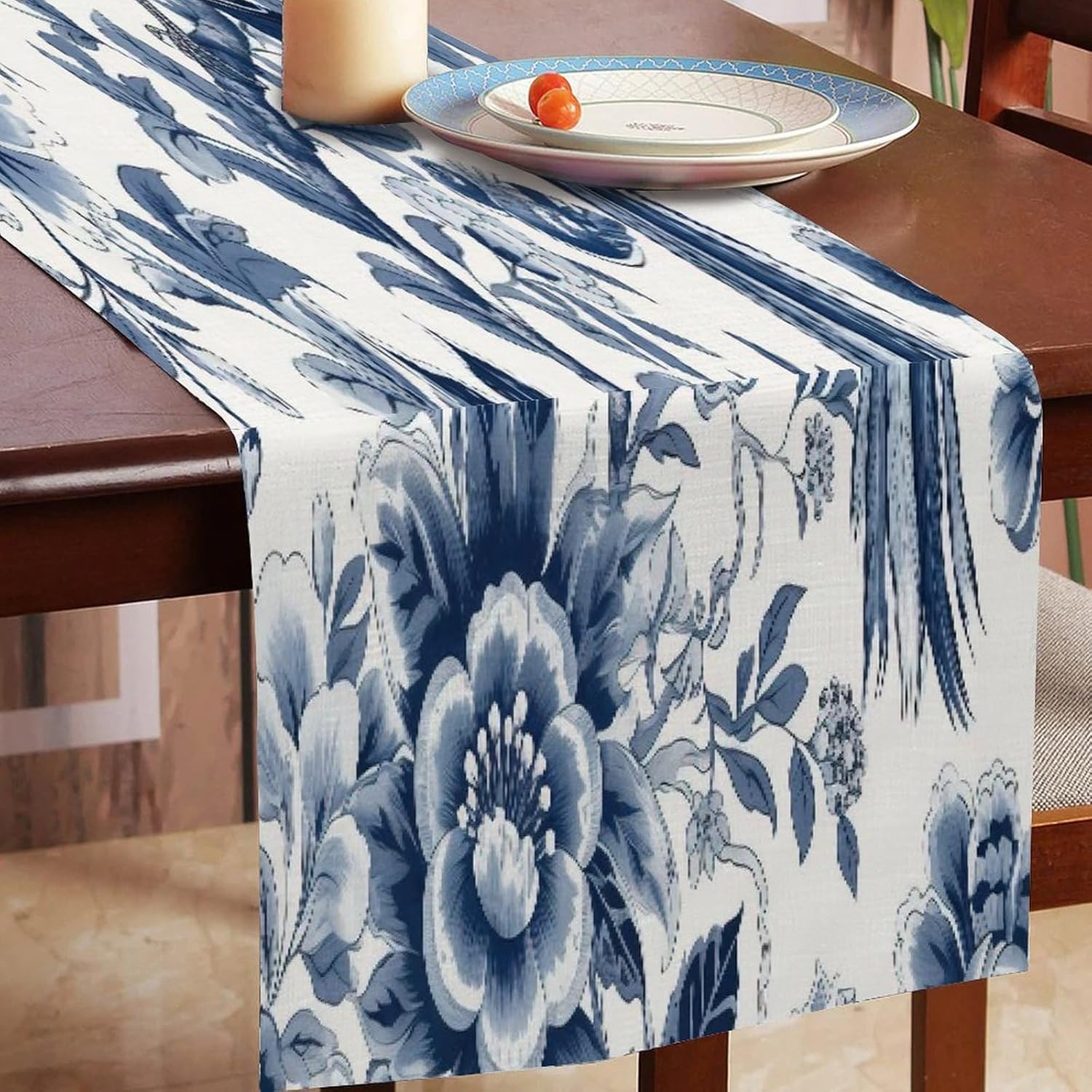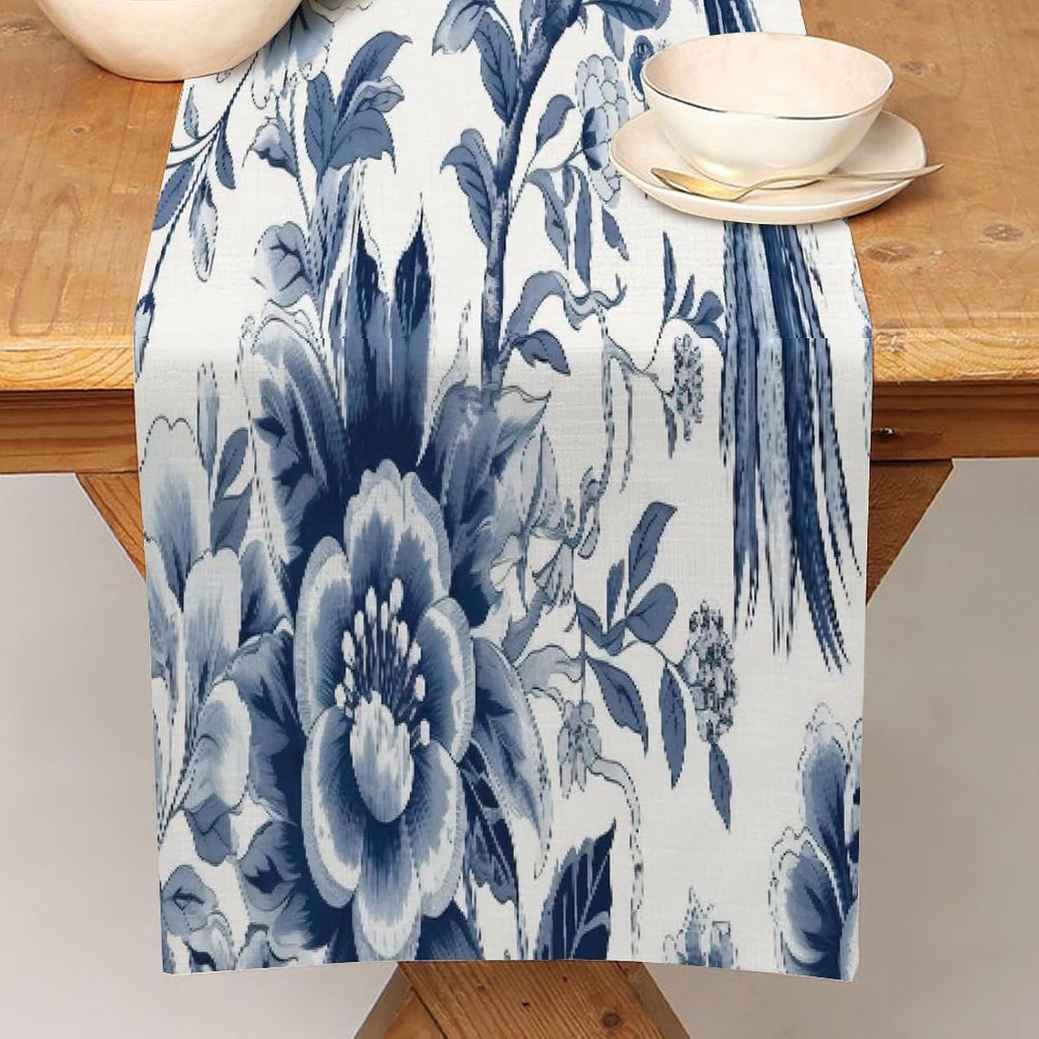Divertente runner da tavola in cotone e lino con uccellini e peonie, decorazione da cucina in stile fattoria, per cucina, tavolo da pranzo, eventi speciali, decorazione per feste