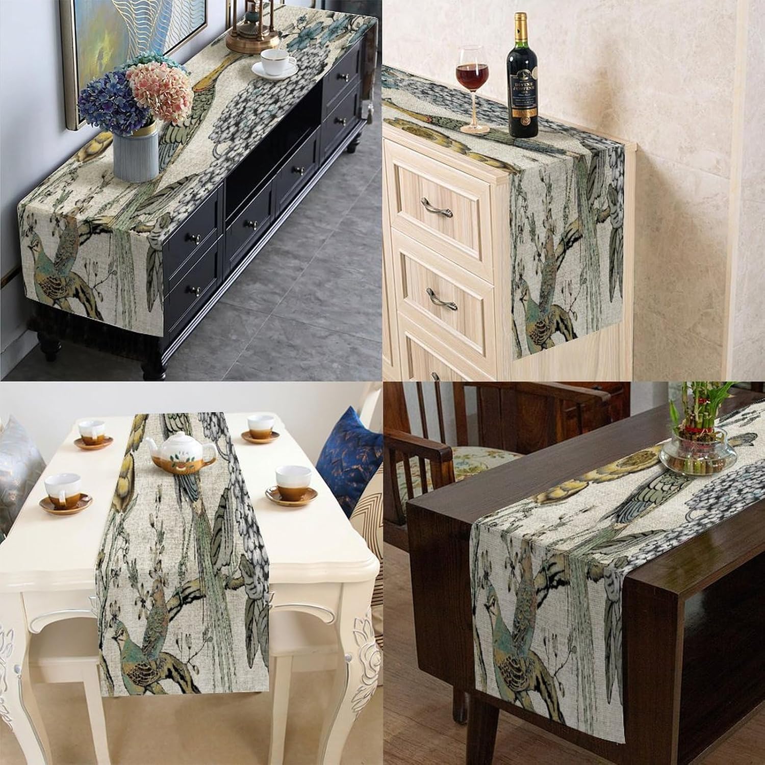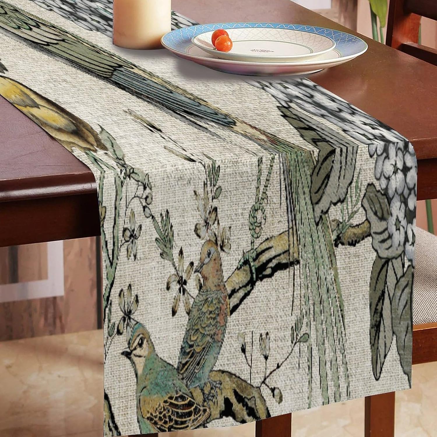Divertente runner da tavola in cotone e lino con uccellini, stile rustico, decorazione per cucina, tavolo da pranzo, eventi speciali, decorazione per feste