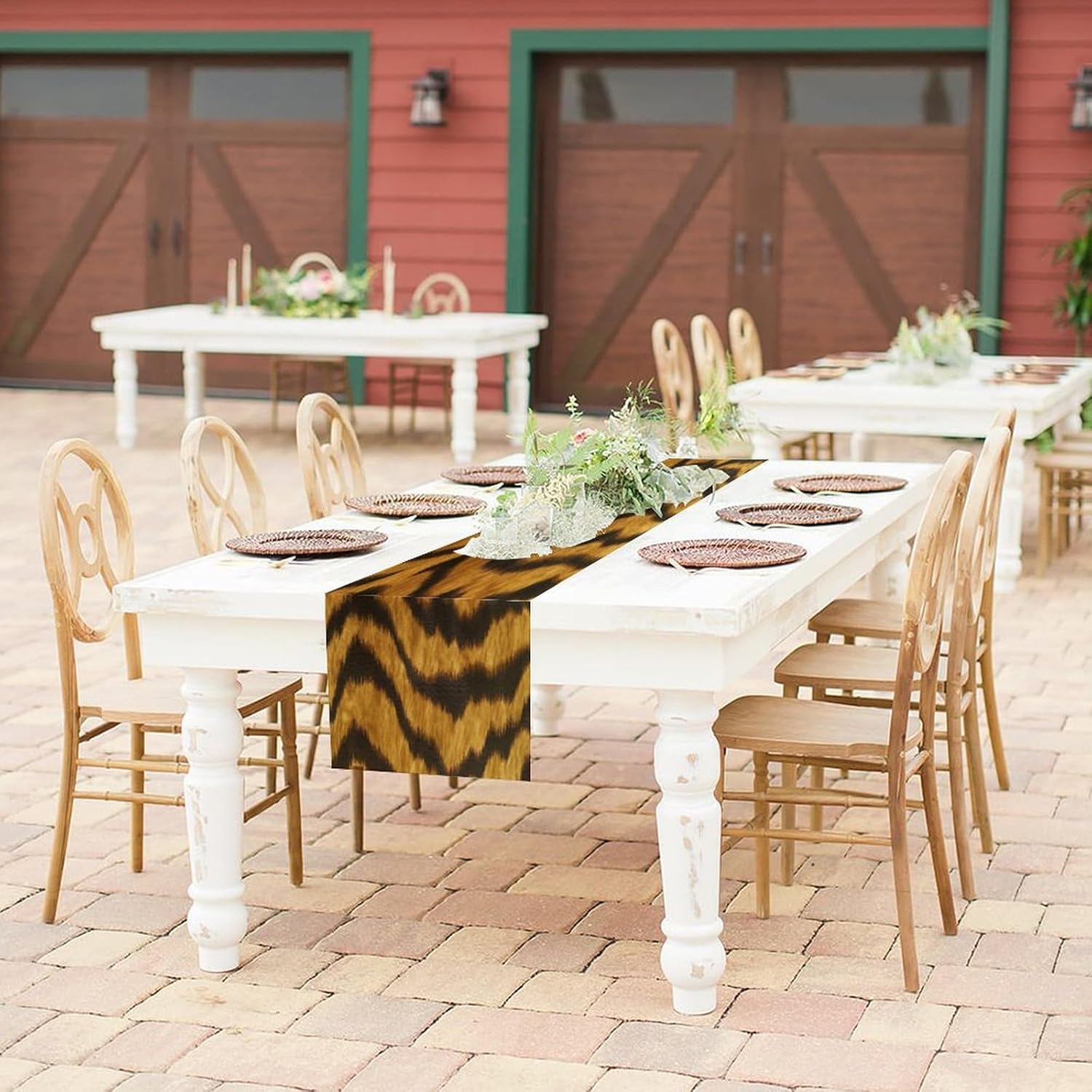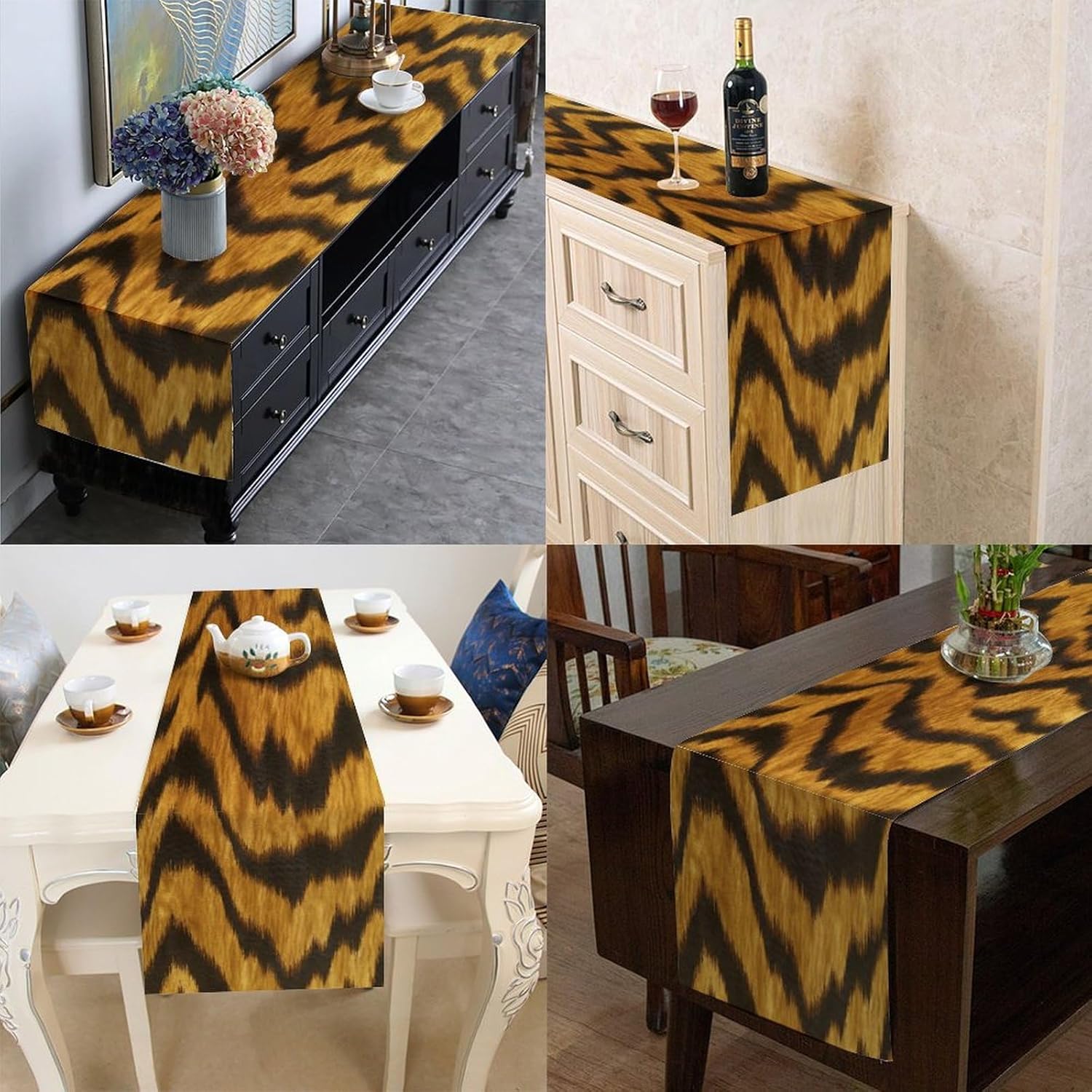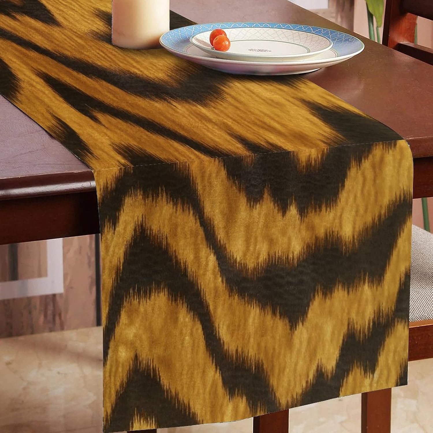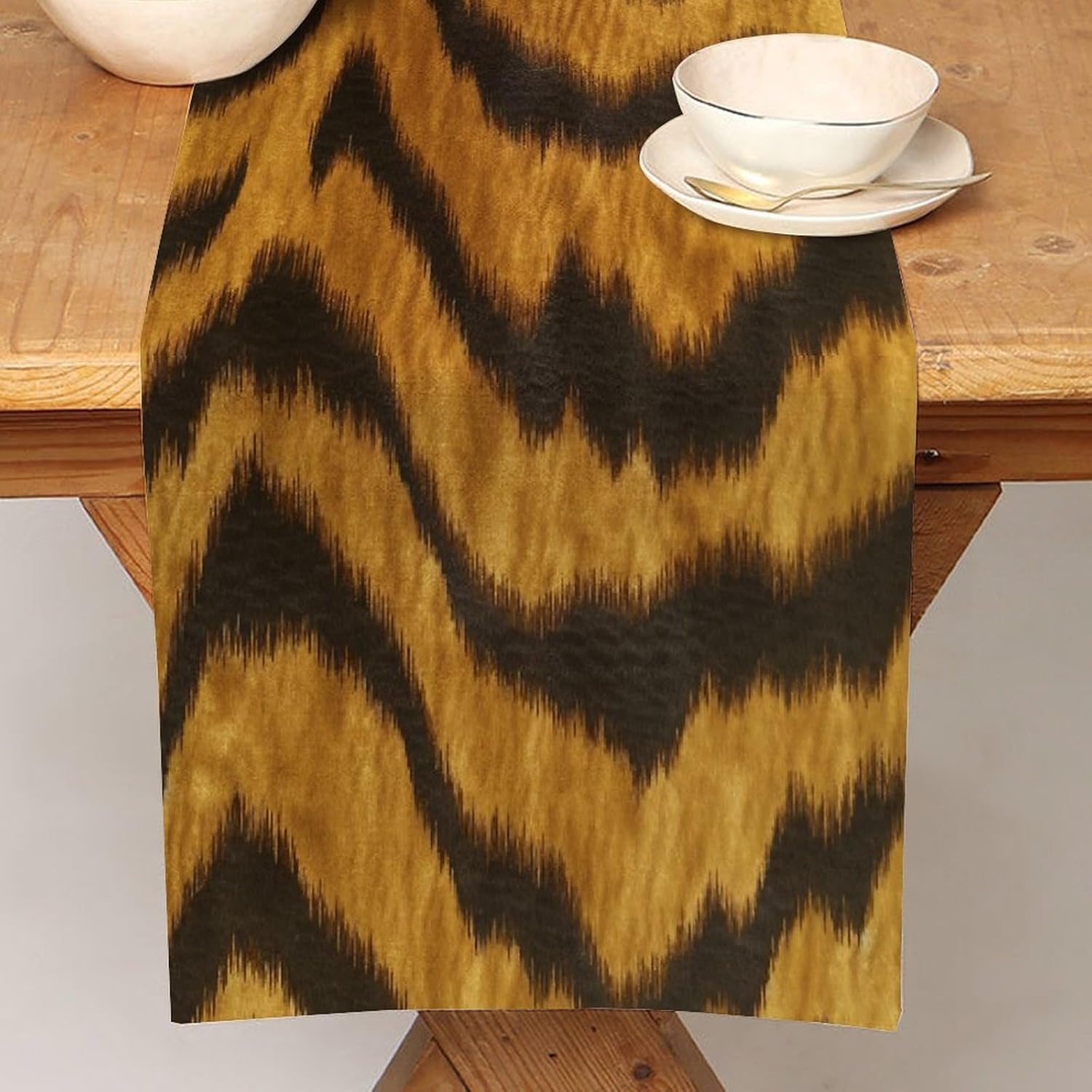 Divertente runner da tavola in cotone e lino giallo a righe tigre da cucina, decorazione per cucina, tavolo da pranzo, eventi speciali, decorazione per feste