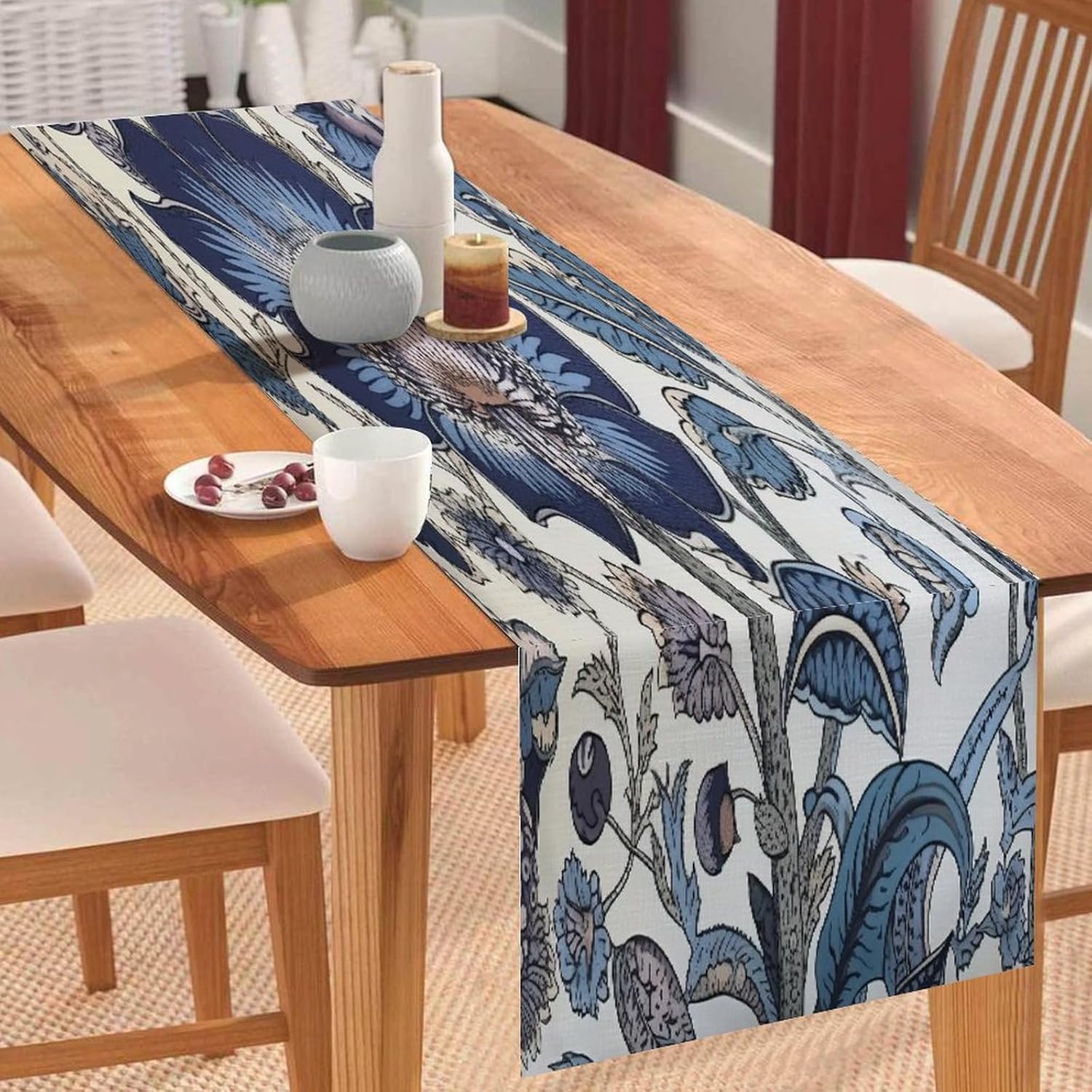Dimensioni: 182 x 35 cm. Materiale: realizzato in morbido lino di cotone, comodo e durevole, resistente all'usura. Protegge la superficie del tavolo per la decorazione quotidiana della tavola, proteggendo la superficie del tavolo da pentole calde, graffi, danni causati dal calore. [Grande decorazione]: i runner da tavola sono un modo veloce, facile ed economico per aggiornare il tavolo della sala da pranzo, la camera da letto, il comò. Sarà il tuo compagno perfetto per colazione, pranzo e cena. Questa tovaglia dal design elegante aumenterà il fascino del tavolo da pranzo. [Uso multiuso]: alla ricerca di un runner da tavola per più occasioni? Non cercare più! Questo runner da tavola può andare dal ringraziamento alla festa di Natale ed è ottimo anche per una serata estiva informale. Sarà anche un regalo perfetto per i tuoi cari per l'inaugurazione della casa, il Ringraziamento o Natale. Ampia applicazione: caratterizzato da un motivo elegante con un bel bordo con nappe, sembra bello e vintage. Adatto per l'uso quotidiano, balli, matrimoni, feste o qualsiasi vacanza speciale. Ideale per uso interno ed esterno, come cucina, giardino, tè pomeridiano, caffè, cene, balcone, potlucks.