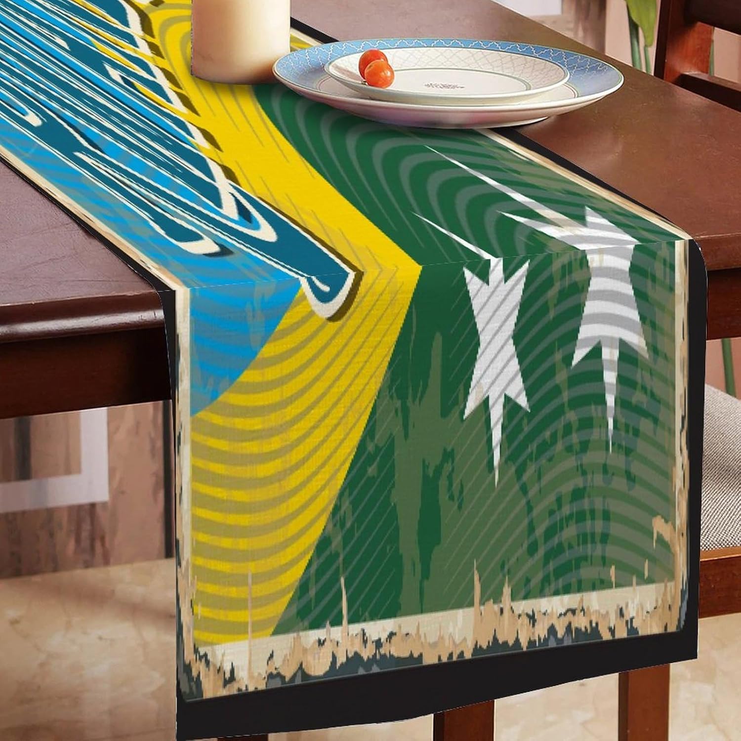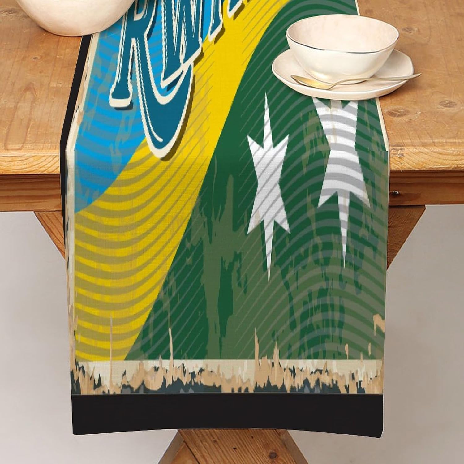 Divertente runner da tavola in stile rustico con bandiera del Ruanda, 33 x 274 cm, runner da tavola in juta ruandese, sciarpe e runner moderni per la casa