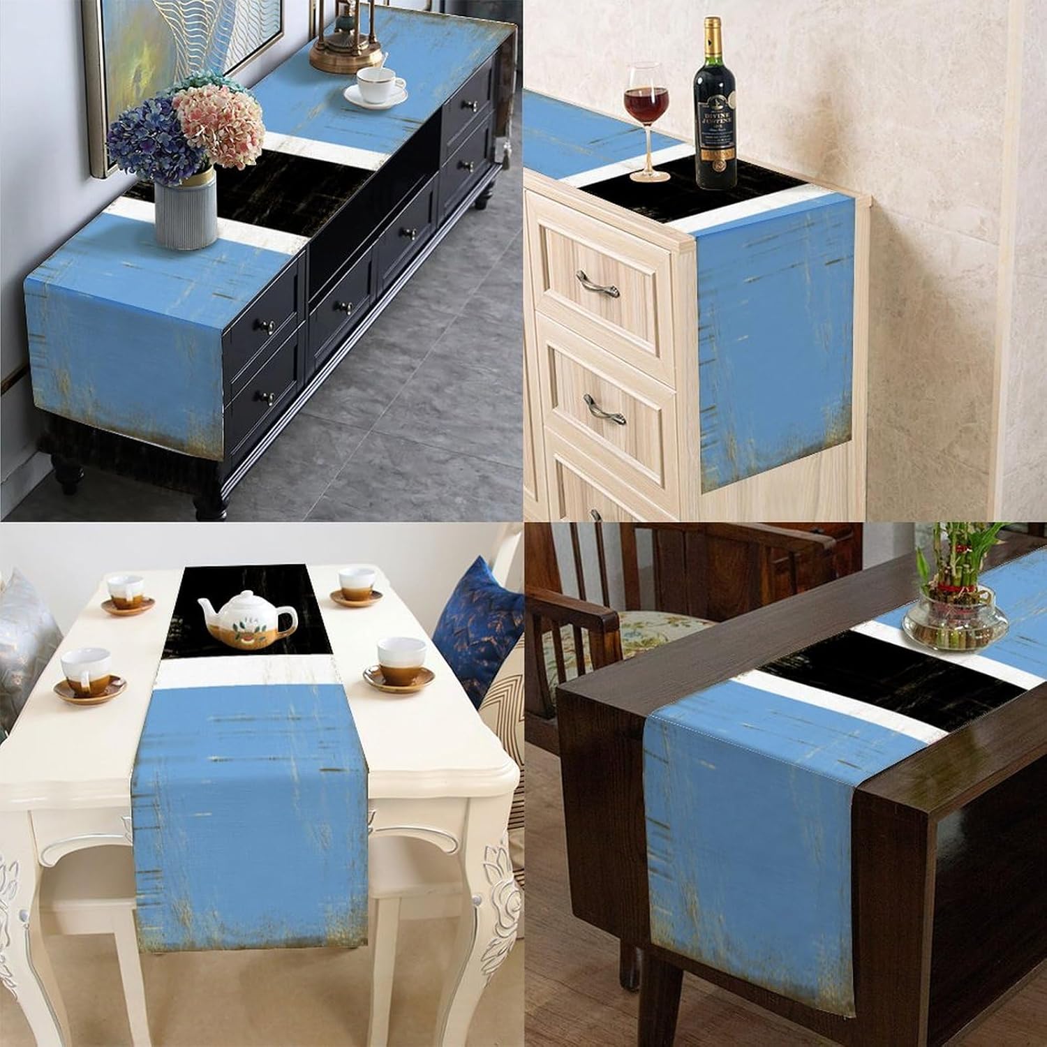 Divertente runner da tavola in stile rustico con bandiera nazionale del Botswana, stile vintage, 33 x 178 cm, runner da tavola in iuta del Botswana, moderno per comò e runner per la casa