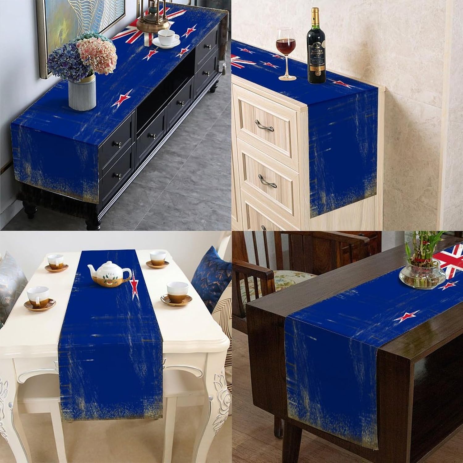 Divertente runner da tavola in stile rustico con bandiera nazionale della Nuova Zelanda, 33 x 228 cm, runner da tavola in iuta della Nuova Zelanda, moderno runner per comò, sciarpe e runner per la