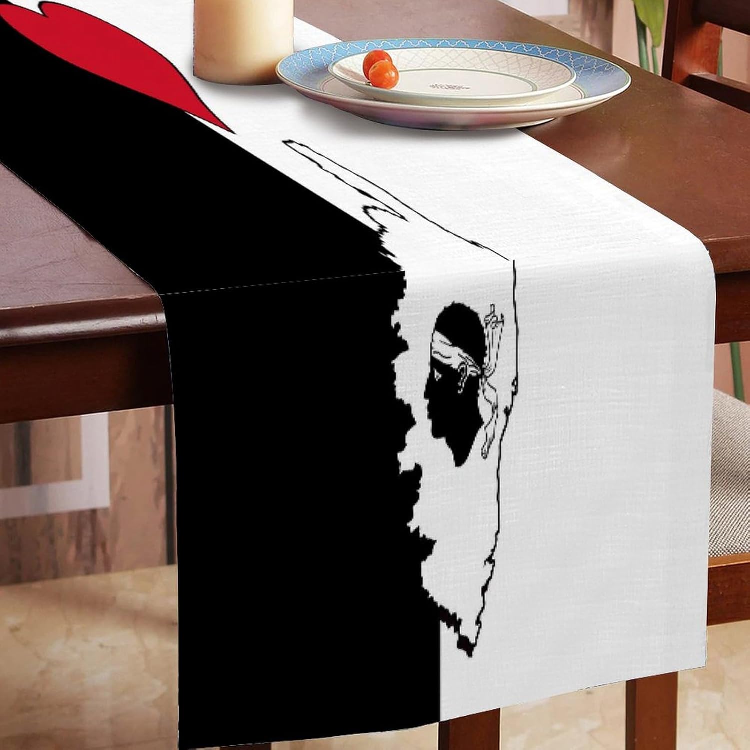 Divertente runner da tavola in stile rustico con scritta "I Love My Country", 45,7 x 198,7 cm, con mappa della bandiera corsica, runner da tavolo moderno per comò, sciarpe e runner per la casa