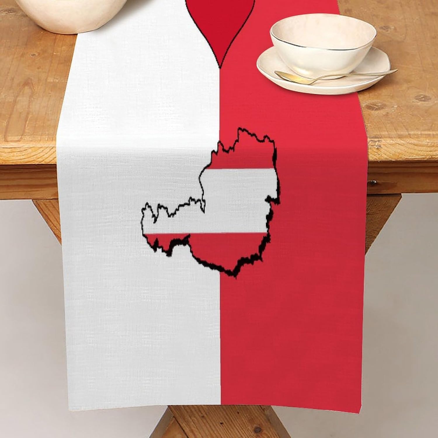 Divertente runner da tavola in stile rustico con scritta "I Love My Country" in stile rustico, 40,6 x 182,8 cm, con bandiera dell'Austria, runner da tavolo moderno per cassettiera, sciarpe e runner