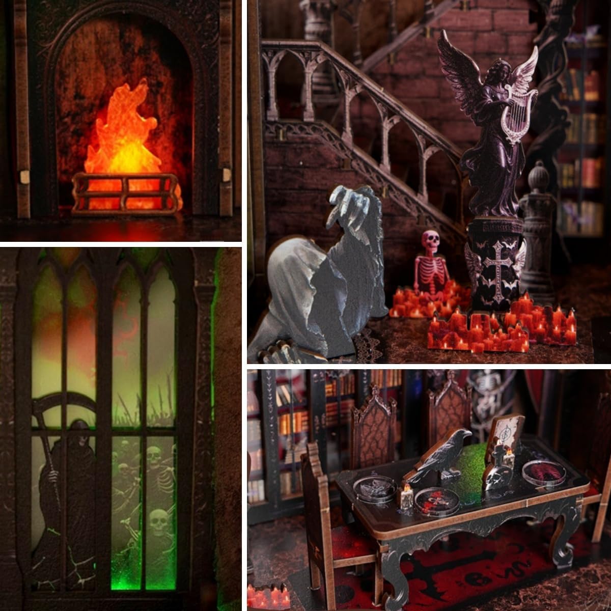 Unica atmosfera horror gotica: questo angolo libro "Dark Family", con il suo profondo stile gotico, crea un castello in miniatura pieno di mistero e orrore. Il design a corpo largo presenta un mondo oscuro più grande e dettagliato. Dettagli ricchi di una scena spettrale: il modello è ricco di dettagli accuratamente progettati, come un lampadario rosso sangue, sculture di scheletri, mobili vintage e ragnatele. Ogni parte è realizzata con cura, immergendoti in un mondo di orrore. Esperienza di costruzione coinvolgente: goditi il divertimento creativo di costruire da zero. Questo modello ti trasporterà in un misterioso mondo in miniatura, facendo risaltare la tua libreria. Una miscela di praticità ed estetica: non è solo una bella opera d'arte, ma anche un fermalibri funzionale. Posizionarlo sullo scaffale aggiunge un tocco artistico unico alla tua collezione di libri, evidenziando il tuo gusto personale. Regalo creativo per adulti: questo modello è un ottimo regalo per gli amanti dell'artigianato o chiunque apprezzi gli stili gotici o horror. È più di un regalo; è un pezzo di unicità e sorpresa che puoi creare con le tue mani.