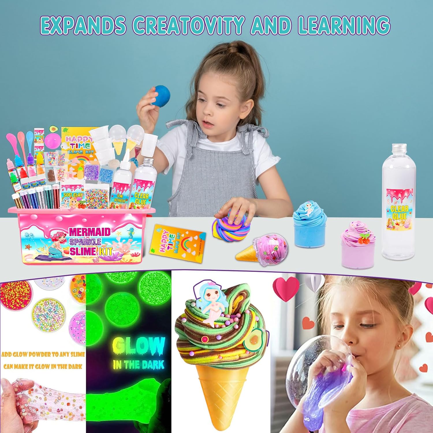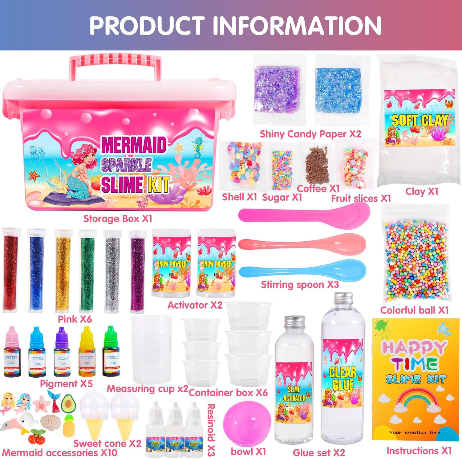 🌸Kit slime da 55 pezzi fai da te per creare il migliore slime per ragazze, ragazzi, tutto ciò di cui hai bisogno in una scatola completa con colla, perline di unicorno, inchiostri,attrezzo, contenitori e molto altro ancora! Inoltre, un attivatore di slime sicuro al 100% e istruzioni complete (lingua italiana non garantita). 🌸Regali fai da te per ragazzi e ragazze, Il set di kit slime fai-da-te ha una varietà di accessori che possono stimolare la creatività, l'abilità pratica, il riconoscimento del colore dei bambini e aiutarli a sviluppare le capacità motorie e le mani per migliorare la coordinazione degli occhi. Lo Slime Kit è perfetto per lasciare che i tuoi bambini siano creativi e fantasiosi come regalo artigianale per bambini. 🌸Kit per la produzione di melma fai da te, Slime per bambini, realizzato con materiali ecologici, non tossici, lavabili e riutilizzabili, usa il kit per la creazione di melma Fai da Te come 🌸i migliori regali per bambini, Se state cercando un regalo giocattolo per bambini dai 3 anni in su (compleanno, Natale, festa, vacanza, ecc.), lo slime fai da te conquisterà il sorriso e l'amore di vostro figlio. Sviluppa l'intelligenza dei bambini, la coordinazione occhio-mano, il riconoscimento dei colori e altre abilità di formazione, gioca con il tuo bambino per ore, rafforza l'interazione tra bambini e genitori. 🌸Kit Slime fai da te, tutto ciò che serve per realizzare le più simpatiche creazioni Slime è incluso in questo kit artigianale. Godetevi un magico momento di slime con il kit Glitter Slime! Diventa super creativo con lo slime preconfezionato aggiungendo perline colorate, coriandoli di paillettes e altri accessori scintillanti!