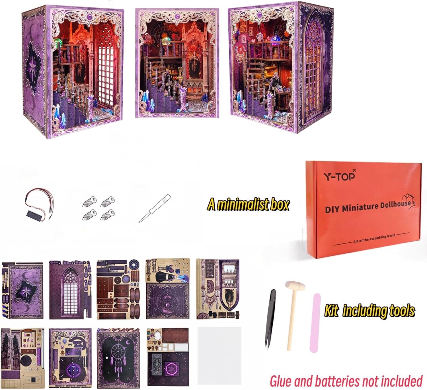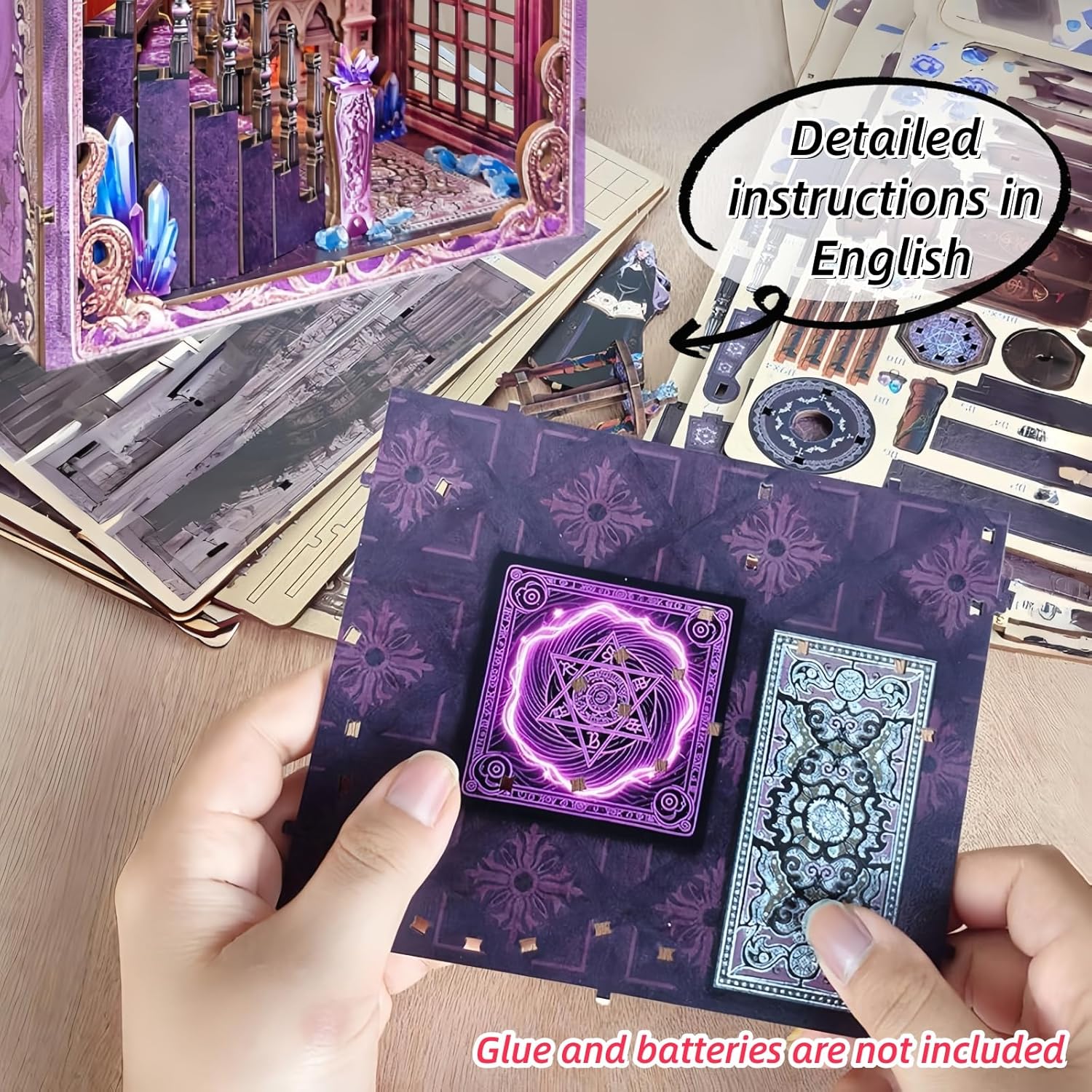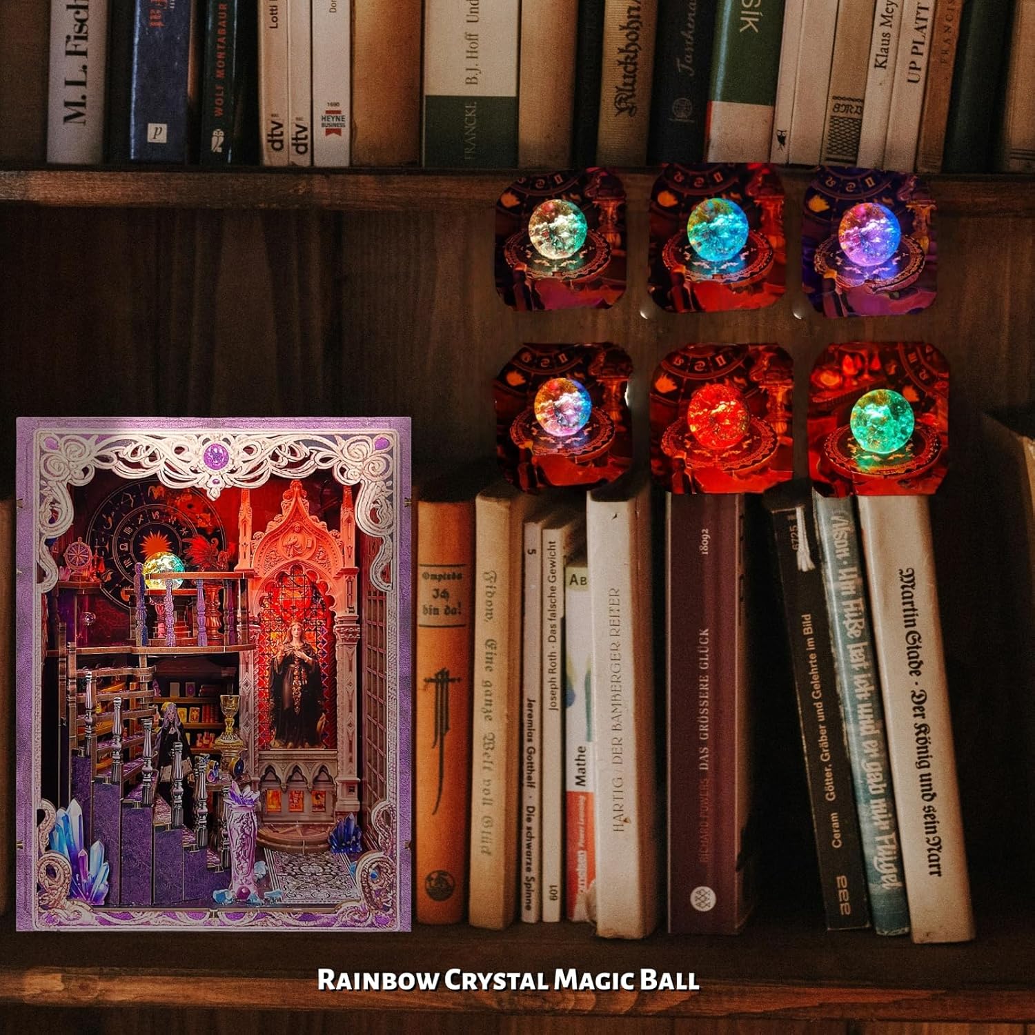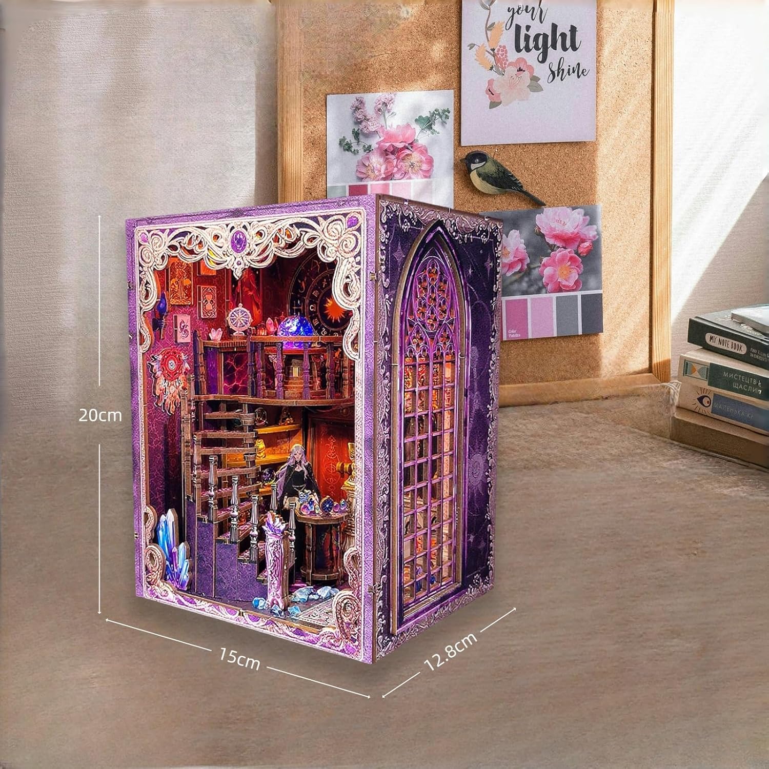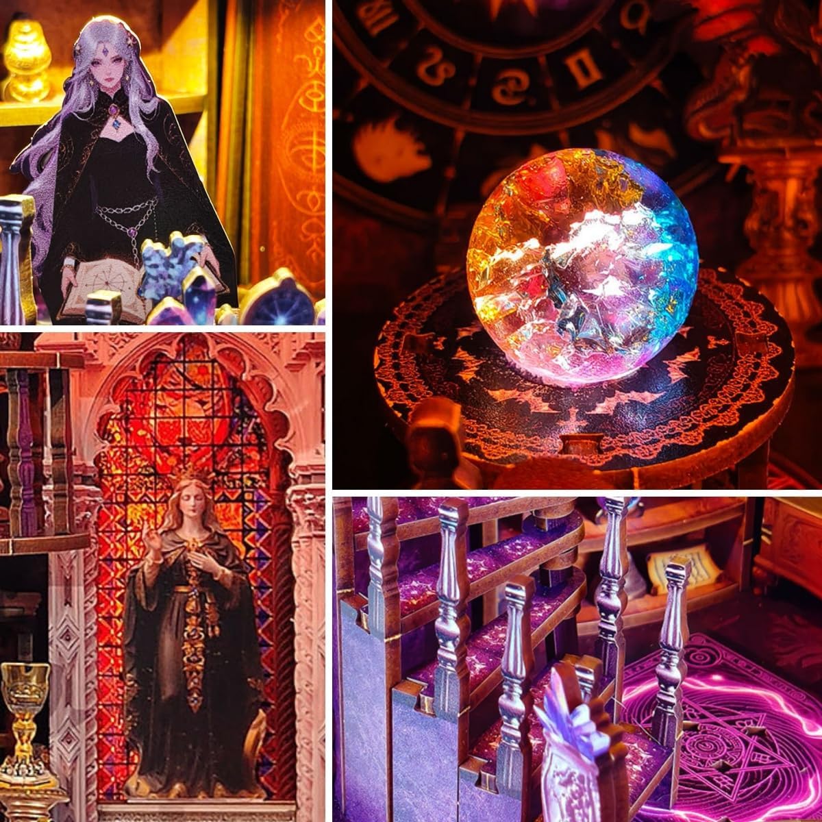 Un misterioso mondo di magia: questo mini angolo libro "Tarot Association", ispirato al laboratorio della Somma Sacerdotessa, crea un mondo in miniatura pieno di magia e mistero. Costruisci il tuo santuario spirituale con le tue mani. Ricchi dettagli di una scena divinazione: il modello è ricco di dettagli squisiti, tra cui una tabella delle costellazioni zodiacali, una scala a chiocciola e una sfera di cristallo magica. Ogni elemento è progettato con cura, portandoti in un fantastico mondo di immaginazione. Sfera di cristallo che cambia colore: l'unica sfera di cristallo che cambia colore aggiunge l'atmosfera mistica della tua creazione, come se potessi intravedere i segreti del futuro. Una miscela di praticità ed estetica: non è solo una bella opera d'arte, ma anche un fermalibri funzionale. Una copertura antipolvere inclusa protegge il tuo lavoro, aggiungendo un tocco unico e misterioso alla tua libreria. Regalo creativo per adulti: questo modello è un ottimo regalo per gli amanti dell'artigianato o chiunque sia interessato all'astrologia o ai temi mistici. È più di un regalo; è un pezzo di unicità e sorpresa che puoi creare con le tue mani.