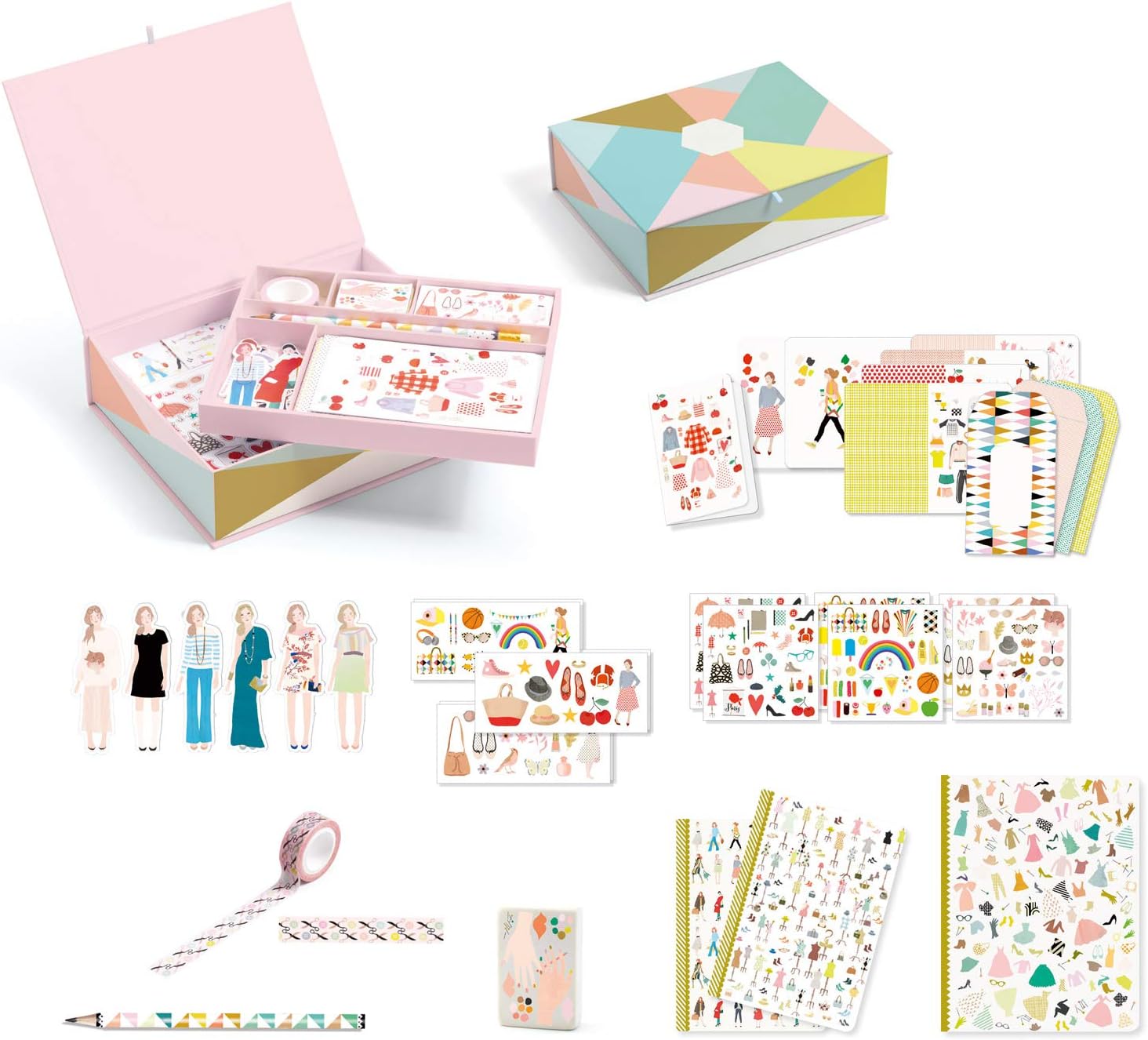 Regalo perfetto per gli appassionati di cancelleria Contiene quaderni di carta, biglietti, buste, segnalibri, adesivi e accessori Il set viene fornito completo di 10 biglietti per appunti, buste, fogli di decalcomania, fogli adesivi, matita, gomma, nastro maksing, quaderno a righe da 6 x 8 pollici e 2, quaderni 4 x 6 e 6 segnalibri; il tutto in scatola incernierata con vassoi per una facile conservazione Realizzati con materiali di altissima qualità, i quaderni hanno pagine a righe pesanti, gli adesivi e le decalcomanie possono aggiungere il messaggio giusto Splendidamente progettato con favolose opere d'arte, questo set ha tutto il necessario per presonalizzare perfettamente qualsiasi messaggio che puoi inviare; lascia che la tua personalità risplenda attraverso Nome del marchio: Djeco