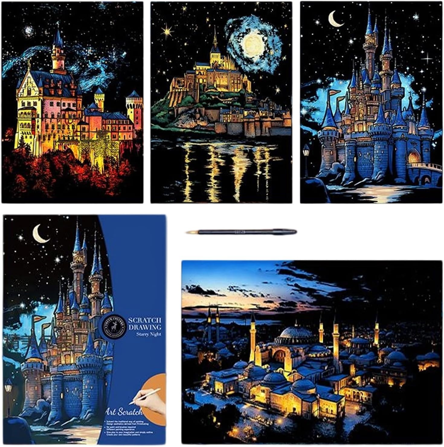 "Pittura" con glitter: staccare la carta fustellata sulla lavagna per esporre lo strato adesivo e versare e spazzolare i 6 tubi glitter. A tema principessa: con una sensazione di vernice per numero, crea le 4 principesse parzialmente illustrate con i 6 colori di glitter scintillanti, lavorano all'interno della scatola per mantenere le cose pulite e contenute. Imparare divertendosi - Sviluppa abilità motorie, creatività, immaginazione, design, composizione dei colori e narrazione; viene fornito in una scatola a forma di libro per tenere tutto insieme. Contenuto: 4 carte stampate e pre-incollate (20 x 20 cm), 6 tubi di glitter (giallo, blu, viola, rosa fluorescente, verde, fucsia), 1 strumento di plastica, 1 pennello e 1 libretto con spiegazioni passo-passo a colori. Consigliato per bambini dai 7 ai 12 anni