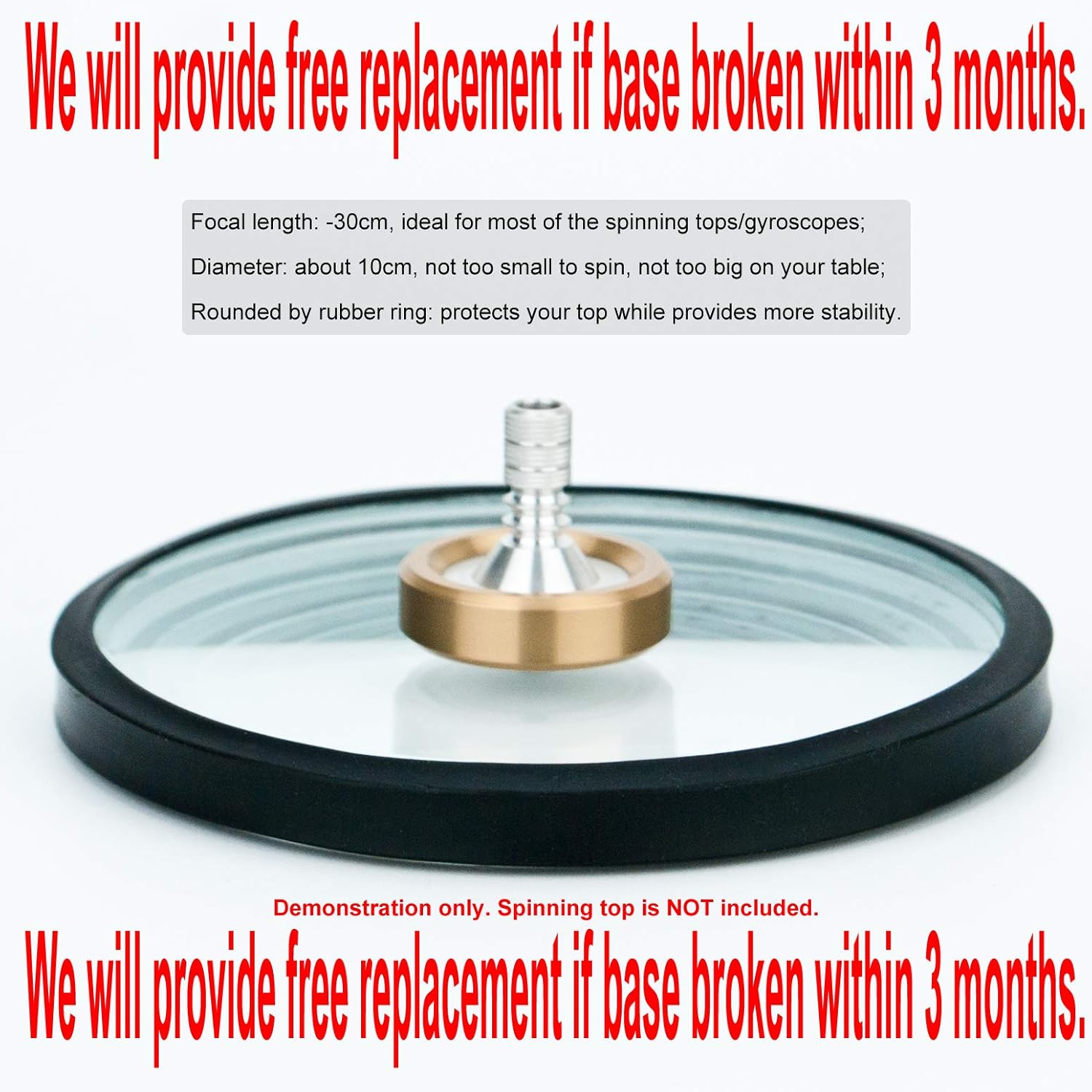 Non preoccuparti: forniamo sostituzione gratuita se la base si rompe entro 3 mesi. Tempo di rotazione più lungo: la superficie dura e liscia prolunga notevolmente i tempi di centrifuga; la superficie concava mantiene la trottola alla base. FACILE DA USARE: doppio concavo con distanze focali ideali di -30 cm, adatto per la maggior parte dei trombi e giroscopi; il diametro di 10 cm è abbastanza grande per girare facilmente. Dopo la pratica, puoi facilmente prolungare il tempo medio di rotazione su questa base. Materiale corretto: realizzato in vetro ottico K9 lucido che è duro, morbido e pesante; il bordo e il bordo sono rivestiti in silicone che può aiutare a mantenere la base in posizione durante lunghi giri ed evitare che i tuoi amati coperchi si graffi nel frattempo. All'inizio di una svolta, la trottola oscillerà in una certa orbita, il nostro prodotto può ridurre al minimo questa perdita di energia. PER GIOCATORI SERI: Questa base è progettata per persone serie nei trompi. Con l'aiuto di questa base, puoi ottenere un'esperienza di gioco molto migliore. Aiuta la trottola a entrare in uno stato stabile e silenzioso più velocemente: la sua trottola sarà "congelata" alla base per un po '. Più divertimento! Se il tuo obiettivo è 3 minuti, questa base non fa per te: se è 5+ o 8+ o anche 10+ minuti (in questo caso anche la trottola e l'abilità contano), puoi provare.