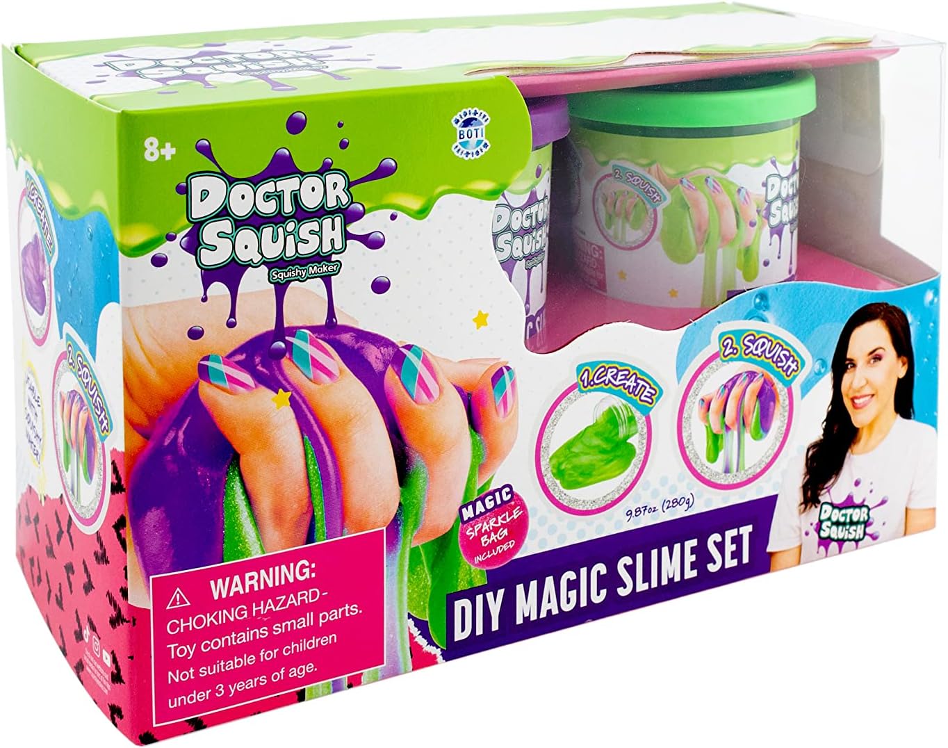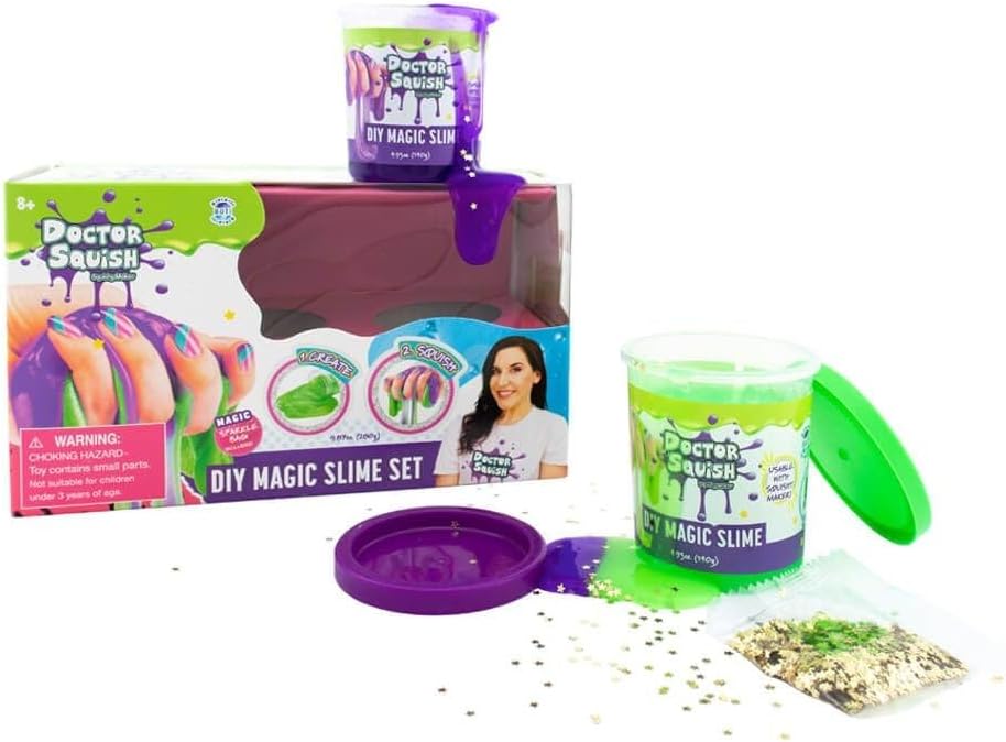 Doctor Squish Con oltre un miliardi di richiamate, è l'artista più famosa su YouTube, TikTok e Instagram Produce anche una fantastica melma fai da te e dà fantastiche recensioni su giocattoli morbidi e fangosi Forse sei il prossimo Doctor Squish? Il Magic Slime fai da te è utilizzabile con lo Squishy Maker. Aggiungi glitter per aggiungere ancora più brillantezza al tuo slime Contenuto della confezione doppia: 1 slime verde da 140 g, 1 slime viola da 140 g, 1 glitter.