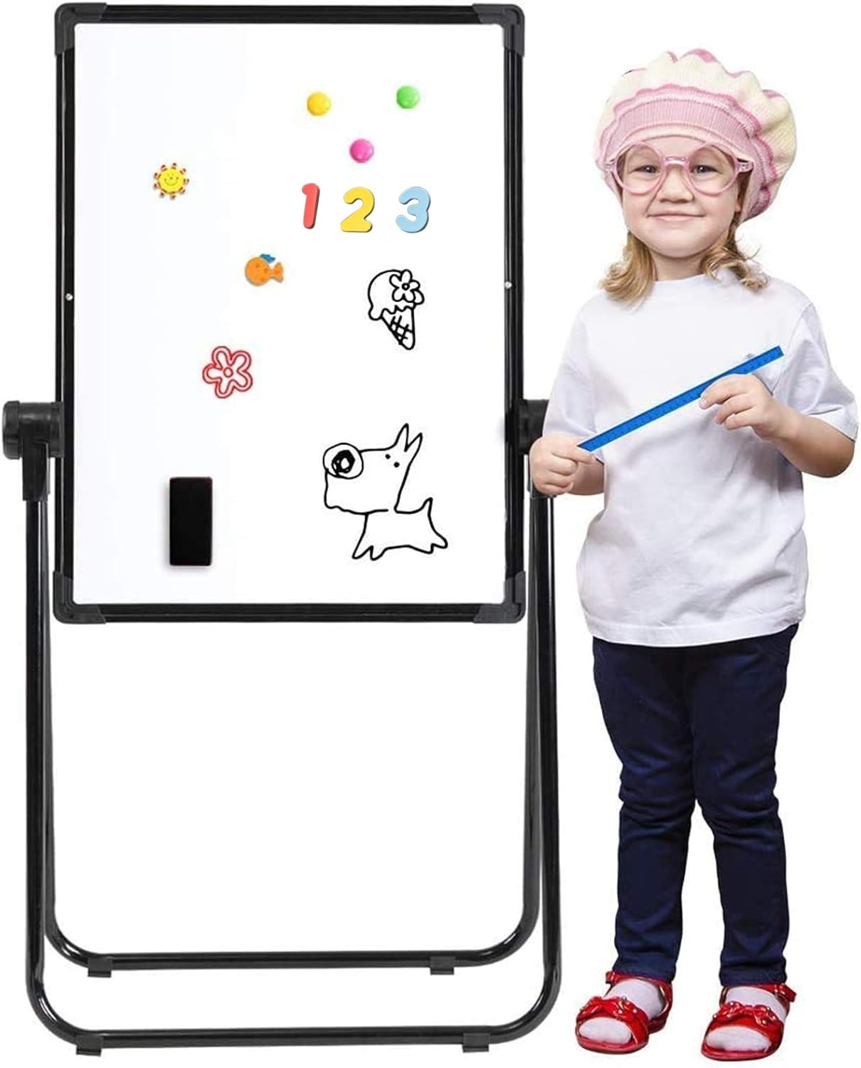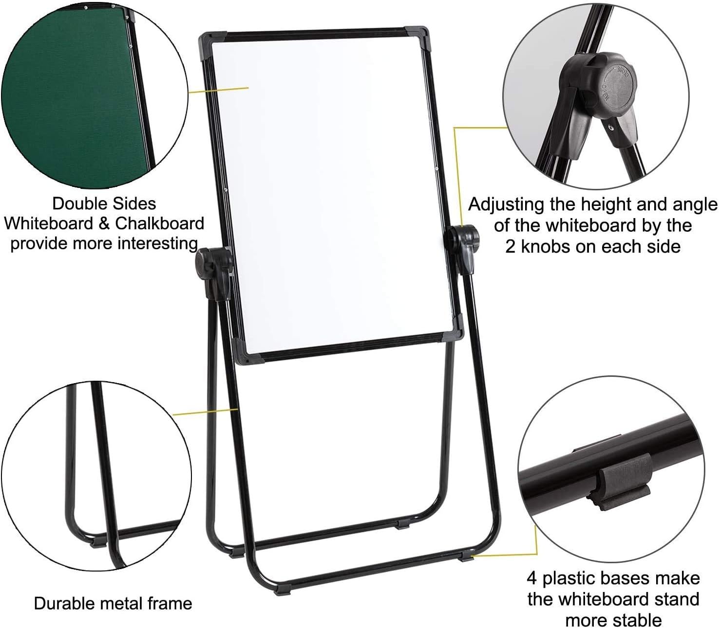 Contenuto: la lavagna per bambini viene fornita con 3 pennarelli e 12 gessetti, 68 lettere magnetiche e un set di lettere matematiche, 6 magneti rotondi, 4 magneti per cartoni animati, 2 gomme da cancellare, 1 righello magnetico e 1 custodia. Nota: rimuovere la pellicola di plastica dalla tavola prima dell'uso. Struttura stabile: la tavola è circondata da un telaio in lega di alluminio e la staffa a U è realizzata in tubo di acciaio di alta qualità, per un uso durevole. 4 cuscinetti antiscivolo sotto la tavola migliorano la stabilità. Design pieghevole per riporlo e trasportarlo facilmente. Doppio lato: progettato per bambini di età superiore a 3 anni. Un lato è una lavagna, l'altro è una lavagna. La superficie liscia consente di scrivere in modo chiaro e di cancellare facilmente senza lasciare segni, resistente alle macchie. Lavagna solo per gessetti comuni, non utilizzare gesso liquido. Regolabile e reversibile: altezza regolabile da 66 a 110 cm e rotazione a 360° ruotando le manopole a sinistra e a destra. Che tu sia seduto o in piedi, bambino o adulto, troverai l'altezza e l'angolazione più adatta a te. Strumenti interessanti: questo cavalletto per bambini è ideale per graffiti, disegni e scritte. Aiuta a sviluppare l'immaginazione, le abilità pratiche e la coordinazione occhio-mano. Apprendimento divertente e interazione educativa con genitori e amici