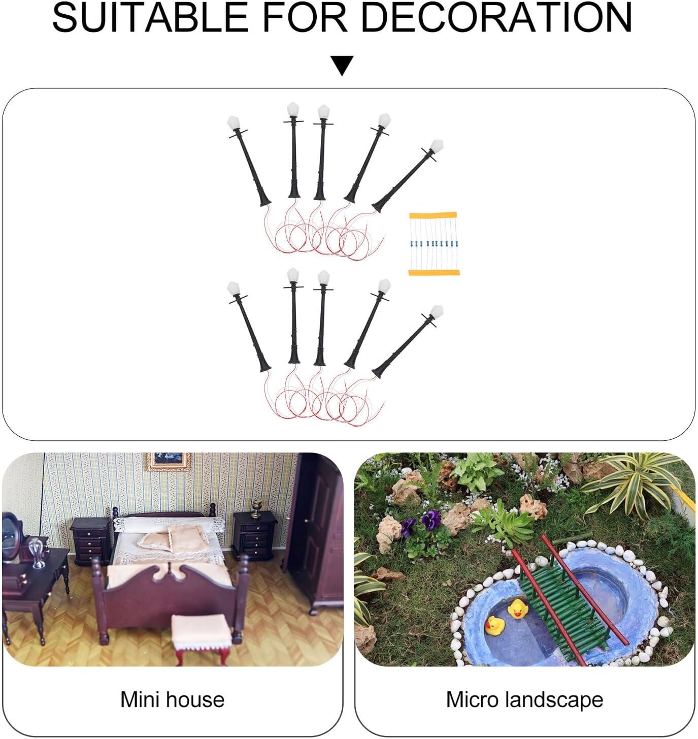 Modello di lampada: il modello di lampione è dotato di fondo piatto, che garantisce la stabilità sul tavolo e sul pavimento, modello di lampione Lampada da casa delle bambole: posiziona il modello del lampione su una mini casa per ottenere dettagli più realistici e ottenere un'impressione visiva diversa, decorazioni per lampade da tavolo di sabbia Lampione ferroviario modello: lavorazione eccezionale, design ragionevole, stabile e pratico, ti regalerà un micro paesaggio decorativo Mini decorazioni per lampioni: il modello di lampione è realizzato in materiale molto delicato e resistente per la decorazione, mini lampada decorativa Piccola luce: adatta per mini case e decorazioni per tavoli di sabbia, ottima decorazione per la tua mini casa, creando scene di vita colorate, decorazione per mini case