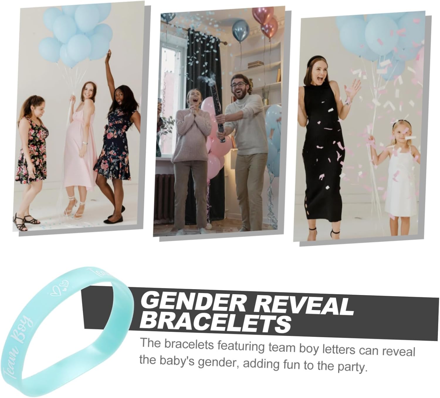Perfetto per le feste di rivelazione del sesso: rendi la tua festa di rivelazione del sesso indimenticabile con questi braccialetti per rivelazione del sesso, braccialetti di squadra, braccialetti per ragazzi Divertimento interattivo per le feste: coinvolgi tutti nella rivelazione del sesso del nascituro con questi braccialetti interattivi in silicone, braccialetti da nuoto per ragazzi, braccialetti per ragazzi Misura regolabile: il cinturino in silicone è elastico, adatto a persone di diverse fasce d'età, braccialetto per neonati, forniture per feste di rivelazione del Materiale in silicone: il braccialetto è realizzato in silicone, e confortevole per un uso prolungato, braccialetto per ragazzi, braccialetti per shower Leggeri e : questi braccialetti sono leggeri e facili da trasportare, il che li rende perfetti per qualsiasi celebrazione, braccialetti per eventi, braccialetti per eventi