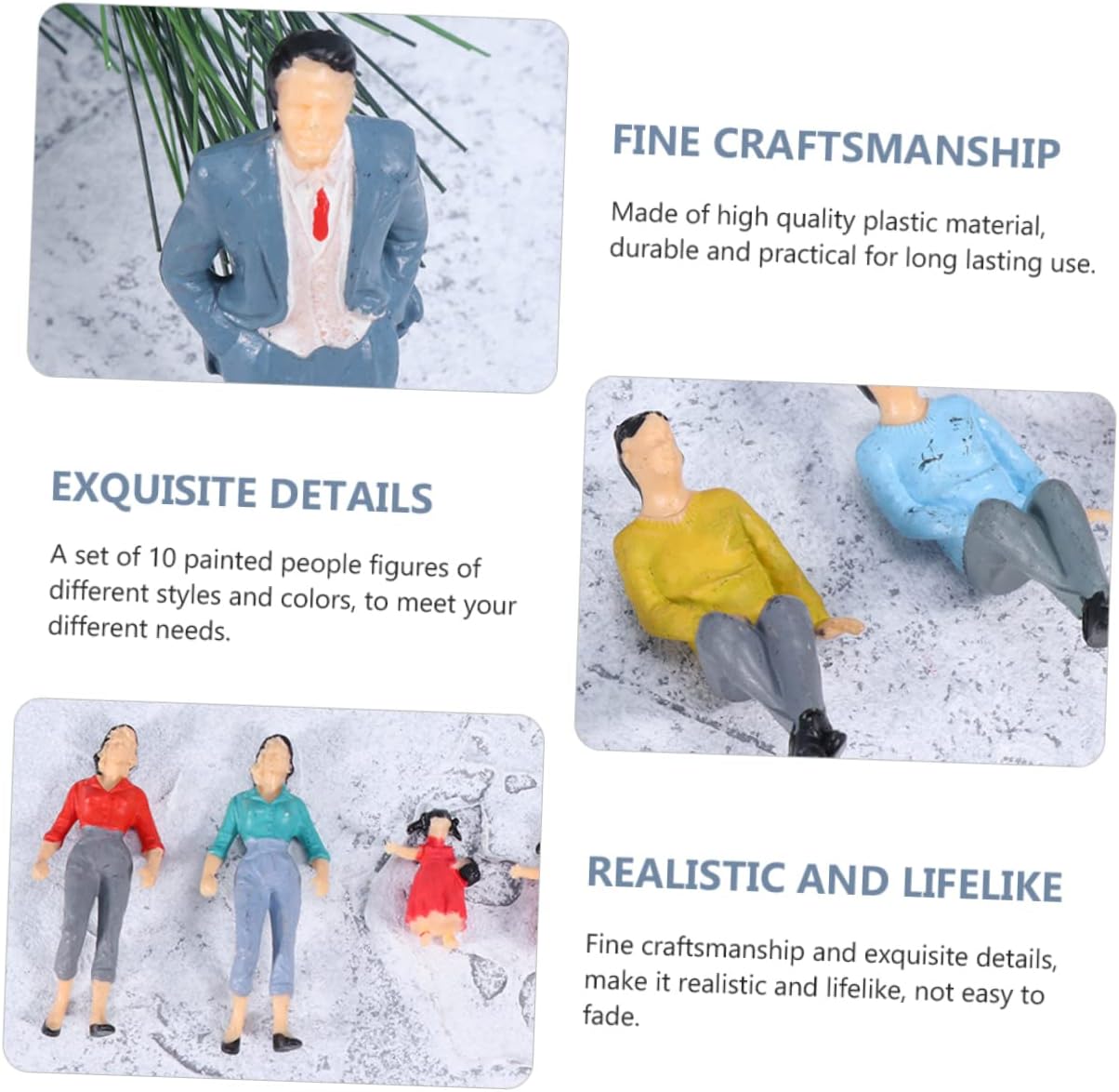 Persone in miniatura: per la creazione modellini , la creazione scene stazioni ferroviarie, paesaggio case , edifici architettonici, ecc., in miniatura Statuetta in miniatura: ampiamente utilizzata nei plastici ferroviari, negli edifici da costruzione, nei progetti scolastici, negli scena per stazioni ferroviarie, nei piccoli per case , ecc., Mini figure umane: leggere e compatte, facili da riporre e utilizzare, adatte per professionale e personale, statuette raffinate Figure layout del - realizzate in materiale , resistenti e pratiche per un duraturo, modello realistico Modello scena in miniatura: a ridimensionare gli edifici esprimere la scena cui bisogno e che desideri, tiny people