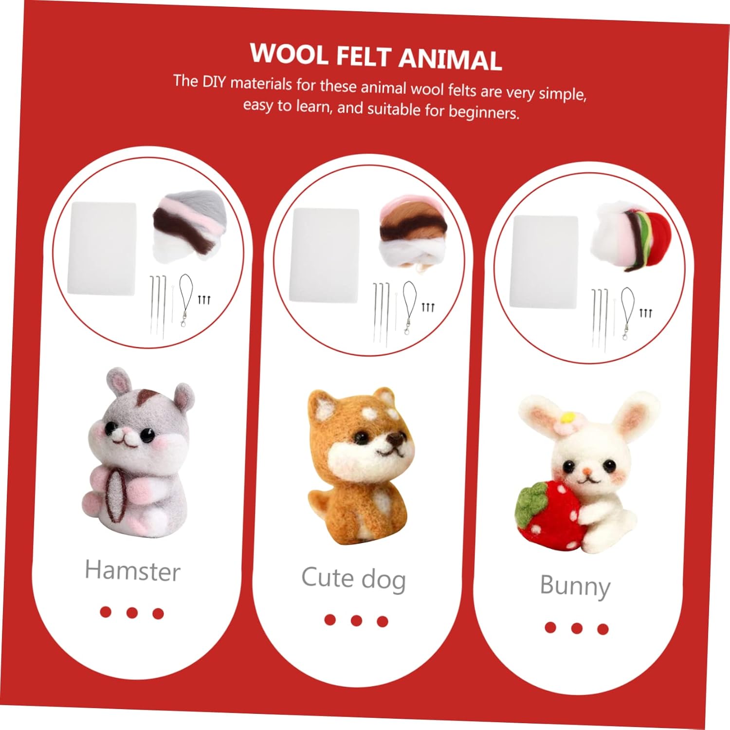 Animale in feltro: inoltre, è anche un modo per passare del tempo con i tuoi bambini, bambola criceto Bambola di animali adorabili: l'adorabile bambola di animali realizzata può essere un prezioso per i tuoi bambini, forniture per infeltrimento per il fai da te Bambola in feltro di lana: aiuta a rendere l'infeltrimento più comodo e interessante, porta più divertimento e gioia, animale in feltro di lana Bambola di feltro a forma di animale: adorabile design a forma di animale, sembra così adorabile, crea più divertimento, bambola di coniglio Animale da infeltrire: crea il tuo animale in feltro con questo kit per infeltrimento ad ago! include criceto, coniglio e cane, kit per lavori di infeltrimento ad ago.