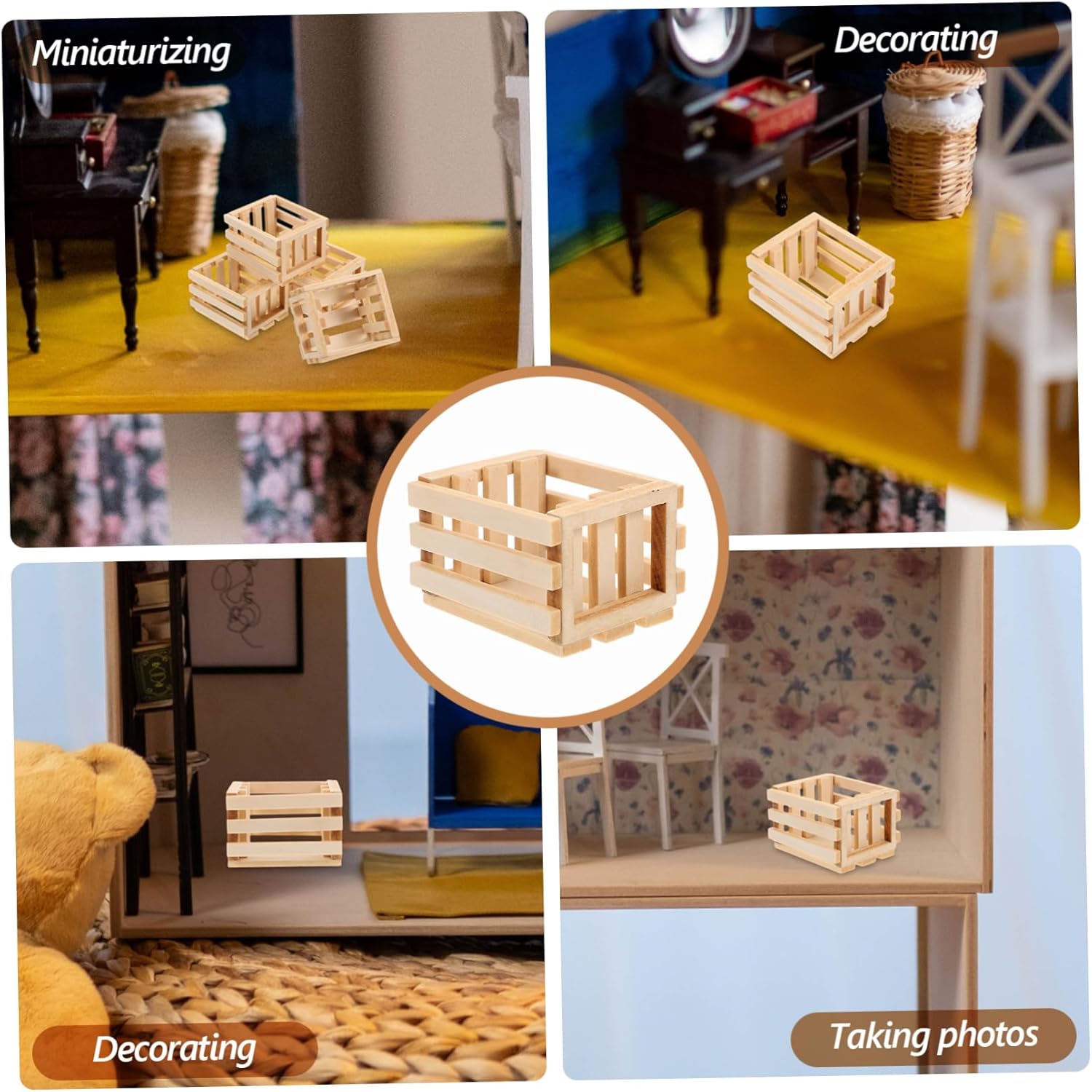 Costruzione robusta: realizzate in legno, queste casse offrono durata e protezione per i tuoi modelli delicati, casse di stoccaggio in miniatura, cestini per case delle bambole Uso versatile: ideale per riporre e mettere in mostra oggetti in miniatura, esaltando il fascino dei tuoi diorami, ornamenti per case delle bambole, ornamenti per cestini della spesa in miniatura Artigianato artistico: ogni cassa è un'opera d'arte, con una lavorazione artigianale dettagliata che aggiunge alle tue esposizioni in miniatura, cesti di frutta in miniatura, cestini artigianali in miniatura Dimensioni convenienti: le loro dimensioni compatte li rendono spaziosi, sia in ufficio che in ufficio, organizer per scatole in miniatura, casse di legno per l'artigianato Facili da posizionare: le loro dimensioni ridotte e il design leggero li rendono facili da spostare e posizionare in qualsiasi , decorazioni per case delle bambole, accessori per case delle bambole in miniatura