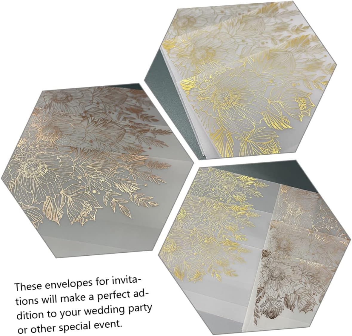 Busta per invito: il design semitrasparente consente di mostrare la bellezza e il fascino del tuo biglietto d'invito, buste per biglietti di nozze Buste decorative per inviti: le nostre buste sono realizzate in carta, abbastanza resistenti, non sbiadiscono facilmente, hanno un aspetto molto elegante e bello, buste per biglietti Buste per inviti: artigianato eccellente, curato in ogni dettaglio per conferire loro un aspetto accattivante ed elegante, busta da matrimonio Inviti di nozze con buste: buste squisite con motivo floreale, portano più romanticismo, gioia e divertimento, buste per biglietti Buste per inviti di compleanno: dimensioni adeguate, perfette per contenere un biglietto d'invito, un'elegante confezione per il tuo biglietto d'invito, buste per inviti nuziali