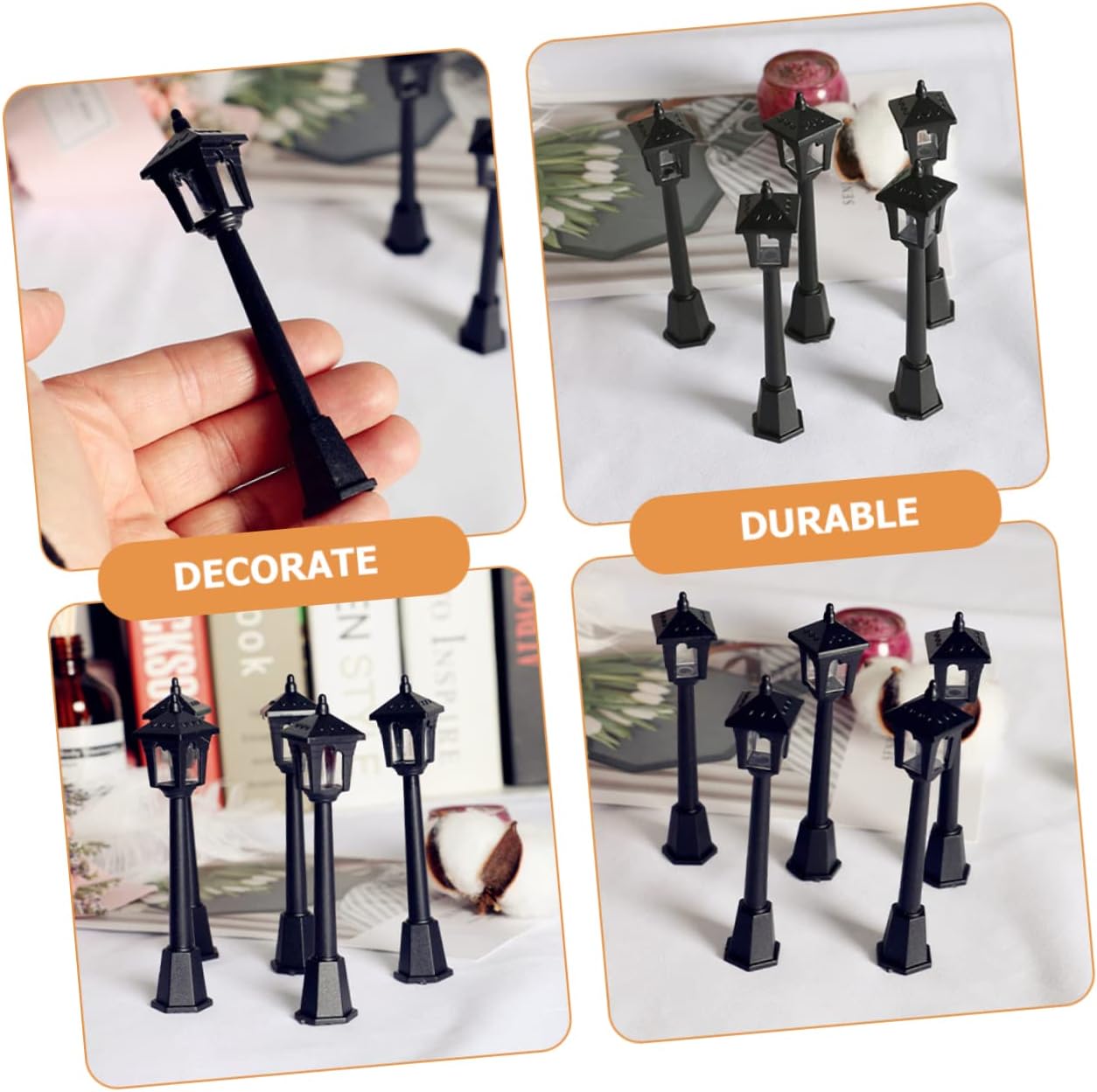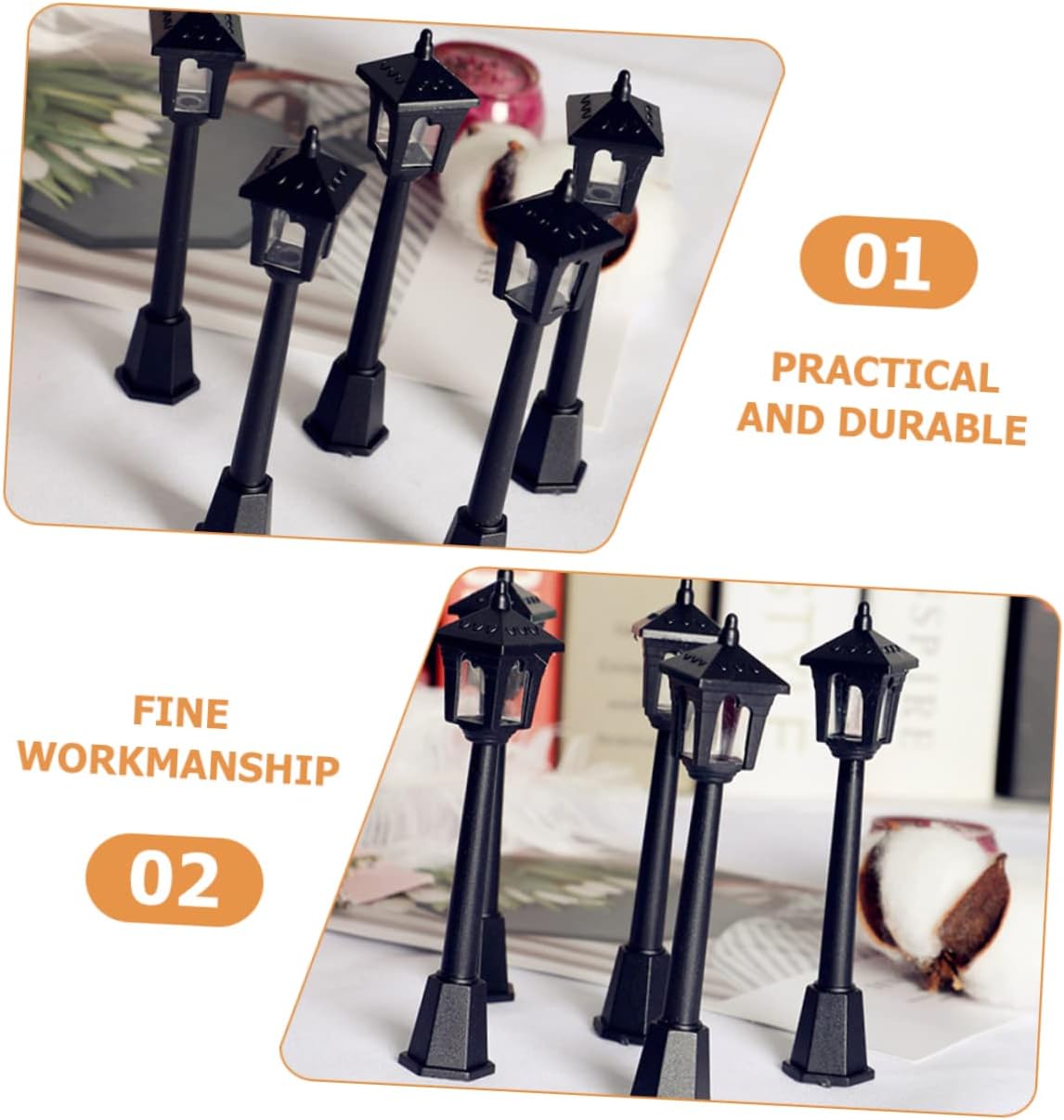 Mini lampada luminosa: presenta dimensioni compatte per l'uso nella tua mini casa, aggiunge calore e atmosfera alla vita quotidiana, piccola decorazione per lampioni stradali Piccola luce: questo modello di lampione può essere l'ornamento decorativo per il modello di interni della tua mini casa, decorazione luminosa per micro paesaggi Mini modello di lampioni stradali: invialo ai , i lo adoreranno e potranno usarlo per decorare la loro casa giocattolo, lampione in miniatura Modello di lampione in miniatura: l'ornamento del modello di lampione è realizzato in materiale sicuro e affidabile, pratico da usare, lampioni in miniatura per case delle bambole Lampioni in miniatura: questo modello di lampione è un fantastico per i tuoi amici o familiari che amano i mini mestieri, le mini luci decorative