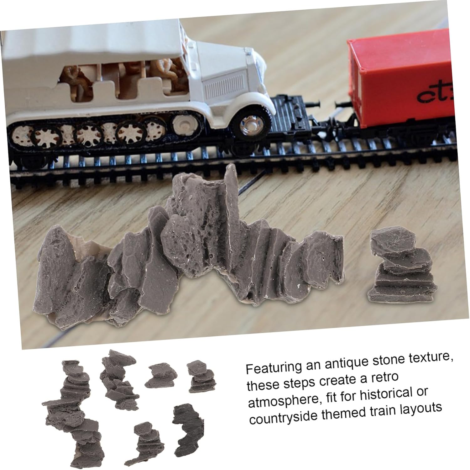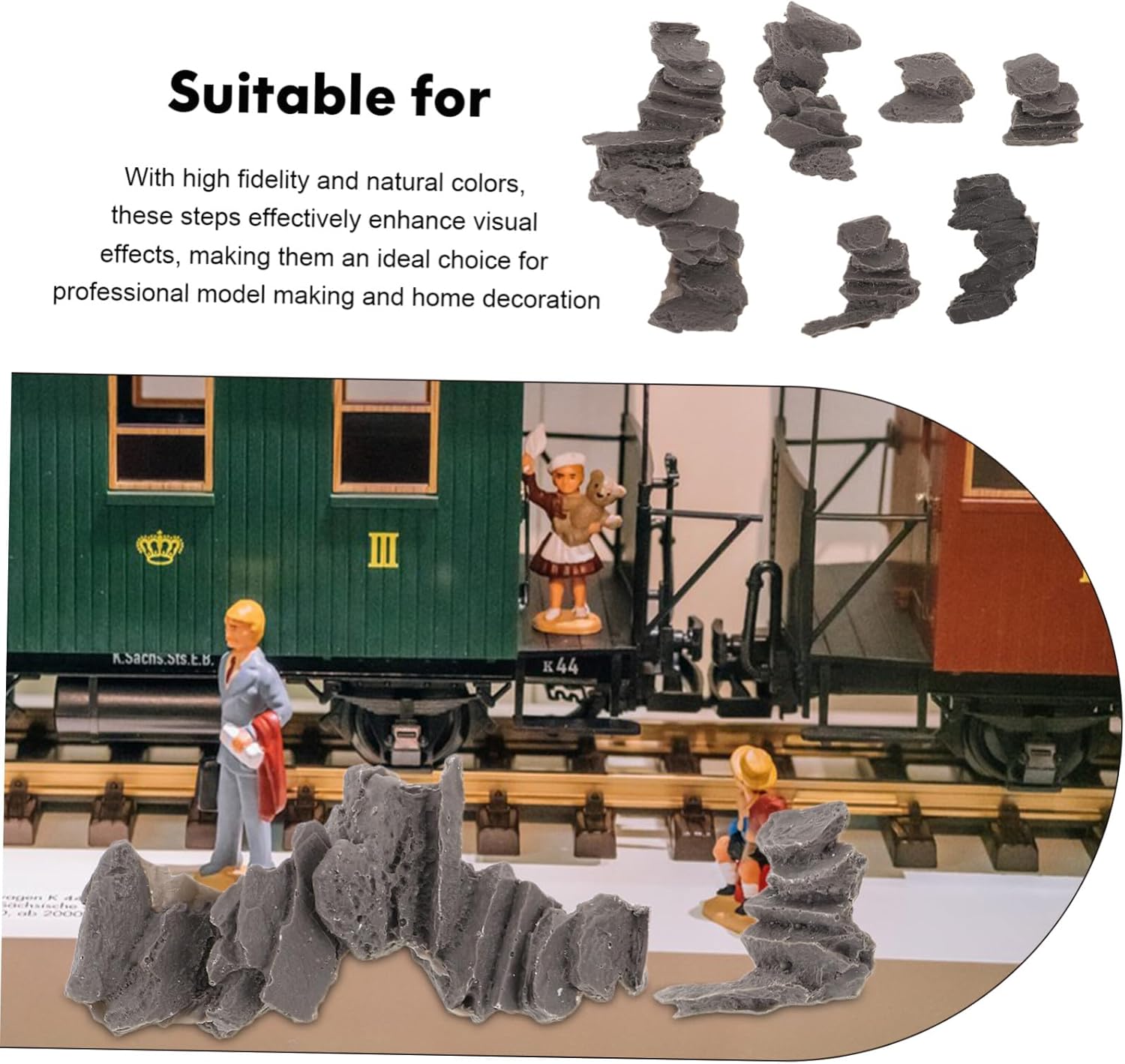Finitura antica: i gradini presentano finitura che crea un'atmosfera che si abbina ai diorami dei treni a storico o , pietre del sentiero per la passerella, agli dei ponti in miniatura Vestibilità versatile: dimensionati per adattarsi a varietà modelli diorama, questi gradini sono facili da installare, offrendo un'opzione conveniente per progetti fai da te, scale in in miniatura, gradini per case in miniatura Estetica retrò: caratterizzati da un look, questi gradini aggiungono un fascino retrò, adatti a plastici ferroviari a storico o , scale in miniatura per diorami, accessori per delle fate Aspetto vintage: i gradini presentano texture che crea un'atmosfera adatta a diorami treni a storico o , accessori per decorazioni case delle bambole, accessori per case delle bambole in miniatura Facile installazione: i gradini sono dimensionati per adattarsi a varietà modelli diorama, rendendoli facili da installare e adatti a progetti fai da te, paesaggistici in muschio, gradini in pietra artificiale