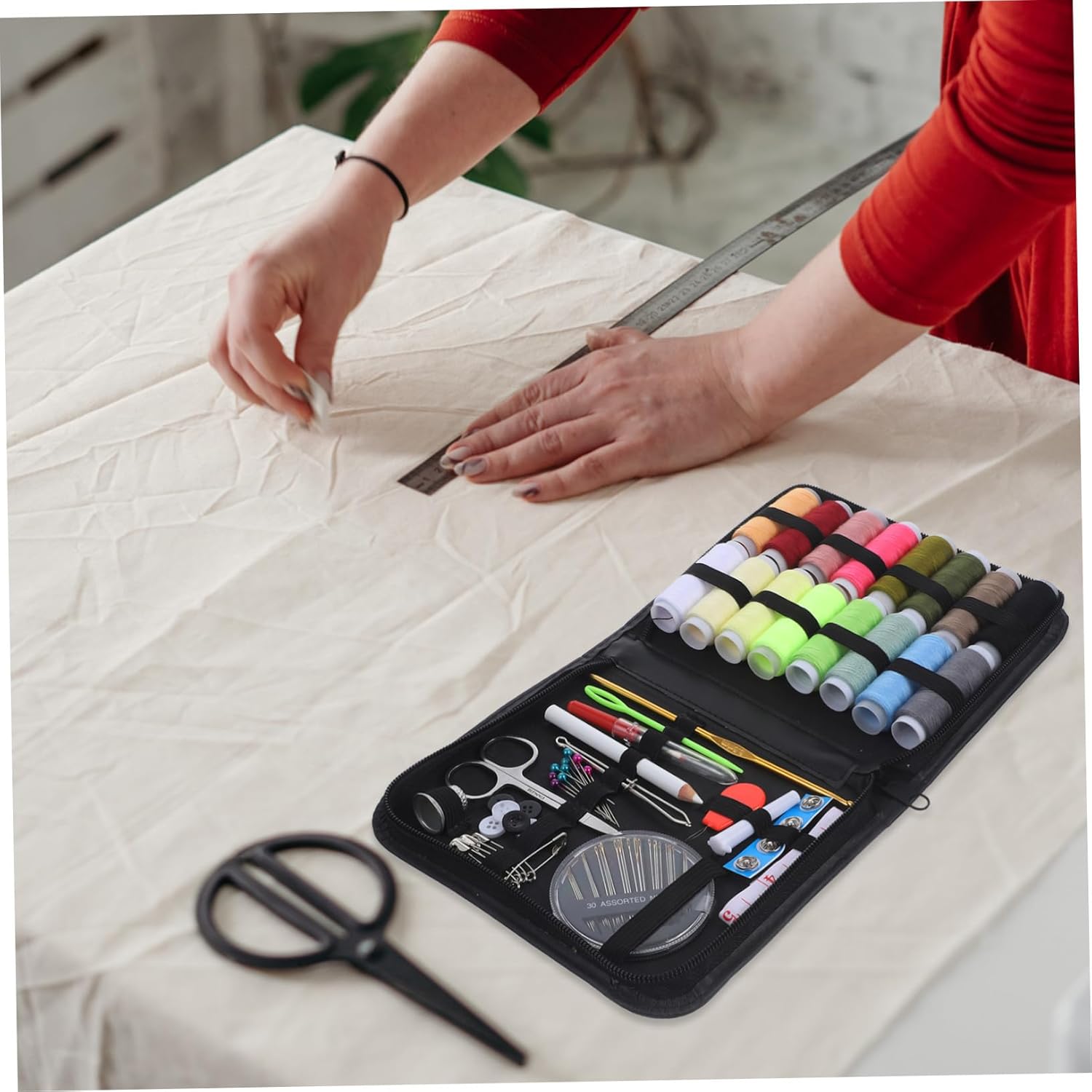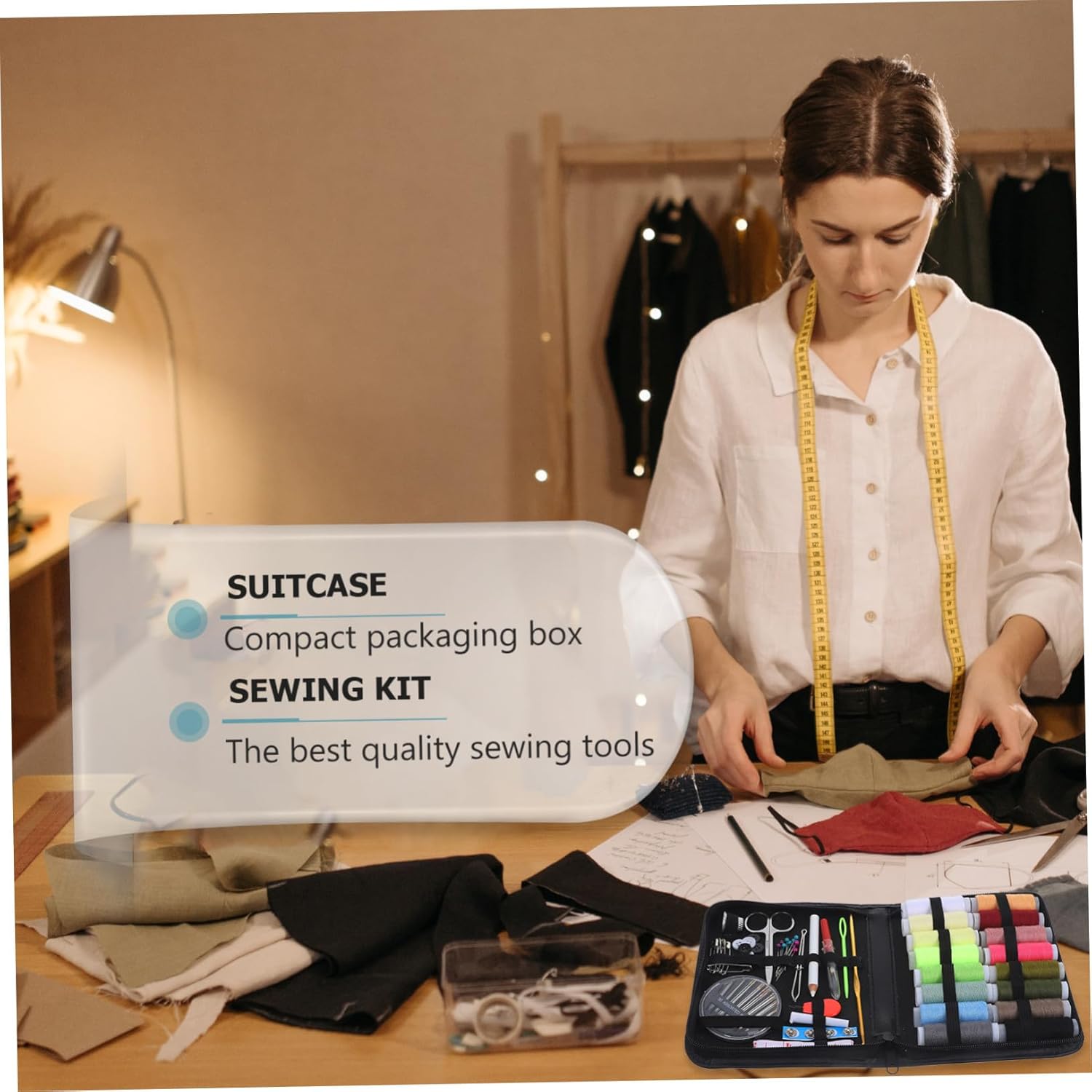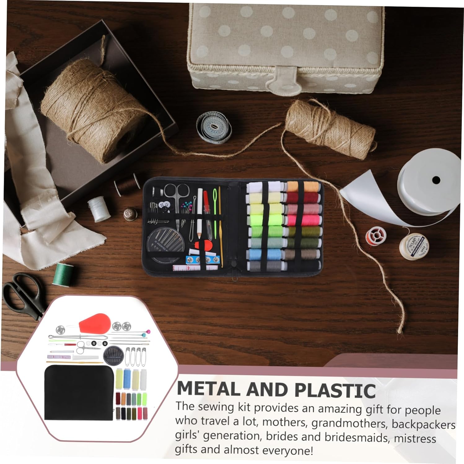 Accessori per kit da cucito: questo kit da cucito contiene quasi tutti i tipi di nozioni di cucito essenziali e di migliore qualità (strumenti da cucito) con una custodia compatta e organizzata, troverai tutto ciò di cui hai bisogno all'interno del kit per i tuoi lavori di cucito, ottimo per riparare uno strappo o qualche riparazione, emergenza, kit da cucito portatile Dimensioni della confezione: 169x108x2 cm / 67x43x08 pollici, kit da cucito per la casa, kit da cucito portatile Accessori da cucito: confezione conveniente da 79 pezzi premium per cucire, sicuramente un accessorio fantastico per tutti i tuoi amici e parenti, prendilo come un regalo, sicuramente lo adoreranno e sarà molto apprezzato con il tuo kit da cucito portatile Materiale: metallo e plastica, kit da cucito portatile, accessori per kit da cucito Kit da cucito: ben organizzato con tutti gli accessori da cucito in una custodia compatta, questo kit da cucito non occuperà mai molto spazio nel tuo bagaglio, ben compatto rende più facile ottenere e riporre tutto il necessario per cucire, kit da cucito portatile