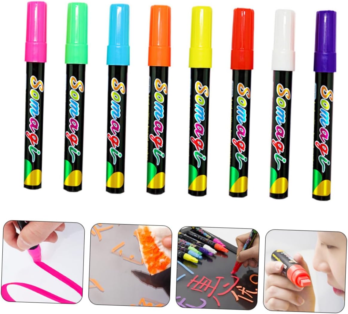 Evidenziatori colorati: adatti alla maggior parte delle superfici, come vetro, , lavagna , lavagna e altro, per lavagna Questi sono realizzati con , che possono essere utilizzati a lungo, per Per : il colore speciale non bloccherà la lettera coperta dall'inchiostro liquido, per lavagna A : sono piccoli e portatili, facili da e riporre, non occupano troppo spazio, per pittura A per lavagna: usati come penne per , gessetti liquidi, e via, per