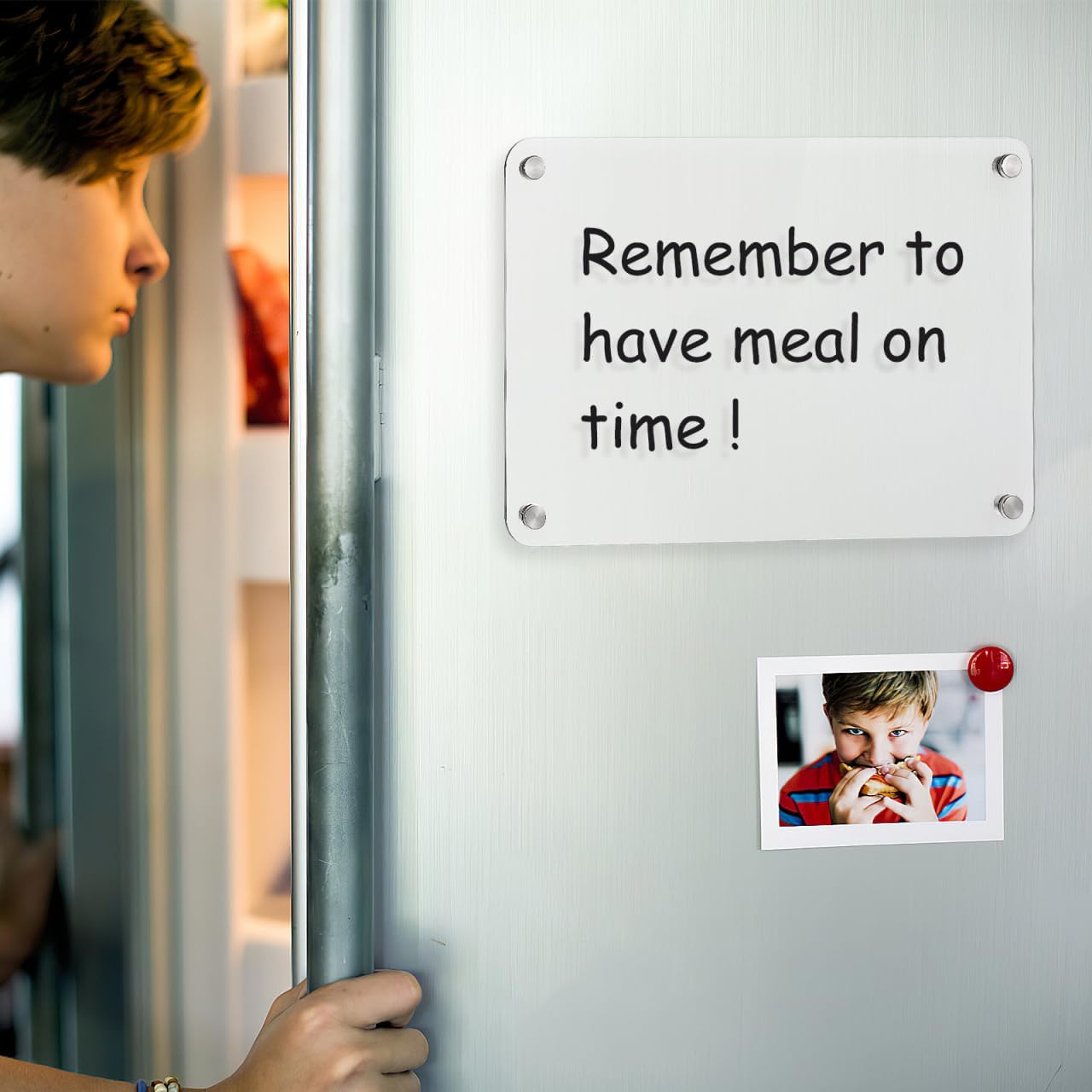 Compatta e salvaspazio: piccola lavagna cancellabile a secco (30 x 20 x 0,5 cm) si adatta a frigoriferi, armadietti o scrivanie senza ingombro. Supporto: rimane saldamente su superfici metalliche come frigoriferi, lavagne bianche o schedari, senza o scorrevoli. Superficie di scrittura liscia: l'acrilico trasparente consente un facile utilizzo del pennarello cancellabile a secco e si pulisce senza fantasma. Multiuso e – Materiale acrilico leggero ma robusto resiste alle crepe; per cucina, ufficio, dormitorio o camera dei bambini. Questa bacheca magnetica può organizzare il tuo programma in modo efficiente nella tua vita frenetica.