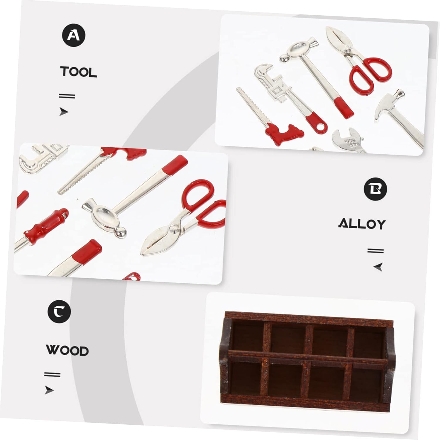 Armadietto per attrezzi in miniatura: perfettamente integrato in tutti i mobili in miniatura e mini decorazioni per la casa. Mini strumenti riparati: puramente fatti a mano, squisito artigianato. Giocattoli all'aperto: usati per e fotografia dettagliata. Accessorio in miniatura: una decorazione domestica per il soggiorno o la camera letto. Mini accessorio: utilizzato per fotografie realistiche e dettagliate.