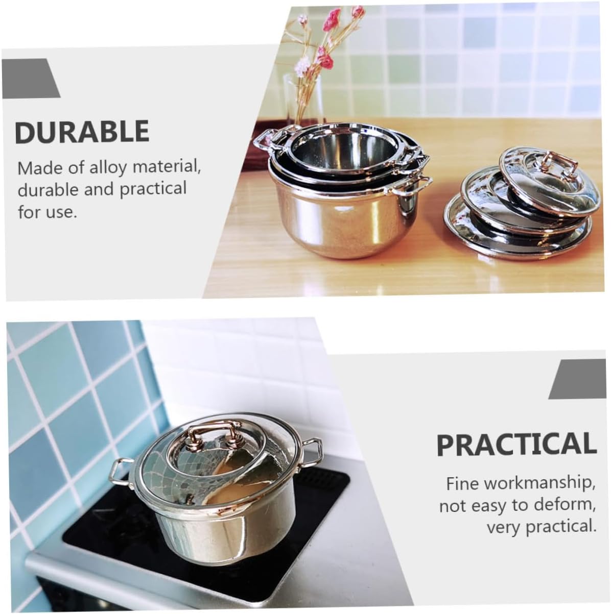 Pentola imitazione - Questa mini pentola può essere utilizzata come decorazione domestica, giocattolo per bambini, modello mini pentola, ecc., come per la cucina giocattolo Pentola per cucina giocattolo - ampia gamma di applicazioni, facile da combinare con altre decorazioni, decorative e creative, come se si utilizzassero elettrodomestici da cucina Utensile da cucina giocattolo - design di pregevole fattura e lavorazione eccellente, il design unico lo rende più leggero e compatto, pentole da cucina giocattolo Giocattolo da cucina giocattolo - È molto decorativo e si abbina alle altre decorazioni domestiche, Cucina gioco di ruolo Soup Pot - Realizzato in materiale di alta qualità, resistente all'usura e facile da usare, gioca a casa