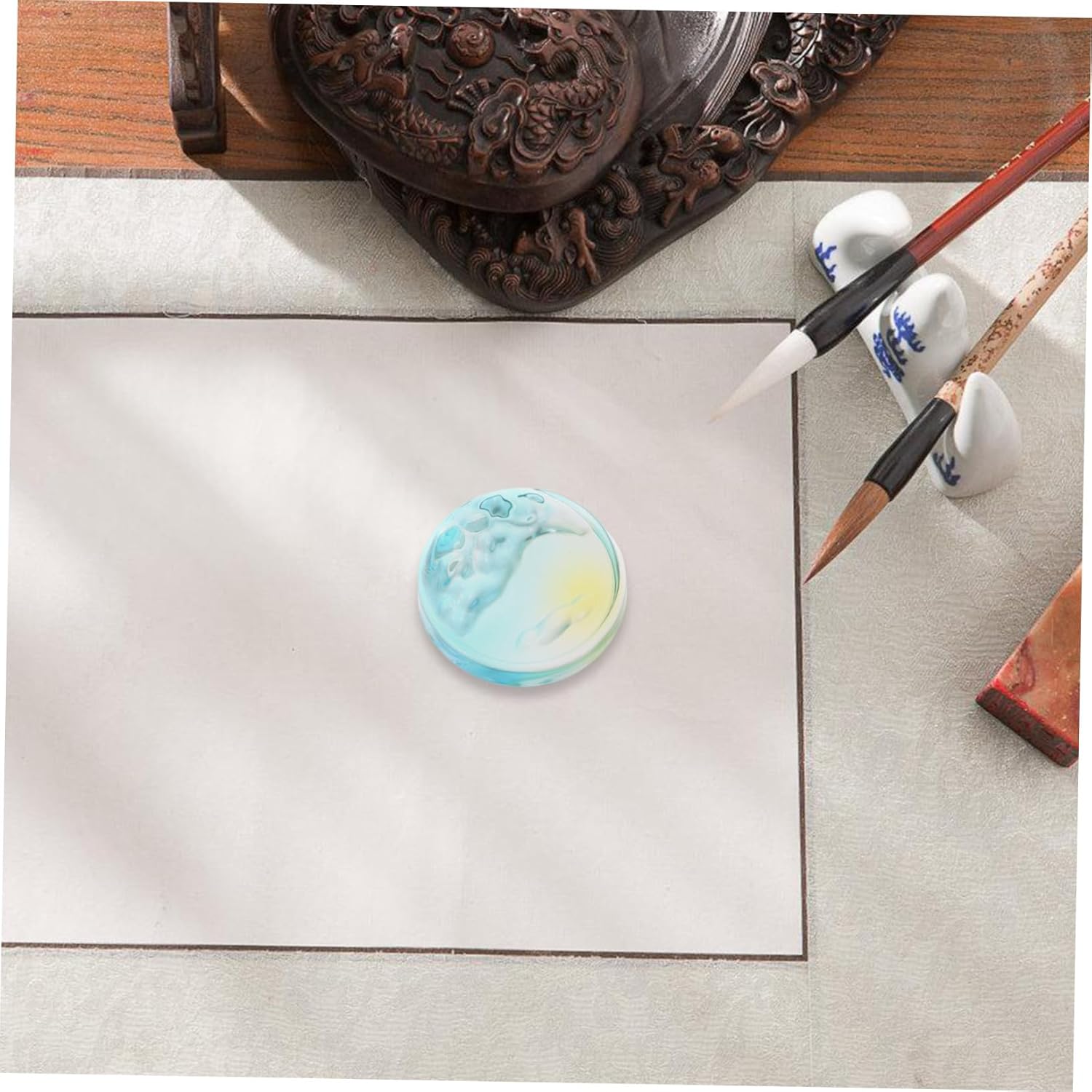 Conservazione combinata: la combinazione di un portapennelli per la miscelazione dell'inchiostro con un piccolo vassoio per l'inchiostro semplifica il posizionamento dei pennelli e la gestione dell'inchiostro, mantenendo il supporto per la conservazione dei materiali artistici organizzato e accessibile. Flusso regolare: progettato come vassoio per inchiostro e portaspazzole per la calligrafia cinese, garantisce livelli di inchiostro ottimali per i tratti, riducendo al minimo le interruzioni e facilitando un flusso continuo, vassoio per inchiostro per calligrafia, piastra per inchiostro, supporto per materiali artistici Design anti-fuoriuscita: questo vassoio per calligrafia con vassoio per inchiostro rotondo è realizzato per prevenire fuoriuscite di inchiostro, fornendo un uso stabile sia per i principianti che per gli artisti esperti. Calligrafia con vassoio di inchiostro, poggiapennello Distribuzione professionale dell'inchiostro: appositamente progettato per l'uso con vassoi di inchiostro per calligrafia e piastre di inchiostro per calligrafia cinese, garantisce una distribuzione uniforme dell'inchiostro per opere d'arte precise, portapennello e poggiapennello per calligrafia Uso artistico versatile: questo vassoio di pittura è adatto sia per la pratica della calligrafia che per la pittura cinese, fungendo da contenitore di inchiostro multifunzionale e portapennello che copre una varietà di esigenze creative, portapennello da scrittura, vassoio portainchiostro