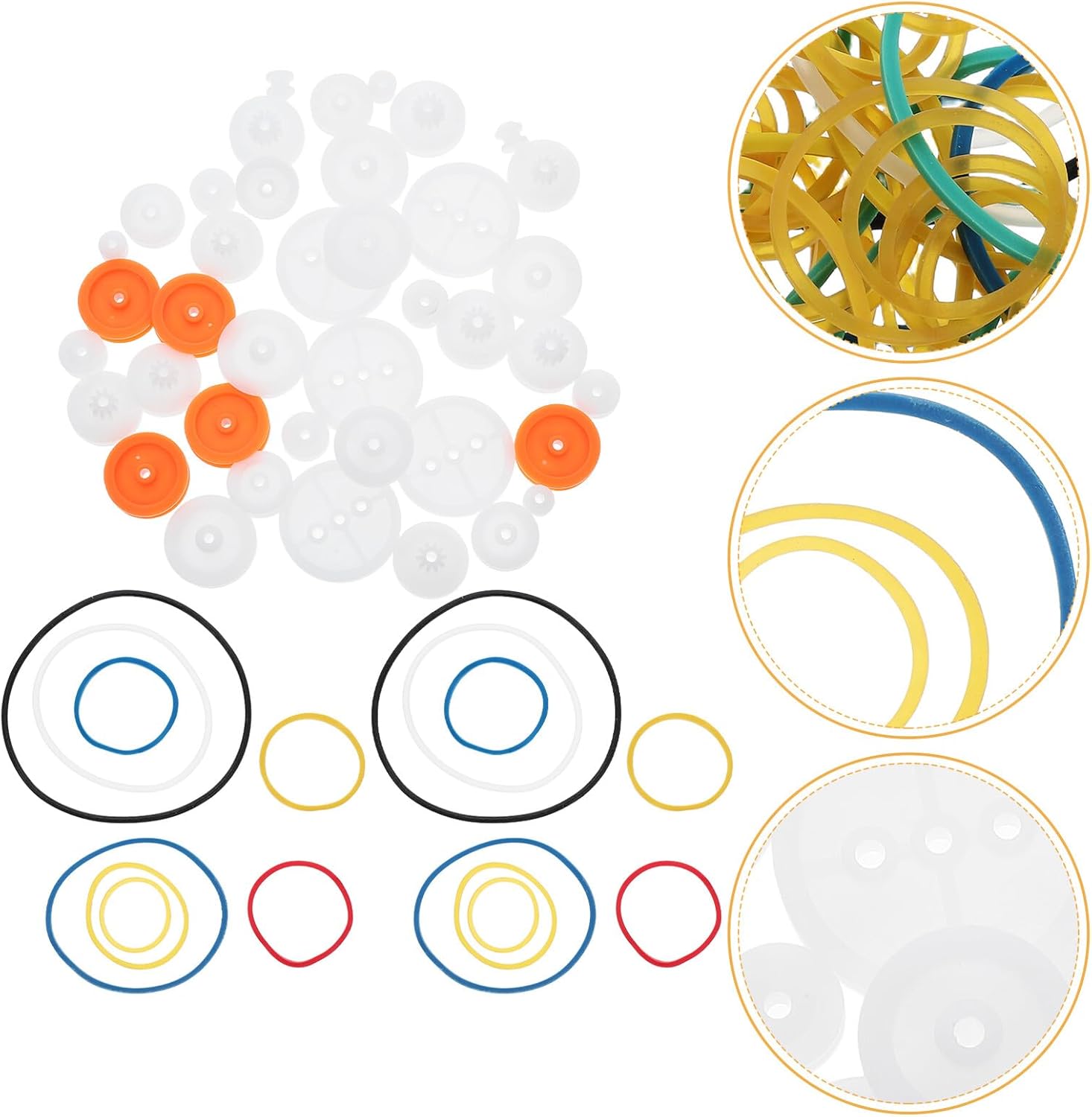 Riduzione del rumore: la combinazione di puleggia in plastica ed elastico aiuta a ridurre al minimo il rumore, garantendo un funzionamento regolare, ruote del motore, combinazione di pulegge Compatibilità multidispositivo: questo kit di pulegge è versatile e può essere utilizzato con vari dispositivi, il che lo rende una preziosa aggiunta al tuo kit di attrezzi, ingranaggi in plastica, cinghia di trasmissione in gomma Durata: la cinghia di trasmissione in gomma è progettata per essere resistente all'usura, garantendo un uso prolungato, mini puleggia dentata, puleggia della cinghia dentata Durevole e affidabile: la cinghia di trasmissione in gomma è costruita per essere durevole e affidabile, garantendo un utilizzo a lungo termine per i tuoi modelli, cinghie tonde, giocattoli in gomma fai da te Funzionamento regolare: il set di pulegge in plastica riduce al minimo il rumore, garantendo un funzionamento regolare ed efficiente delle tue auto rc e di altri modelli, cinghia della puleggia, cinghia di trasmissione in gomma