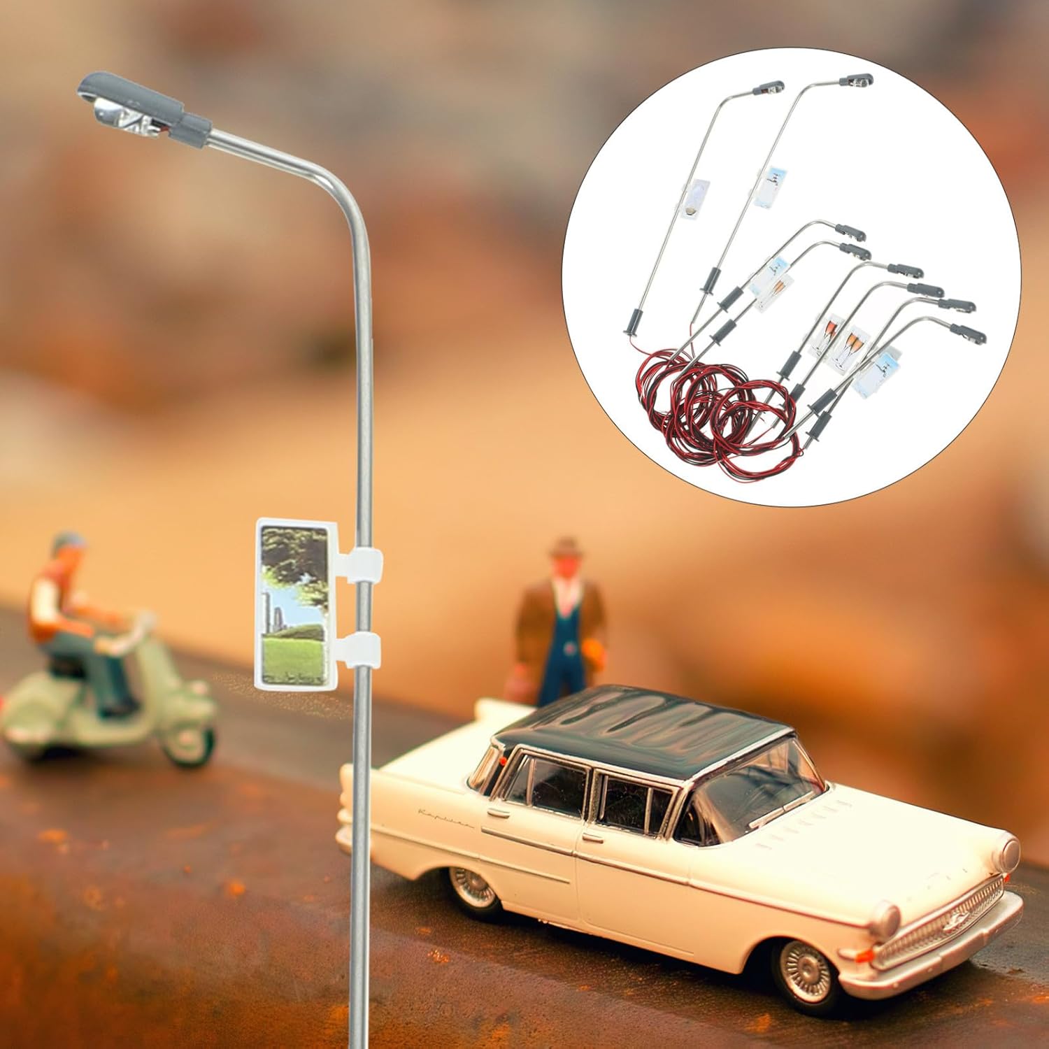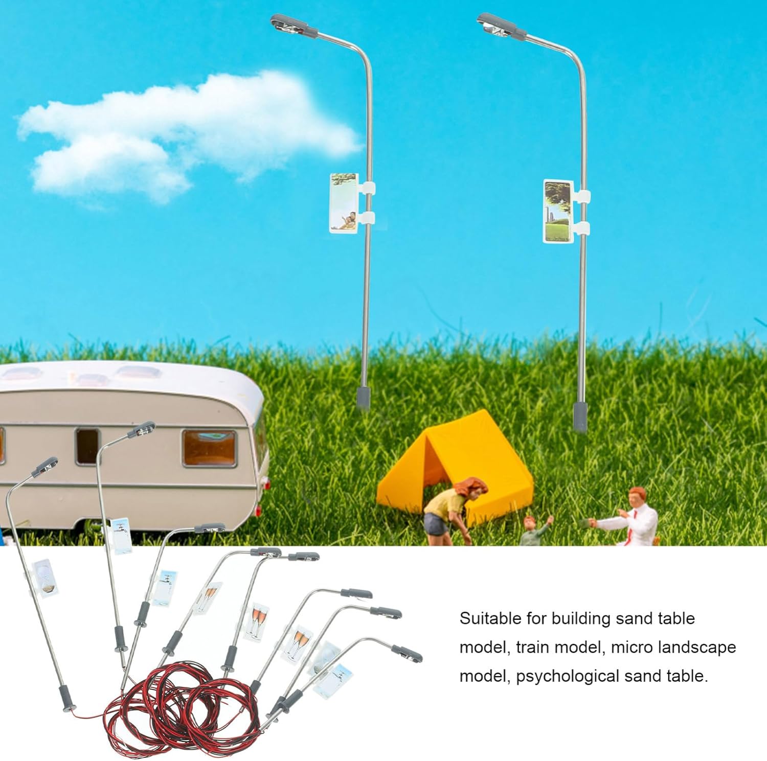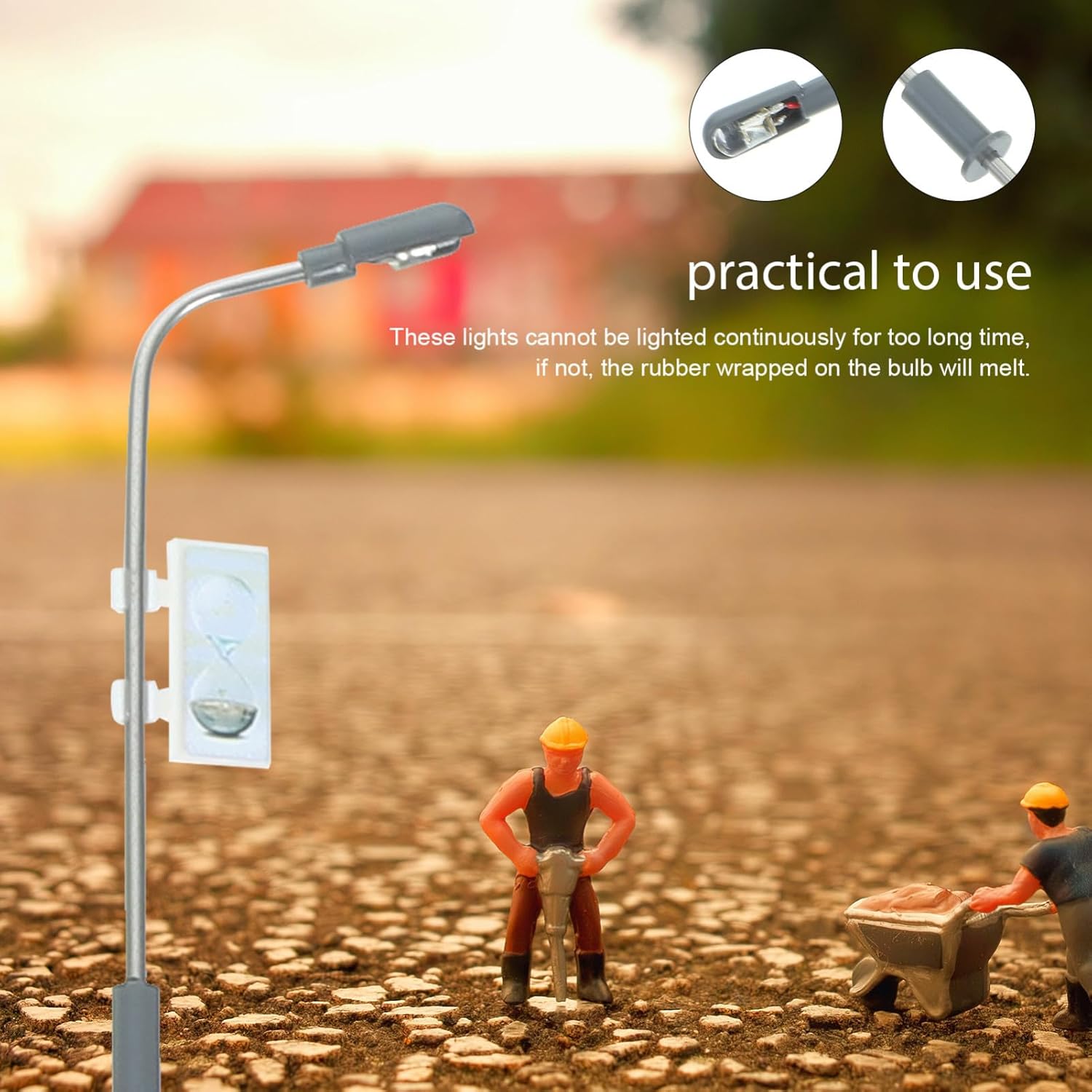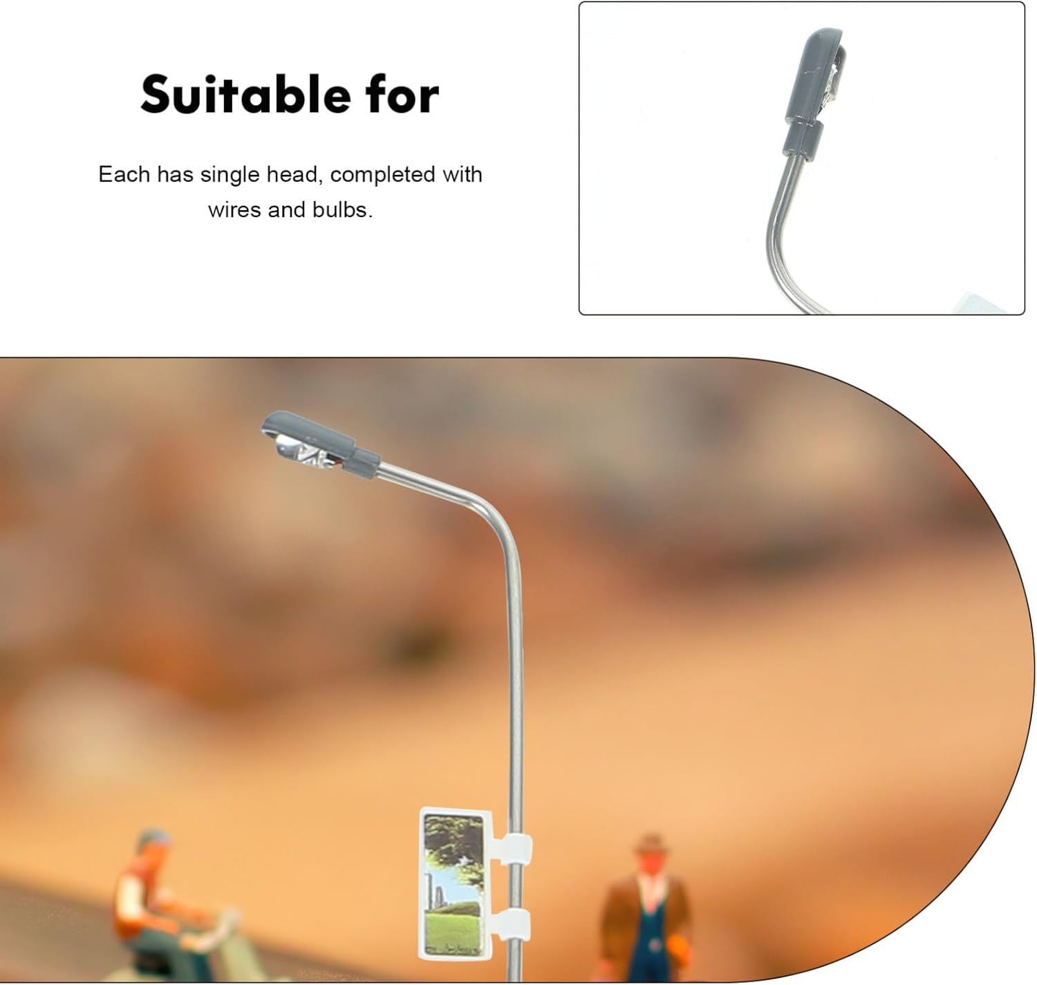 Lampione modello: utilizzato principalmente per decorare plastico, lampione modello Lampione modello: ognuno ha testa singola, completo fili e lampadine, lampione modello Lampione in scala: queste non possono essere accese ininterrottamente per troppo , altrimenti la gomma avvolta sulla lampadina si scioglierà. lampione modello Lampione 1/150: realizzato con materiali resistenti e pratici, modello lampione Lampione 1/100: adatto per costruire modelli tavoli sabbia, modelli treni, modelli micro paesaggi, tavoli sabbia psicologici, modelli lampione