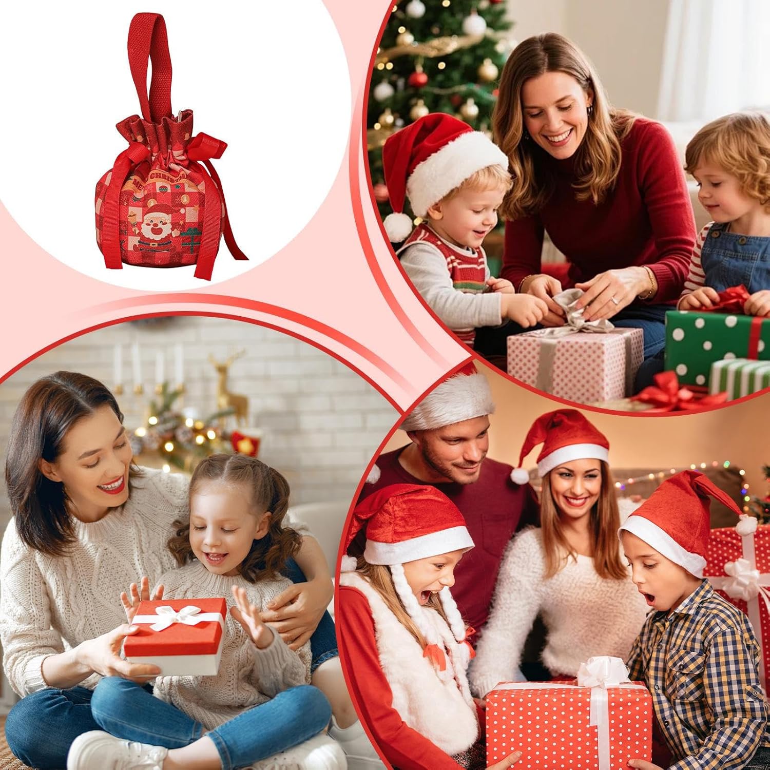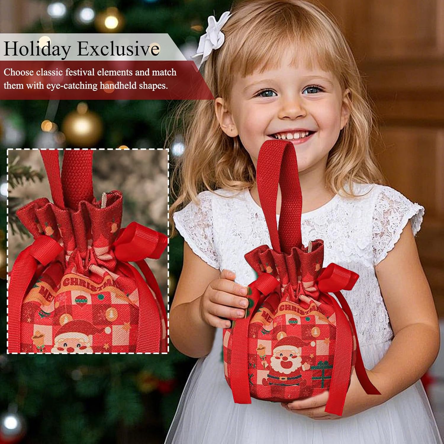 Separazione di oggetti fragili: con una struttura aperta e scomparti multipli, queste borse natalizie con coulisse organizzano gli oggetti delicati in modo sicuro. Questa funzione migliora la comodità durante la preparazione dei regali o il confezionamento di articoli per le vacanze, mantenendo tutto accessibile e protetto. Le suddivisioni interne consentono la separazione, riducendo il rischio di rotture durante riunioni di famiglia o celebrazioni festive. Calorosi auguri festivi: questi sacchetti regalo di Natale presentano elementi classici delle vacanze e un design elegante della borsa, ideali per esprimere calorosi auguri e rafforzare le festività. Rendono i regali più memorabili durante le riunioni di famiglia o gli eventi della comunità, aggiungendo un tocco di fascino ad ogni occasione speciale. Perfette per le celebrazioni natalizie, queste borse ti permettono di condividere la magia del Natale con stile e gentilezza. Decorazione natalizia versatile: i sacchetti di caramelle natalizie sono realizzati con un manico ben proporzionato, che li rende perfetti per essere appesi a un albero di Natale o esposti su un tavolo. Sono un sofisticato complemento d'arredo che si inserisce con disinvoltura ed eleganza nei cenoni di Capodanno e negli ambienti delle feste. La loro versatilità li rende un accessorio essenziale per un'organizzazione festiva di successo. Soluzione regalo festiva: questo sacchetto di caramelle natalizio combina perfettamente praticità ed estetica per impreziosire i tuoi regali. Ideale per offrire dolcetti ai tuoi cari, amici o colleghi, porta un tocco di magia alle feste in ufficio, alle riunioni di famiglia o agli eventi della comunità. Il suo design universale è adatto a tutte le occasioni celebrative. Materiale in tela: questi sacchetti regalo di Natale sono realizzati in tela resistente e a trama fitta, con una base spessa che fornisce un supporto stabile e un'eccellente durata. Garantiscono un utilizzo prolungato per tutte le festività di fine anno e le occasioni di regali.