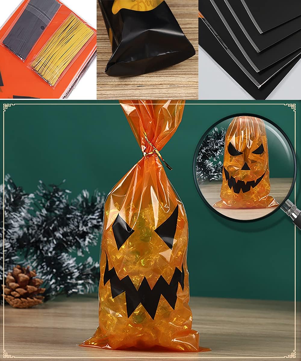 Il pacchetto include: sacchetti di caramelle di Halloween da 120 pezzi con 6 modelli diversi. I sacchetti di cellophane sono neri e arancioni, ogni colore è composto da 60 pezzi e ogni modello è composto da 20 pezzi. IDEALE PER LE FESTE DI HALLOWEEN - I sacchetti di caramelle a tema Halloween sono stampati con diversi motivi di zucca. Questi sacchetti per dolcetti splendidamente decorati sono perfetti da riempire con cioccolato, caramelle, biscotti o altri dolci. FACILE DA USARE - La confezione include nastri per ogni sacchetto di dolcetti, sono abbastanza grandi in modo da poter contenere molto e possono essere facilmente legati con le strisce metalliche incluse. ALTA QUALITÀ - I sacchetti per dolcetti sono realizzati in OPP di alta qualità, sono atossici e rispettosi dell'ambiente e possono anche essere riutilizzati. Dimensioni: i sacchetti di zucca misurano 28 x 12,5 cm, ideali per confezionare qualsiasi cosa, dai biscotti ai dolci. Si prega di verificare la taglia prima di ordinare.