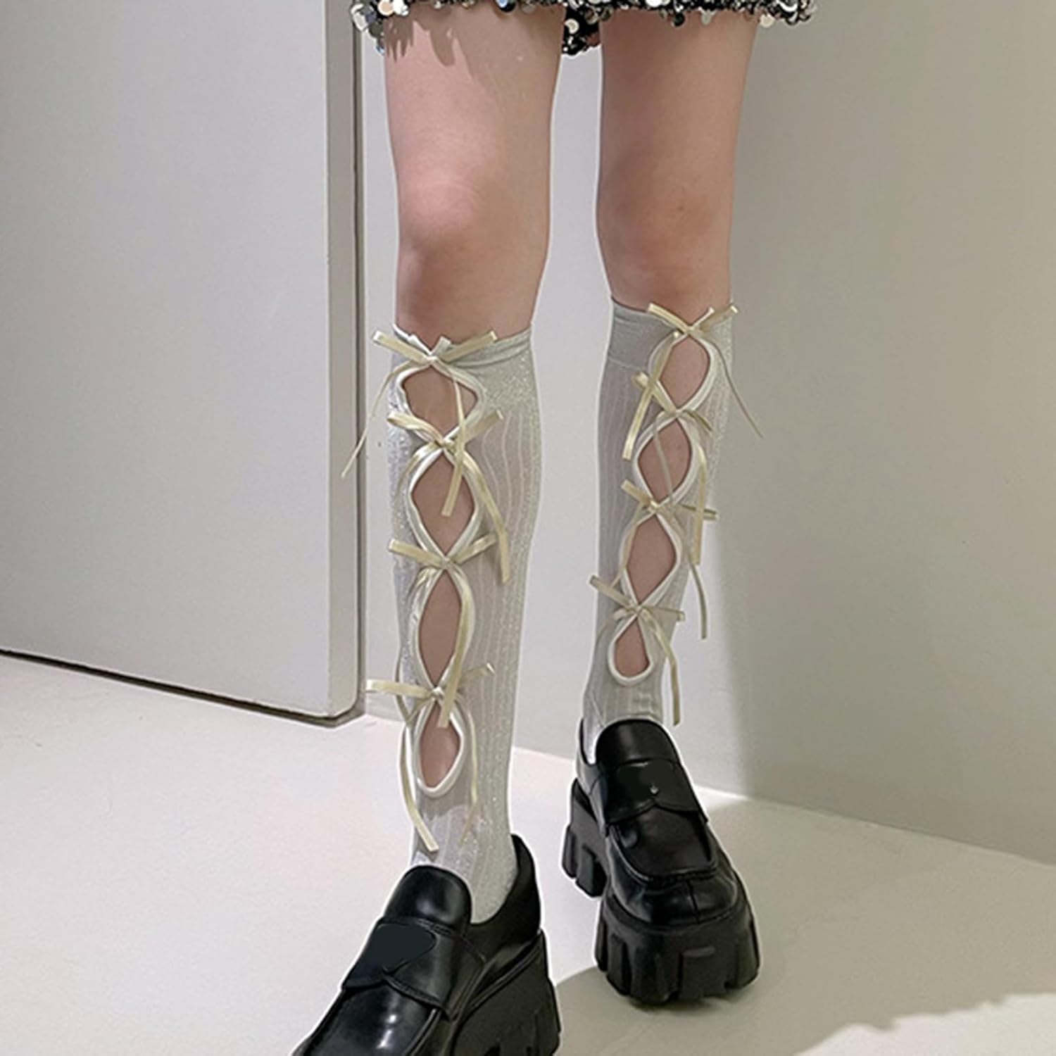 Calzini alti al ginocchio con fiocchi dolci, calze scintillanti alla moda calzini a tubo medio calzini cosplay calzini al polpaccio calze lunghe Caratteristiche: Materiali morbidi, queste calze sono realizzate in nylon, elastiche, morbide e comode da maneggiare, si possono indossare con calze al ginocchio. Ampie applicazioni, le calze al ginocchio con fiocchi dolci sono adatte per Halloween, Natale, festa della mamma, feste cosplay, spettacoli teatrali, buona appendice al tuo guardaroba e ti rendono più bella. Bella tua madre, sorella, fidanzata e amica. I calzini al ginocchio facili da abbinare sono facili da abbinare a diversi stivali, gonne, abiti da vacanza e altri stili, una bella scelta per l'uso quotidiano casual, allungati per adattarsi alla maggior parte delle donne e delle ragazze Modifica la figura delle gambe, rendendo la gamba più snella e attraente. I polsini antiscivolo fanno sì che le calze rimangano in posizione senza scivolare giù dalle gambe. Specifiche tecniche: Materiale: nylon. Colore: 01, 02, 03, 04. Dimensioni: peso consigliato: meno di 75 kg. La confezione include: 1 paio di calze al ginocchio. Nota: Considerare un margine di errore di 1-2 cm dovuto alla misurazione manuale. A causa delle differenze tra i diversi monitor, l'immagine potrebbe non rispecchiare il colore reale dell'articolo.